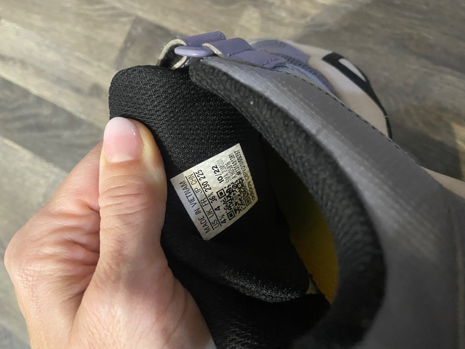 sú ako nové; známa mi ich poslala ako veľ. 37, no tlačia ma a musím ich posunúť farba sa na prvý pohľad javí ako tmavšie šedá, no na slniečku je vidieť krásny fialový odtieň vyfotila som etiketu....