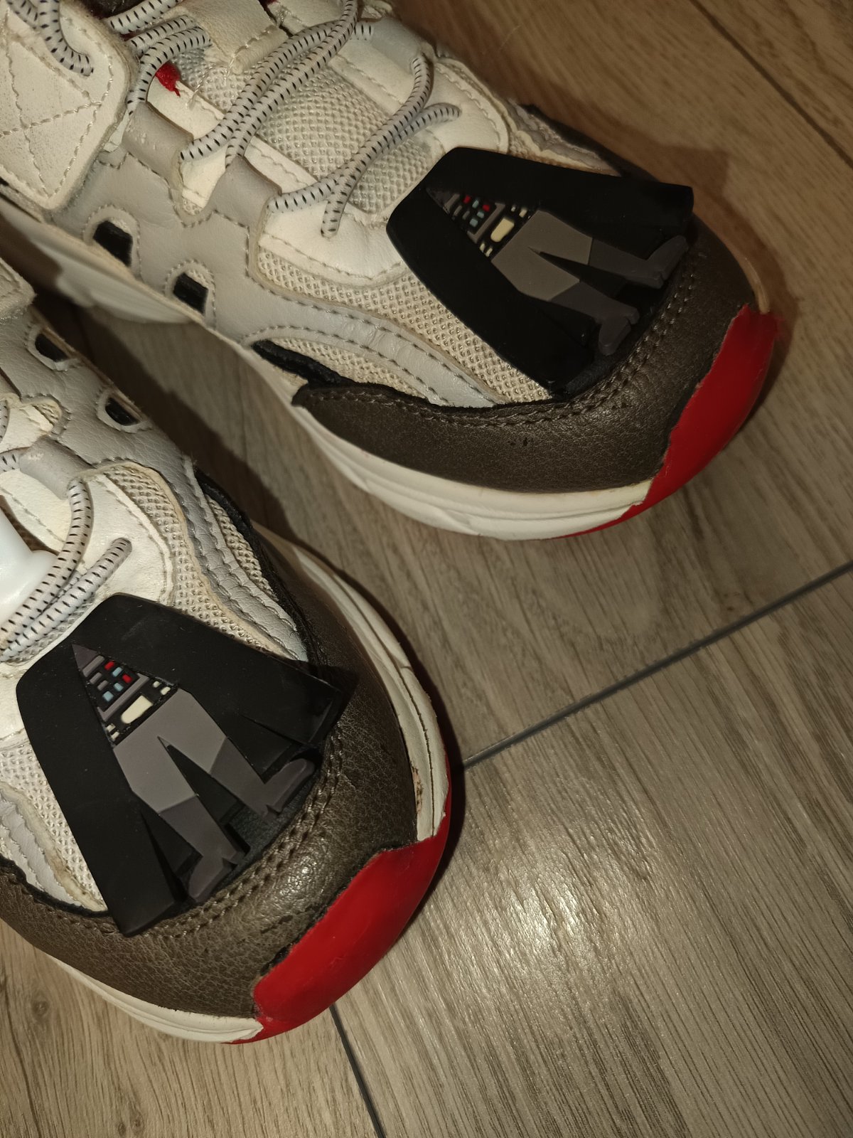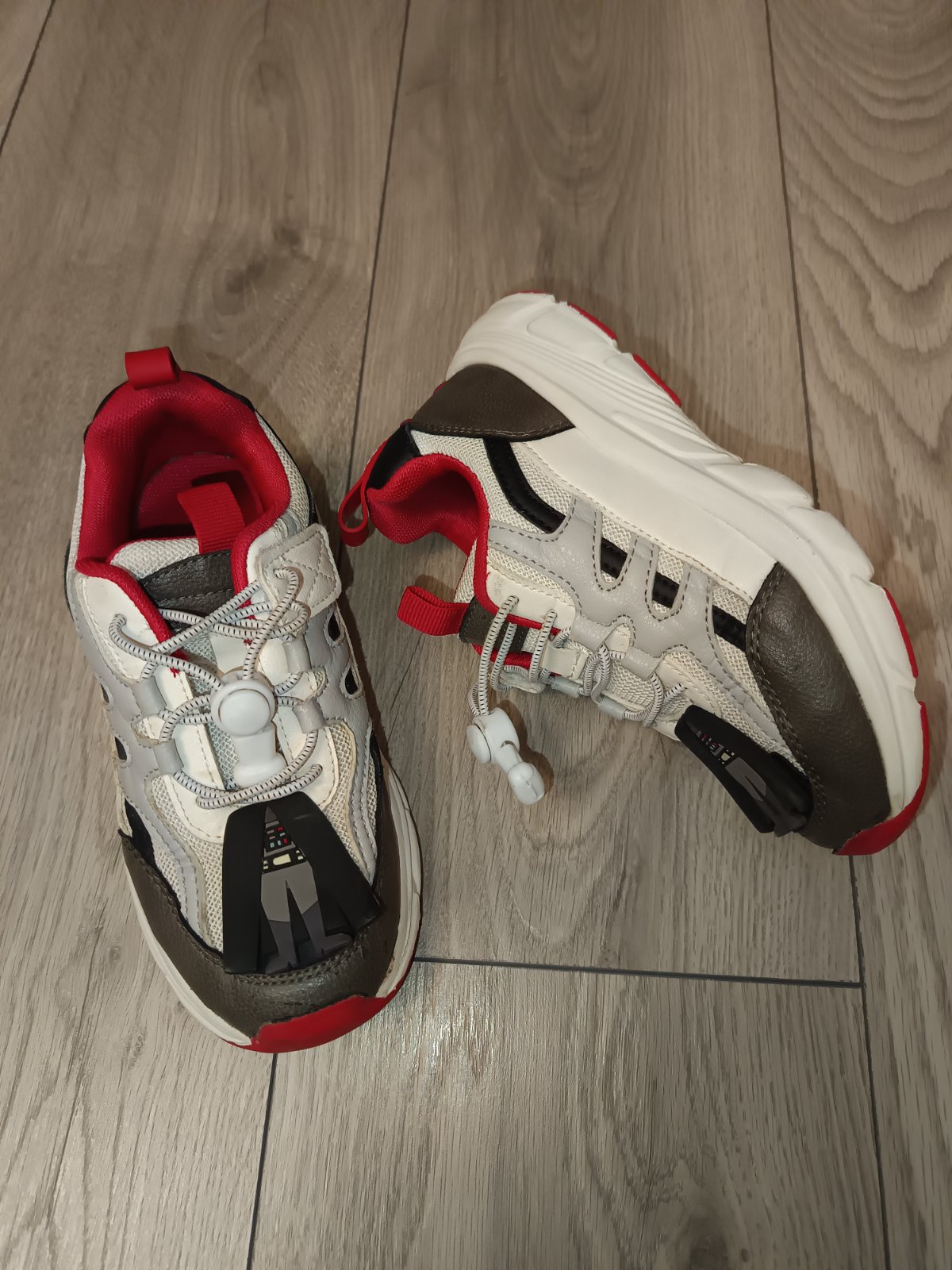Krásne biele planétky s ružovo- neonovým lemom. Nenoseze, lebo sme na nich zabudli. Šnúrka je gumová, netreba viazať.