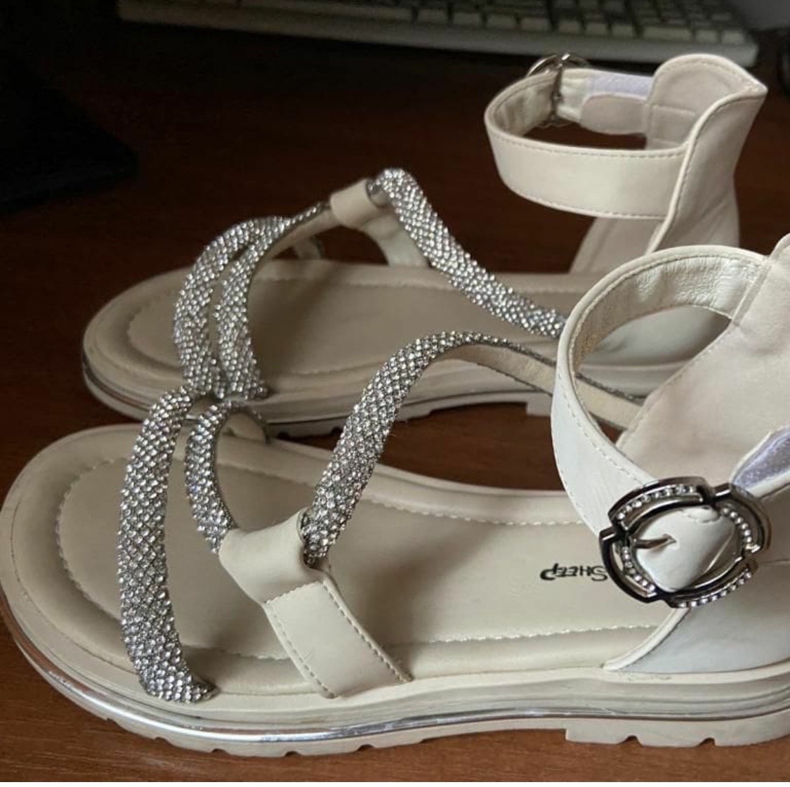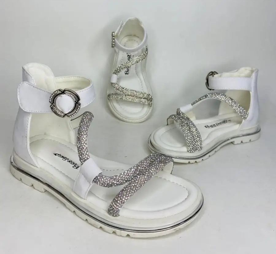 Tieto úplne nové štýlové dievčenské sandále sú ideálnou voľbou na leto aj na špeciálne príležitosti. Elegantné krémové prevedenie je doplnené trblietavými pásikmi s jemnými kamienkami, ktoré dodávajú sandálam jedinečný lesk. Pohodlná mäkká stielka a flexibilná podrážka zabezpečujú komfort pri chôdzi. Nastaviteľné zapínanie na pracku okolo členka zaručuje dokonalé prispôsobenie a stabilitu.