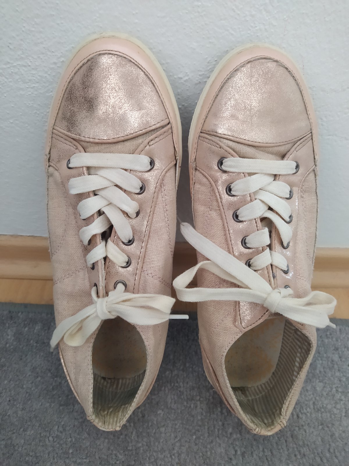 pekné trendy tenisky , staroružová farba, srdiečkový vzor, veľkosť 38, vnutorna dlzka 24cm
