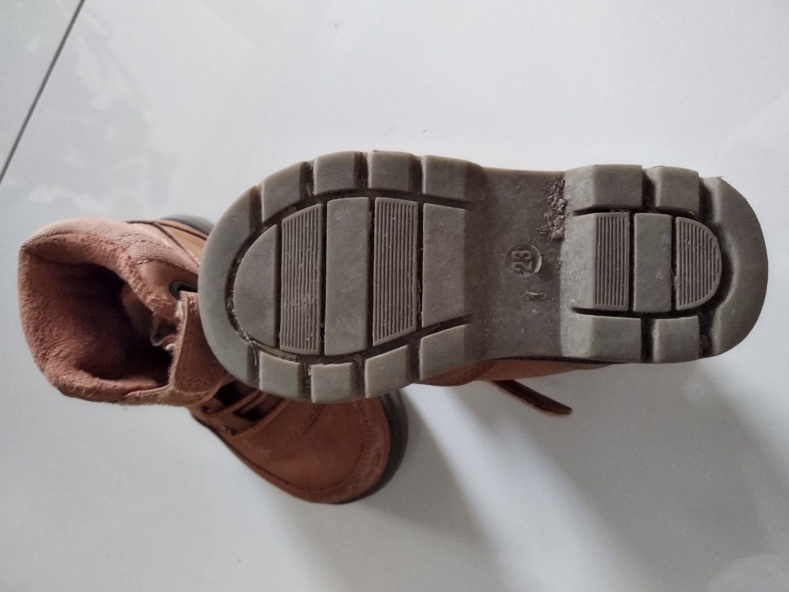 Teplé a pohodlné topánky na zimu. Skôr na dvor, keďže v predu sú trochu okopané (viď foto, zohľadnené v cene). Podrážka takmer ako nová. Vnútorná dĺžka cca 14 cm (nedala sa vybrať vložka, preto sa to zle meralo). Cena bez poštovného.
