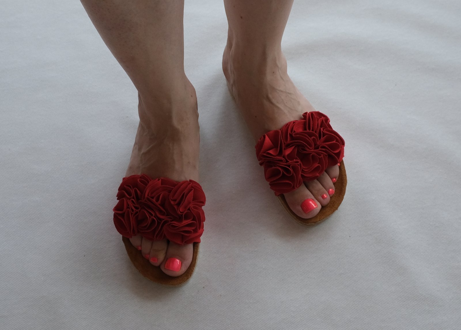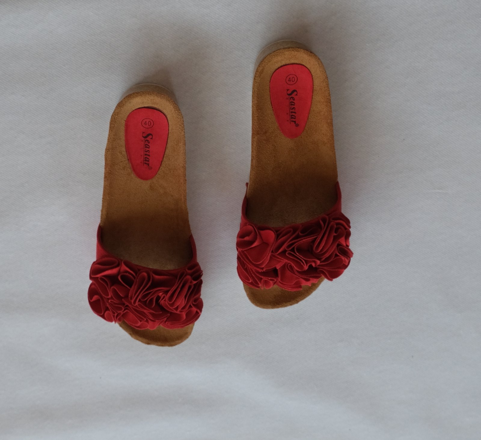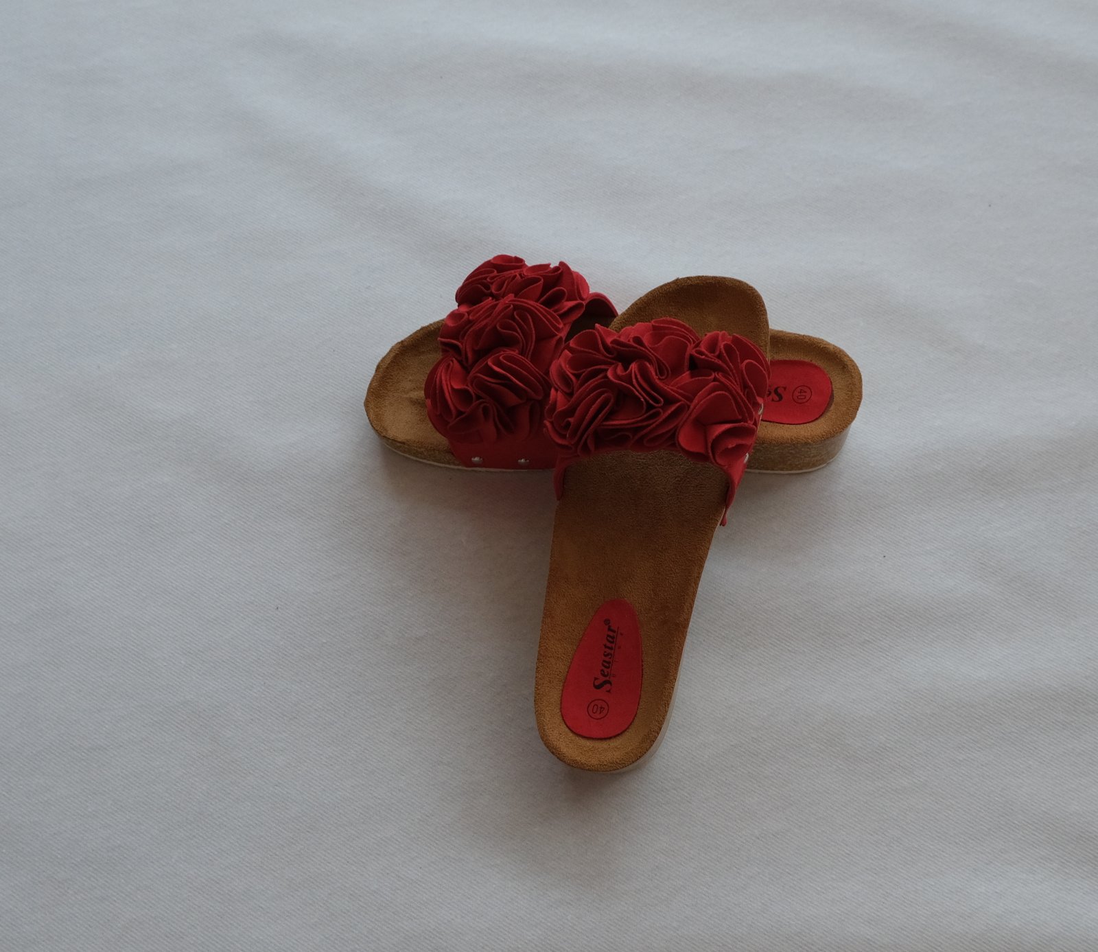 Popis tovaru: červené kvietkové velúrové šľapky nenosené odskúšané,