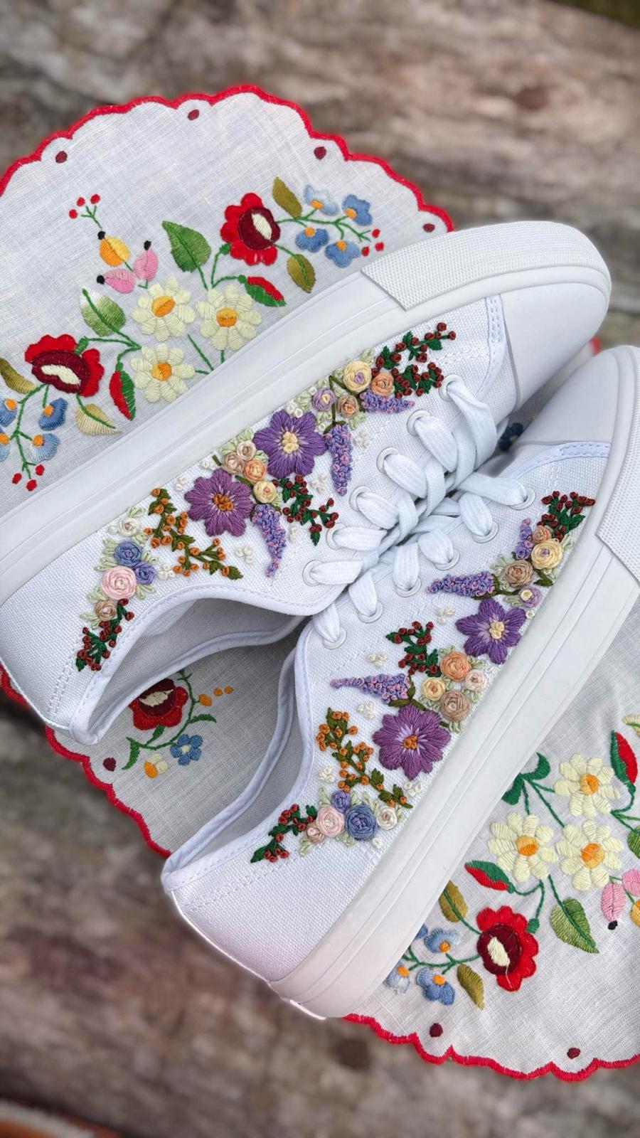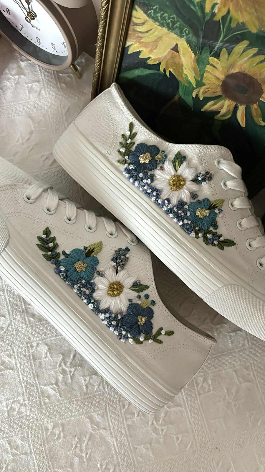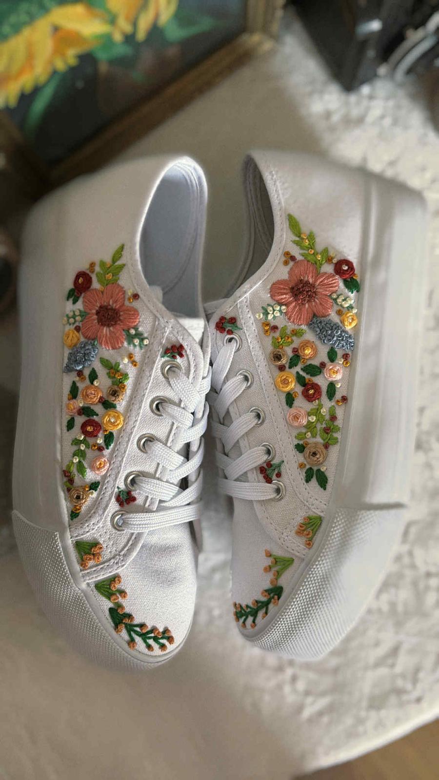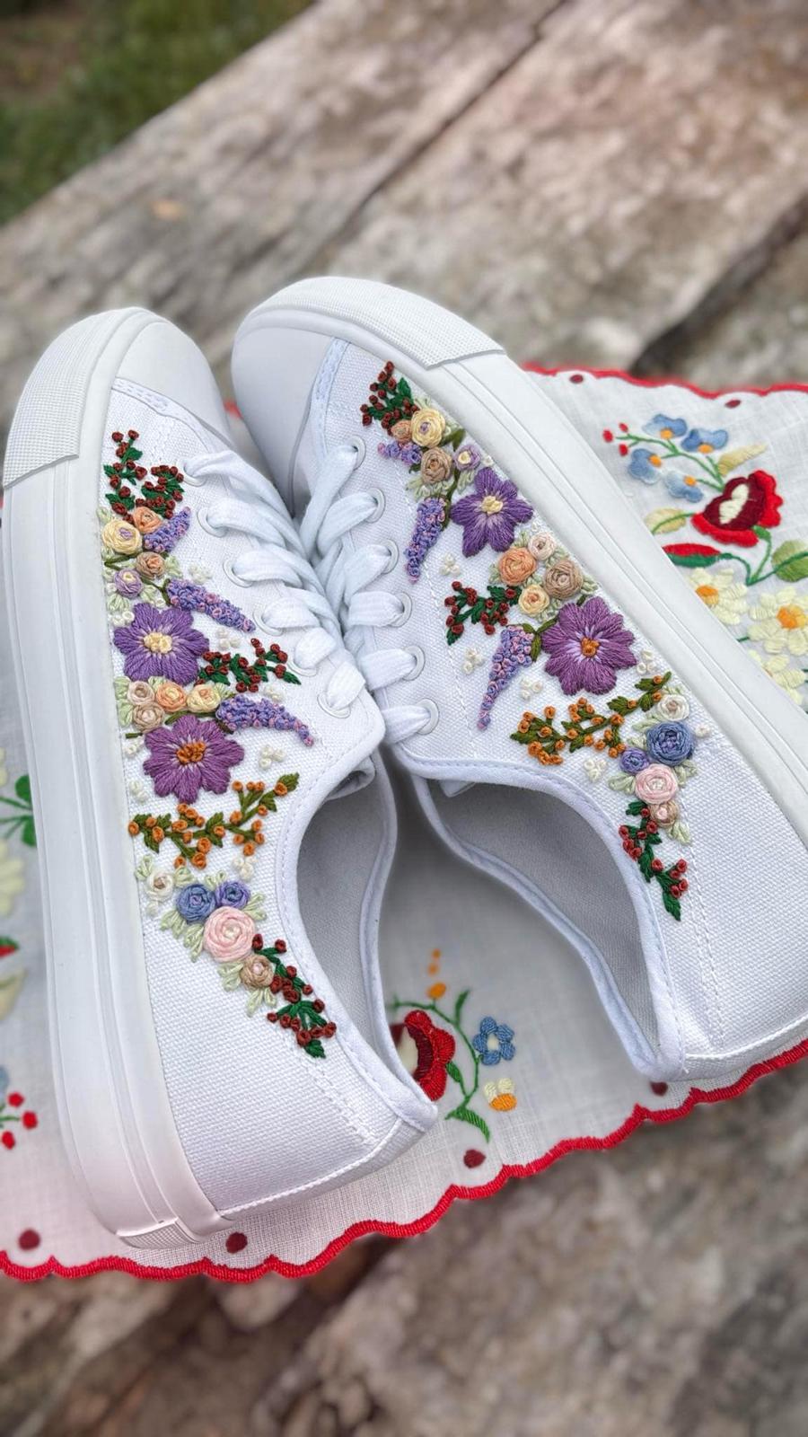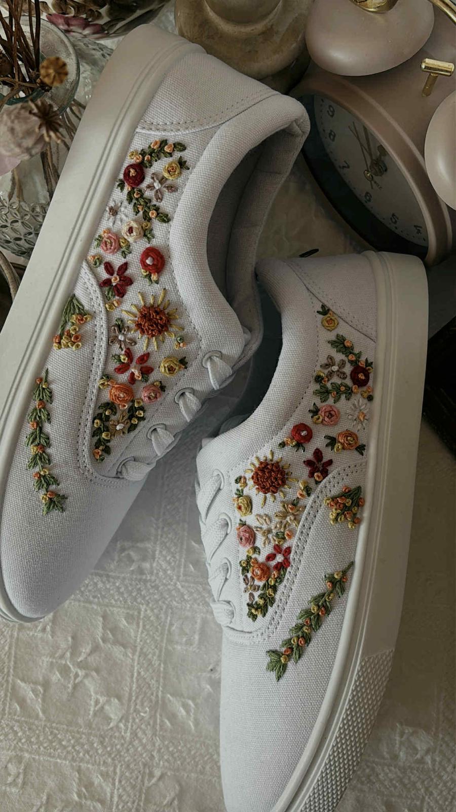 Plátené tenisky zdobené ručnou výšivkou.