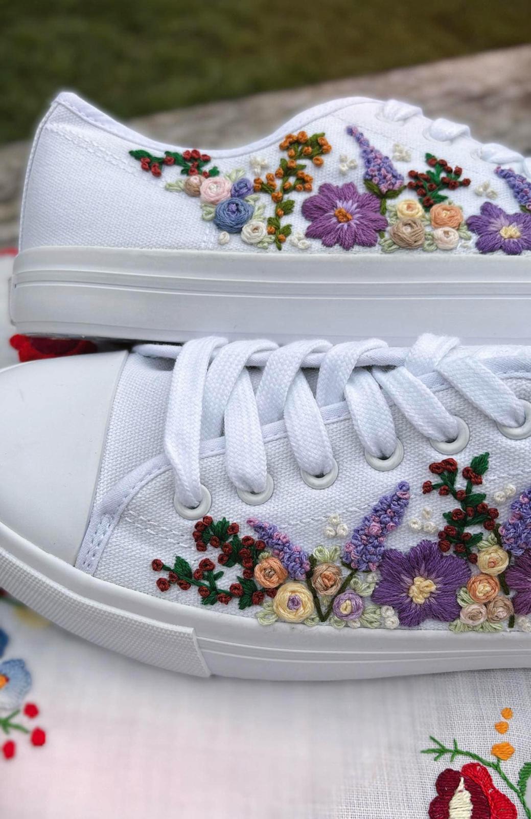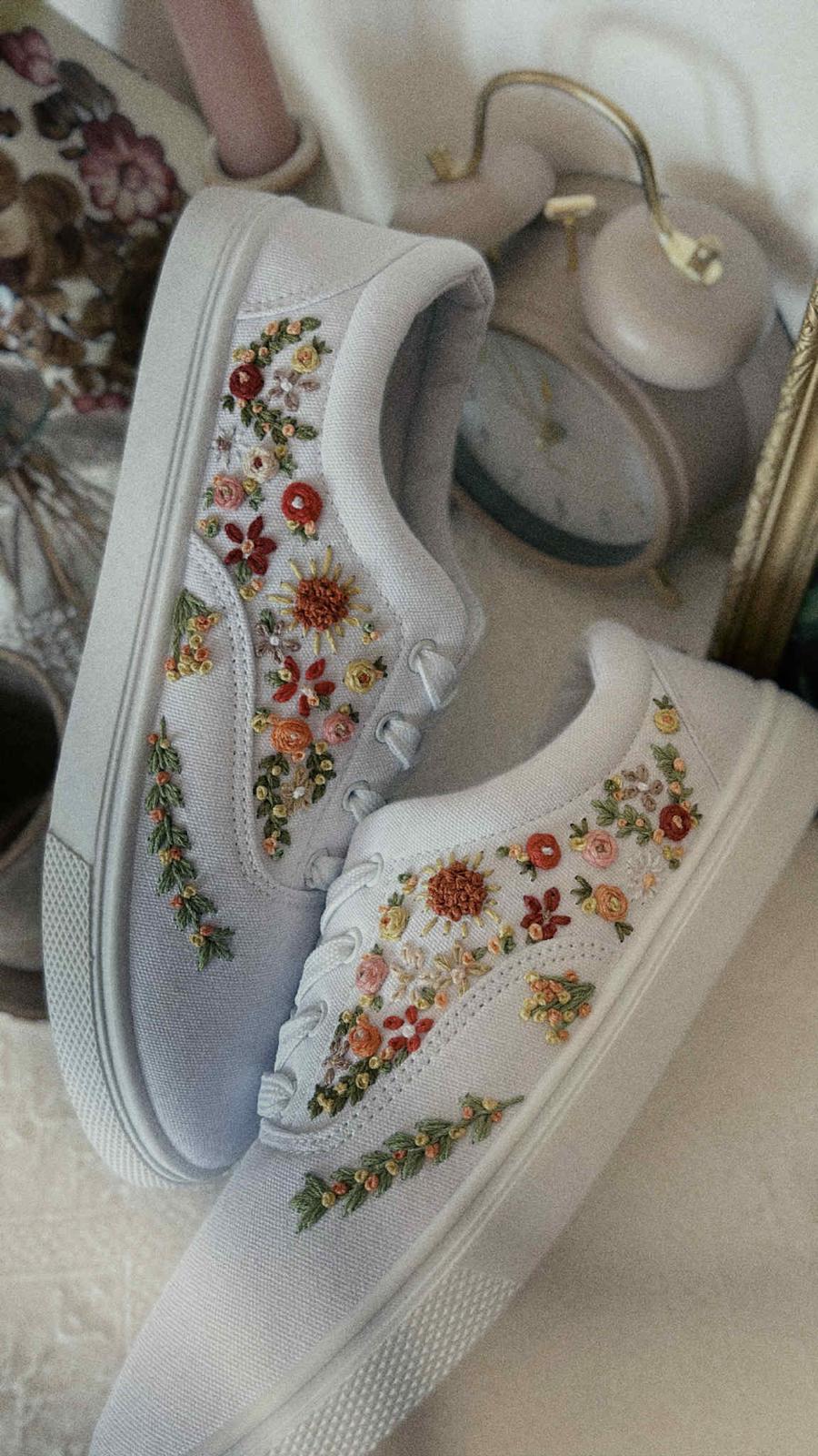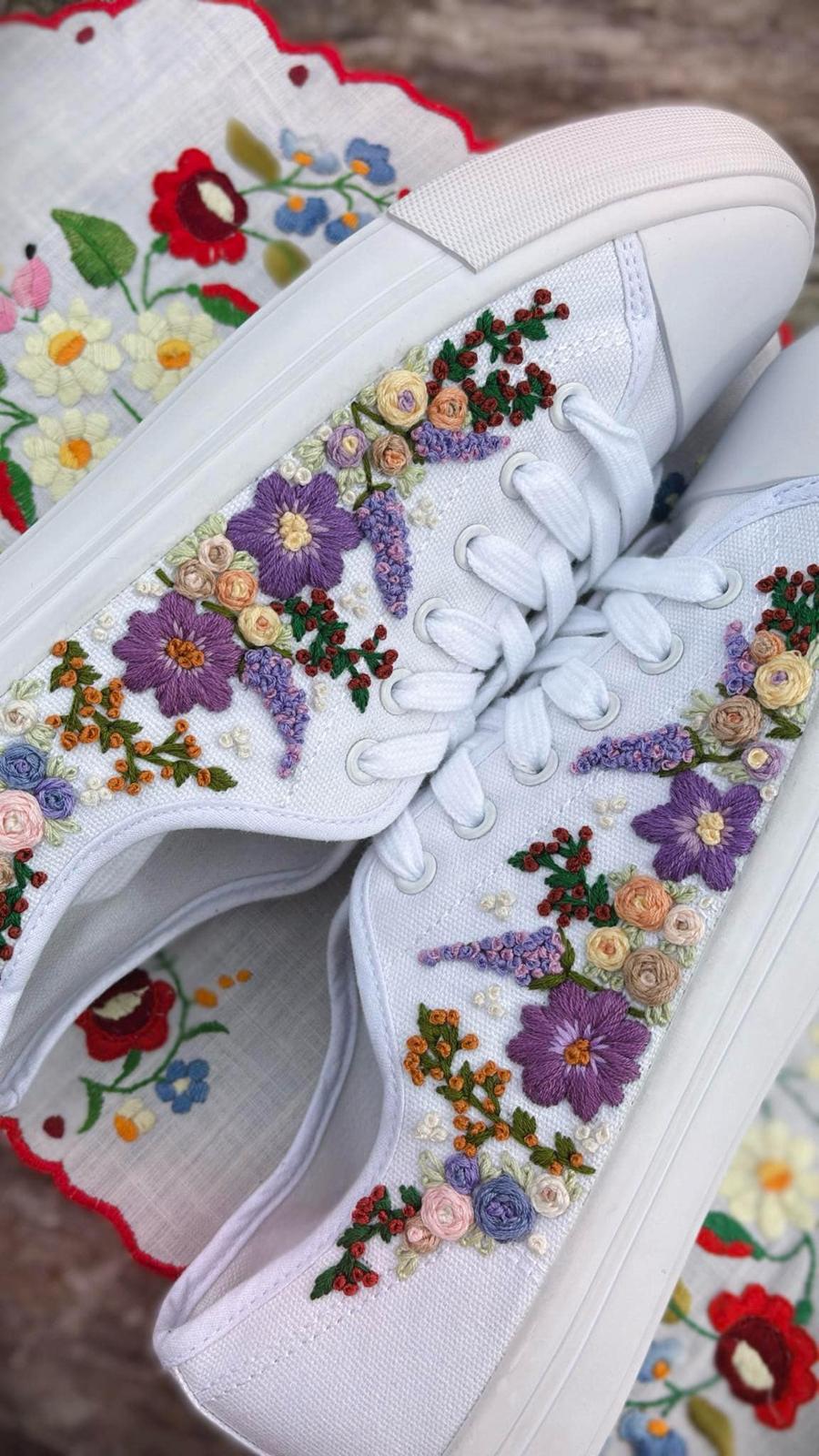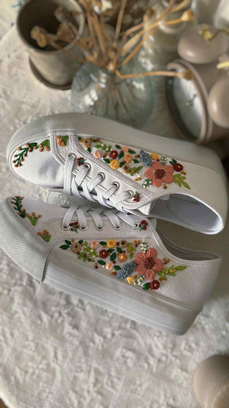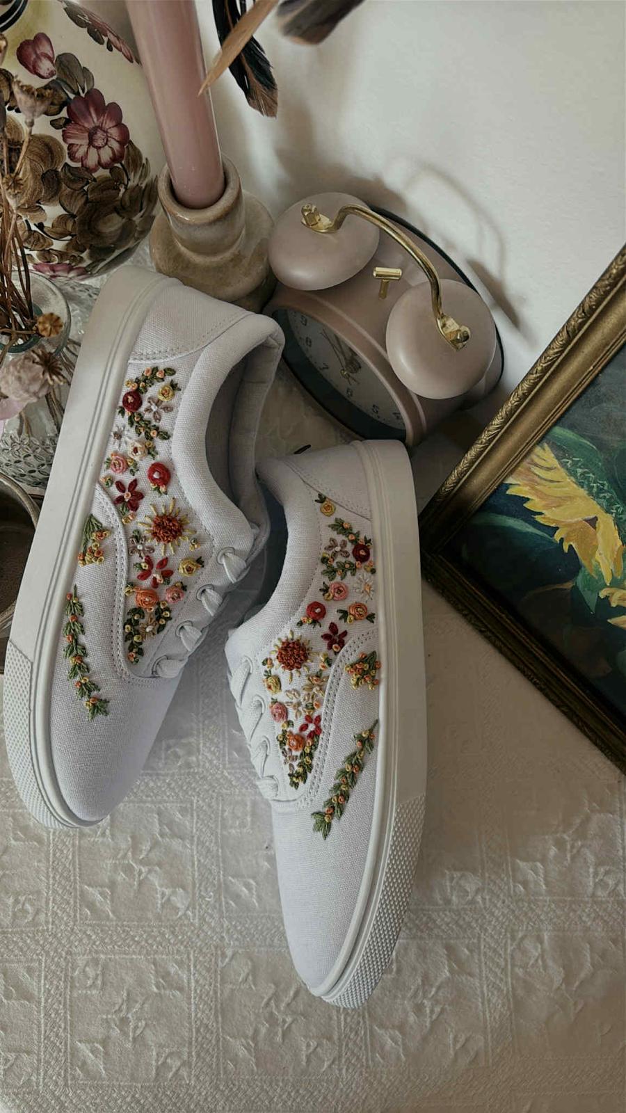 Plátené tenisky zdobené ručnou výšivkou.