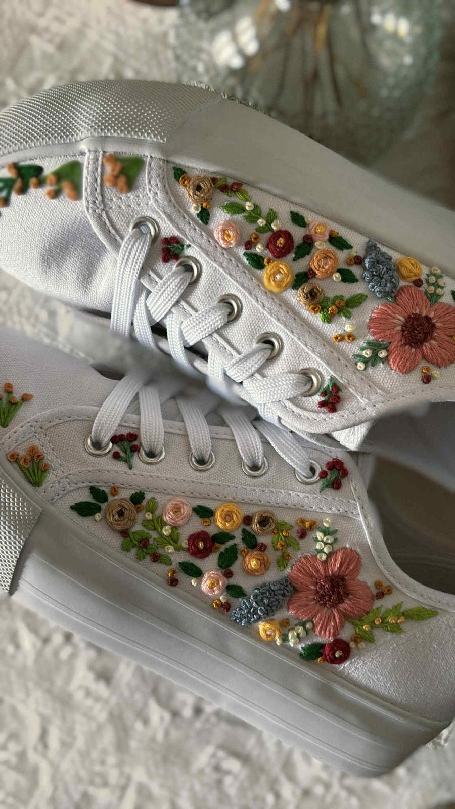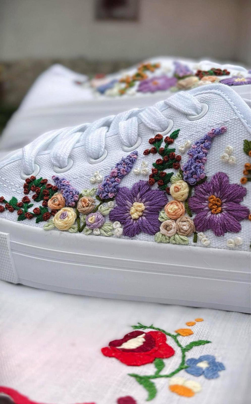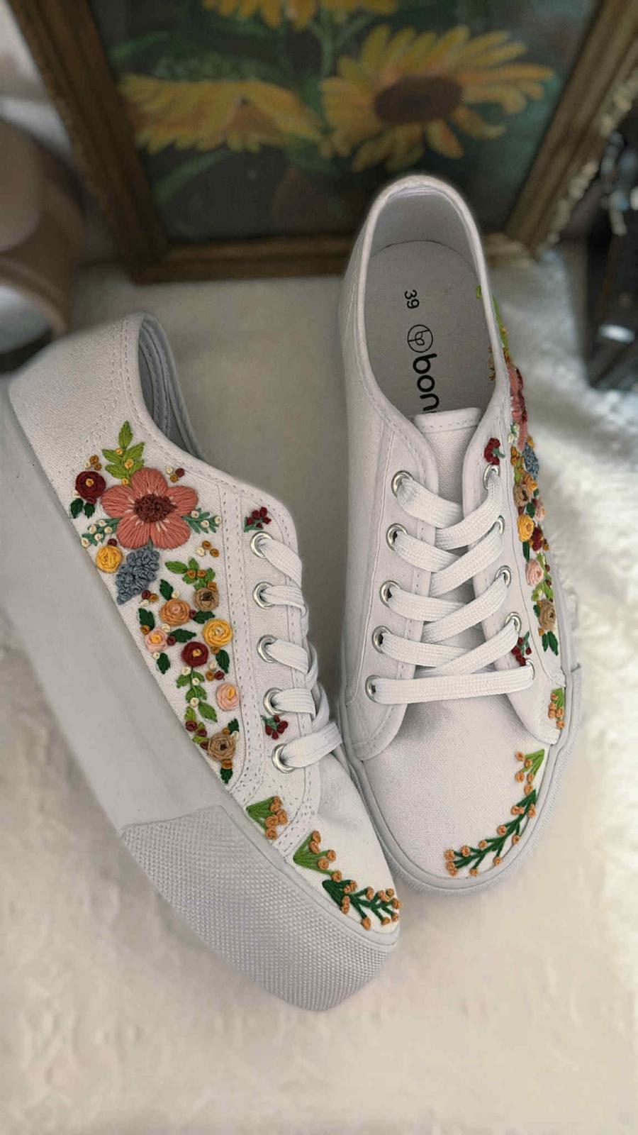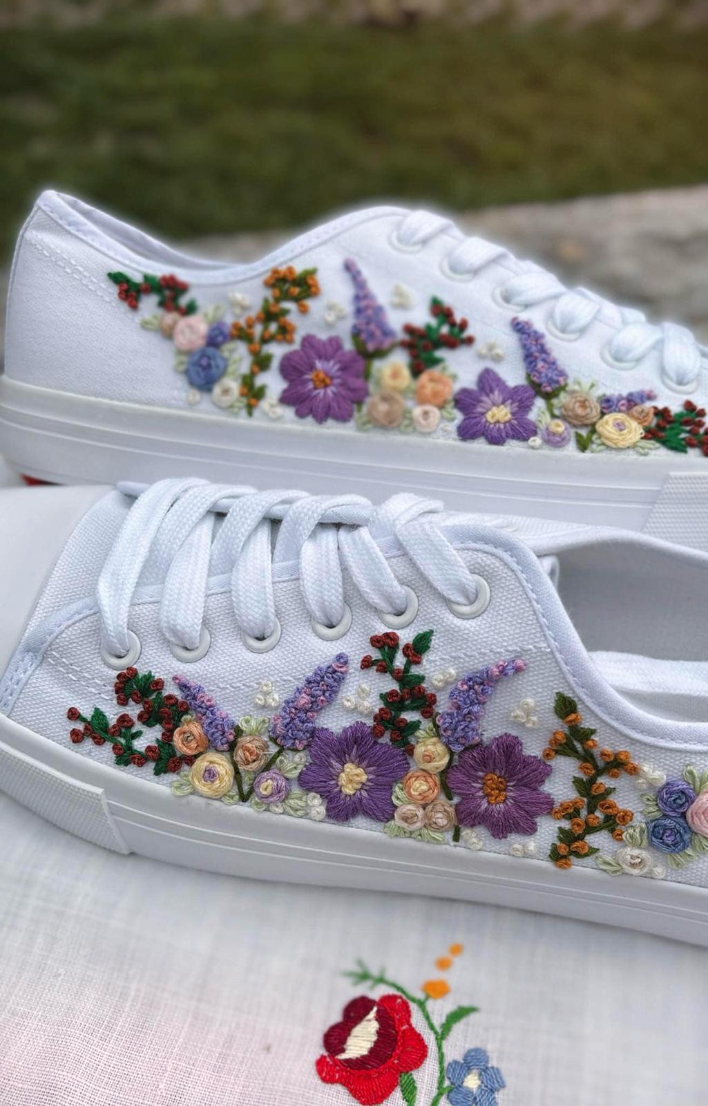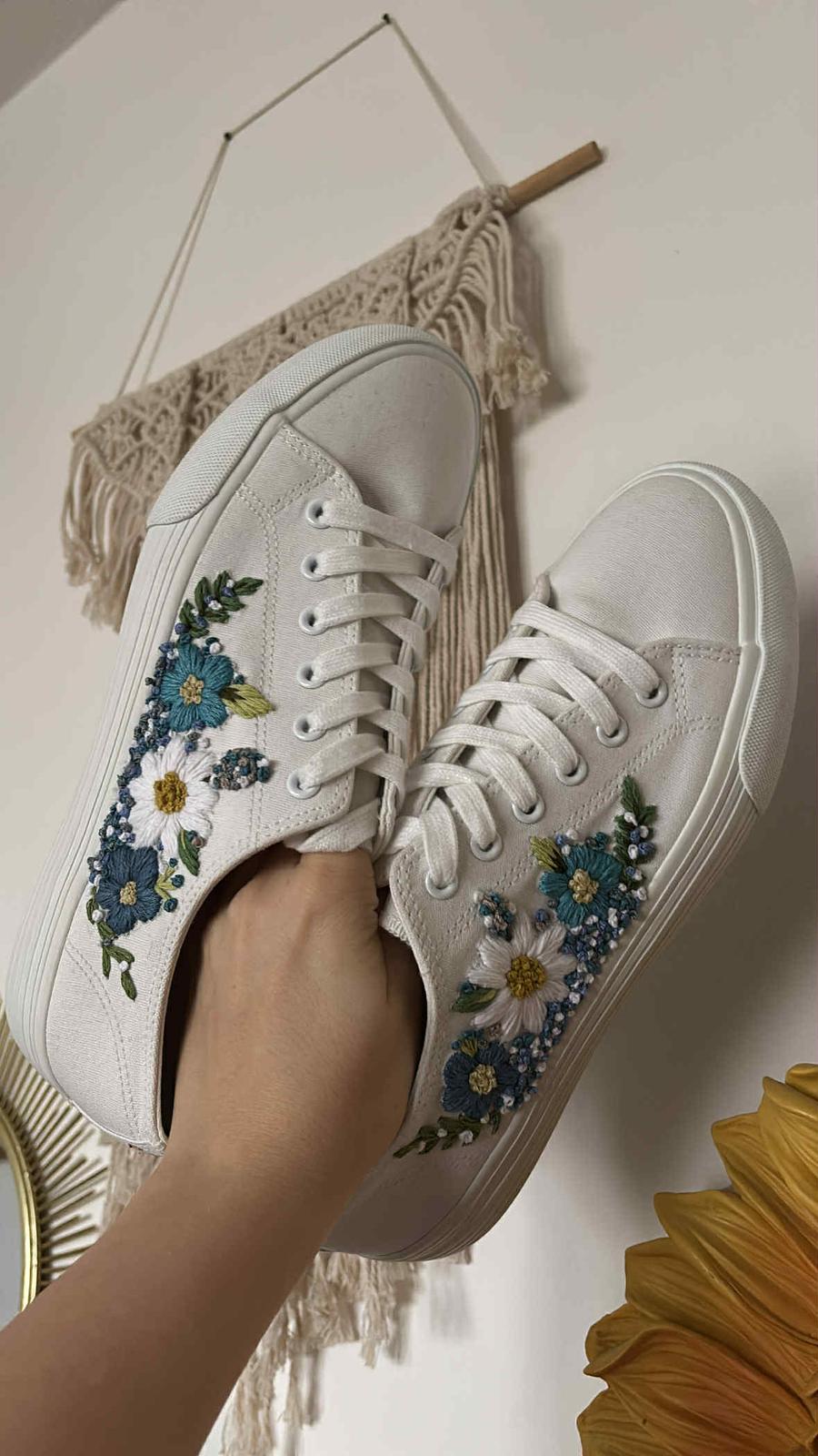 Plátené tenisky zdobené ručnou výšivkou.
