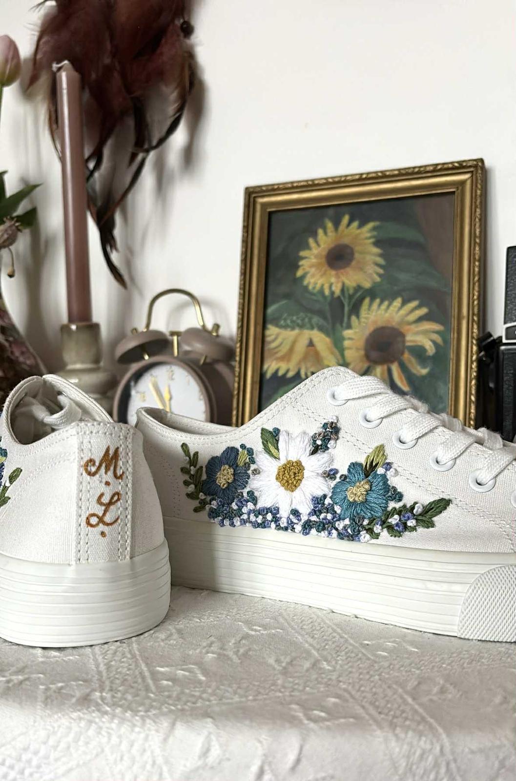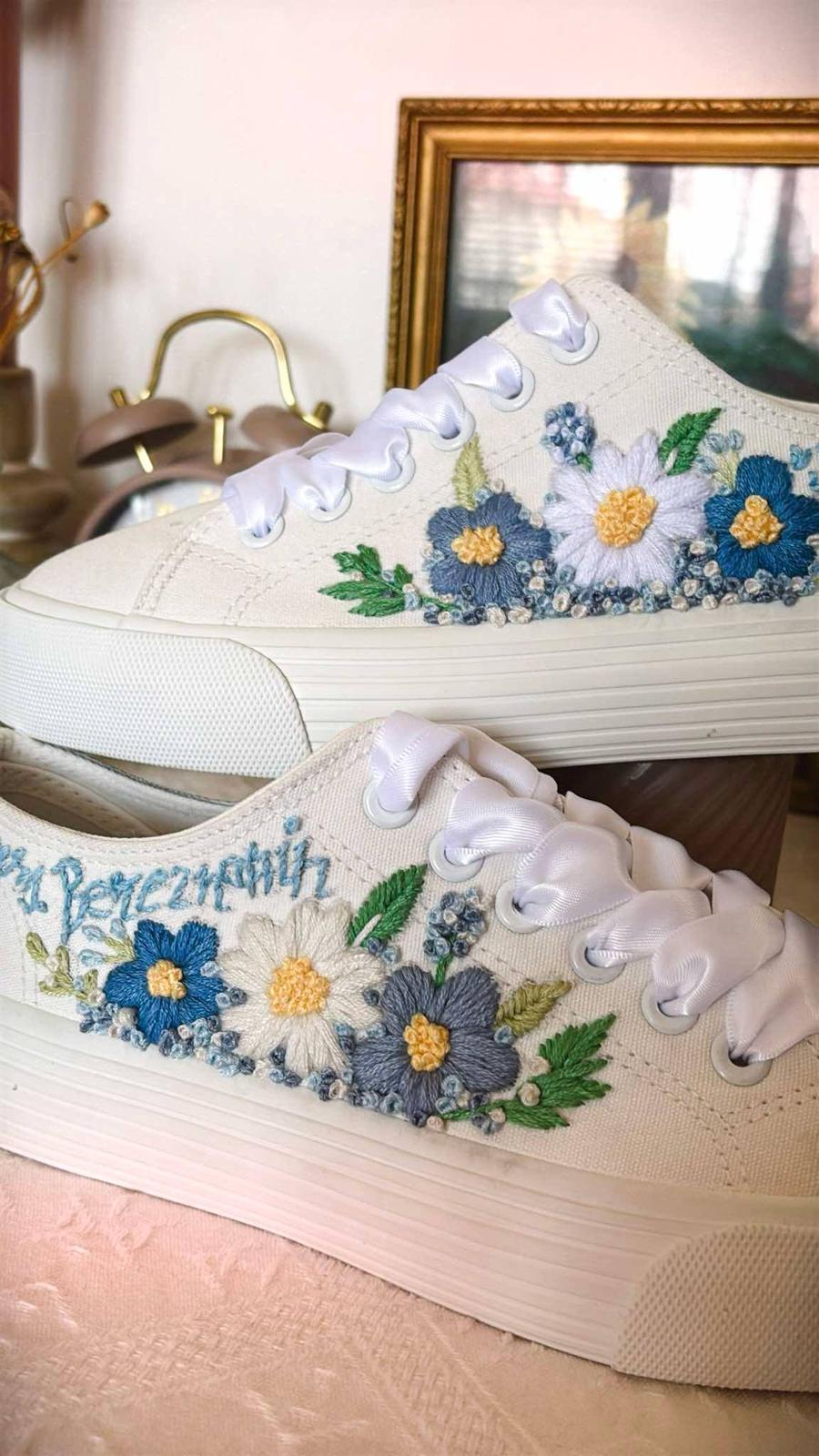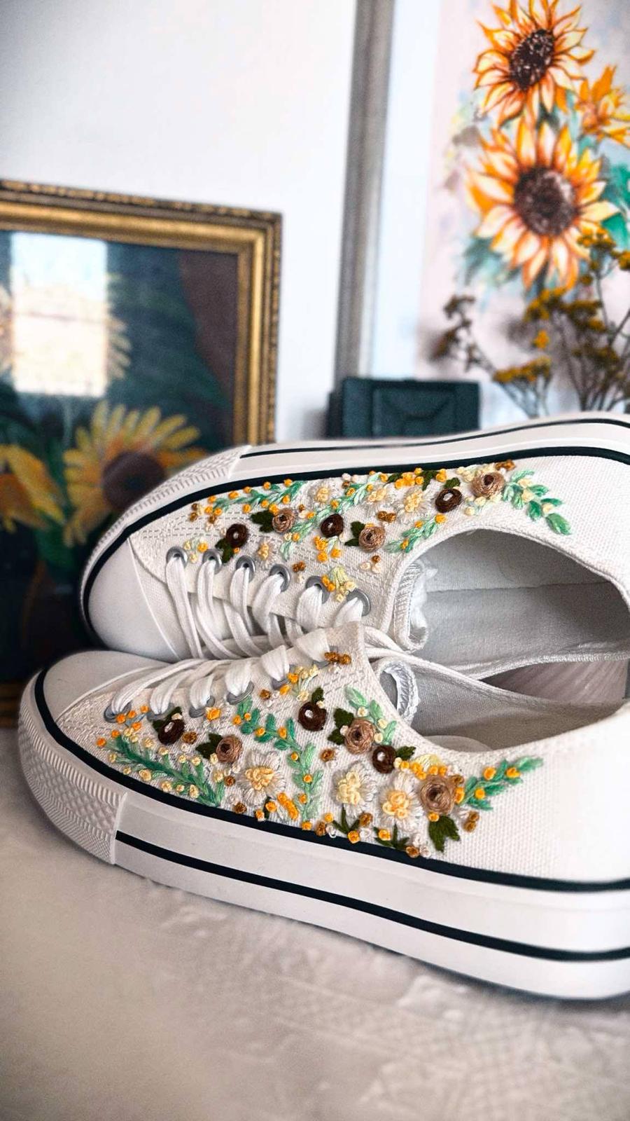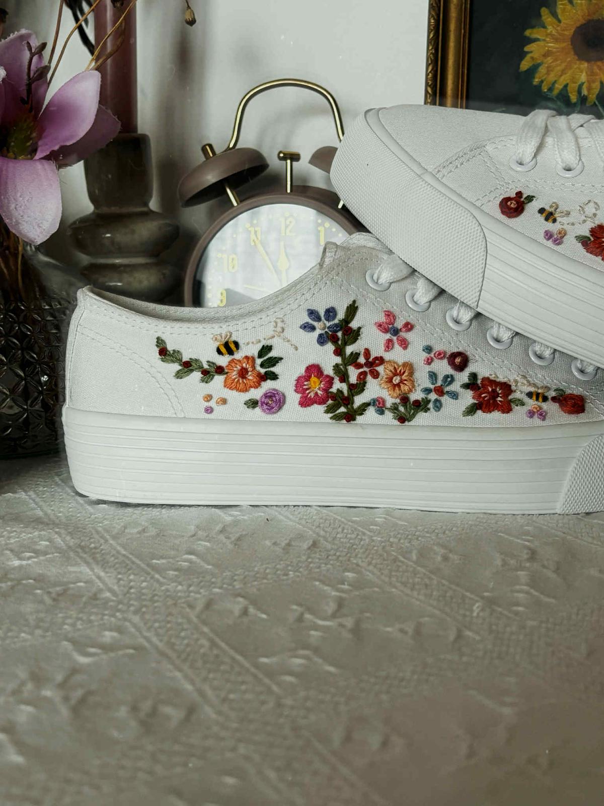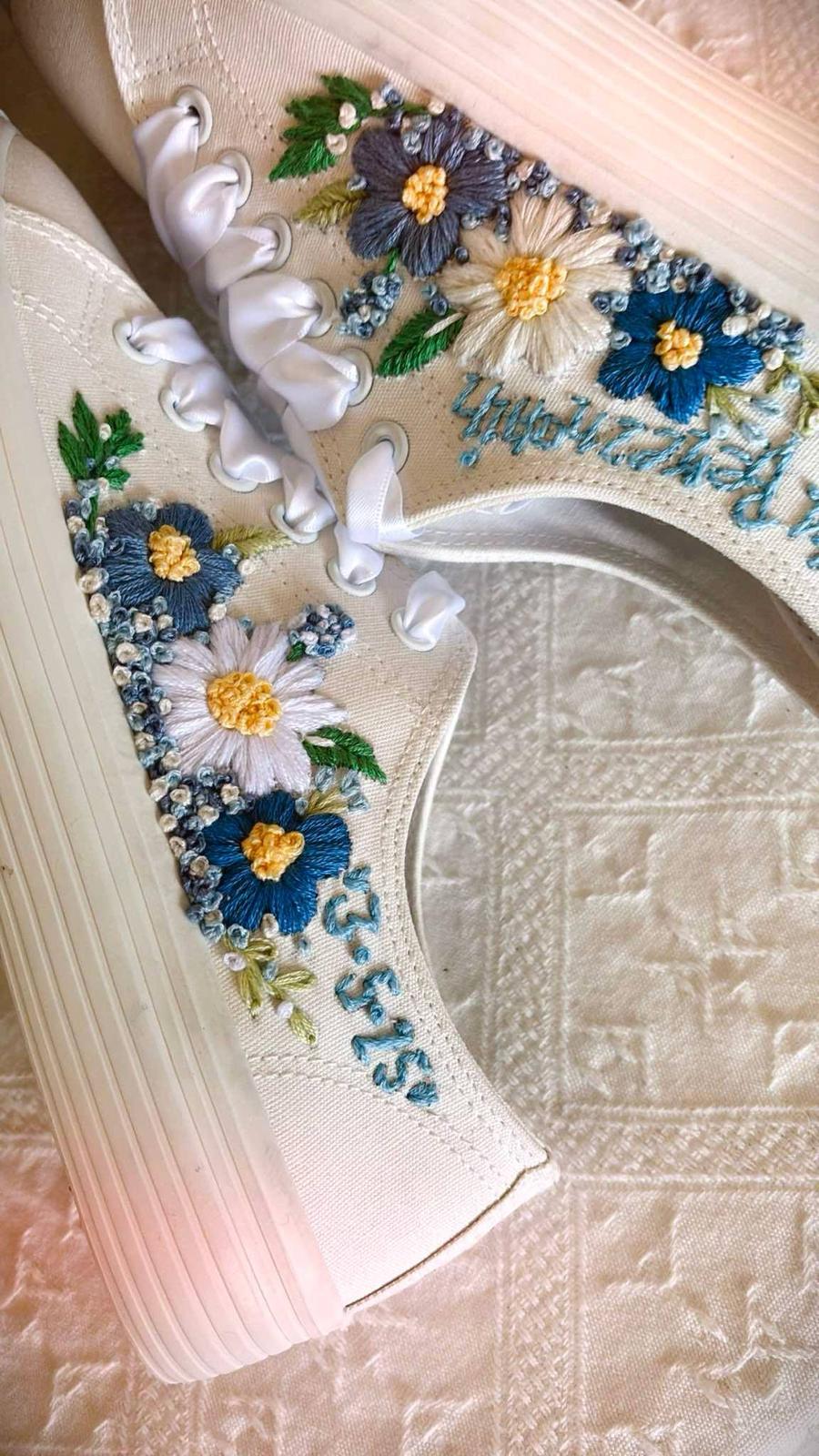 Plátené tenisky zdobené ručnou výšivkou.