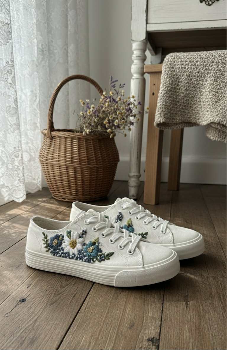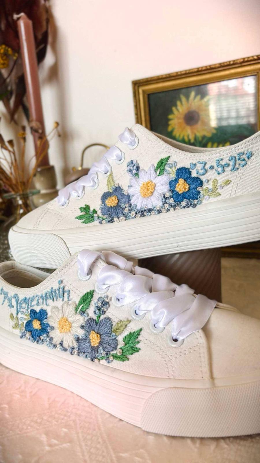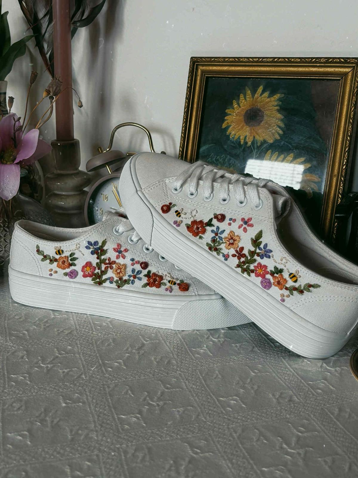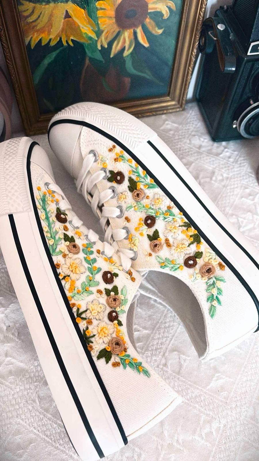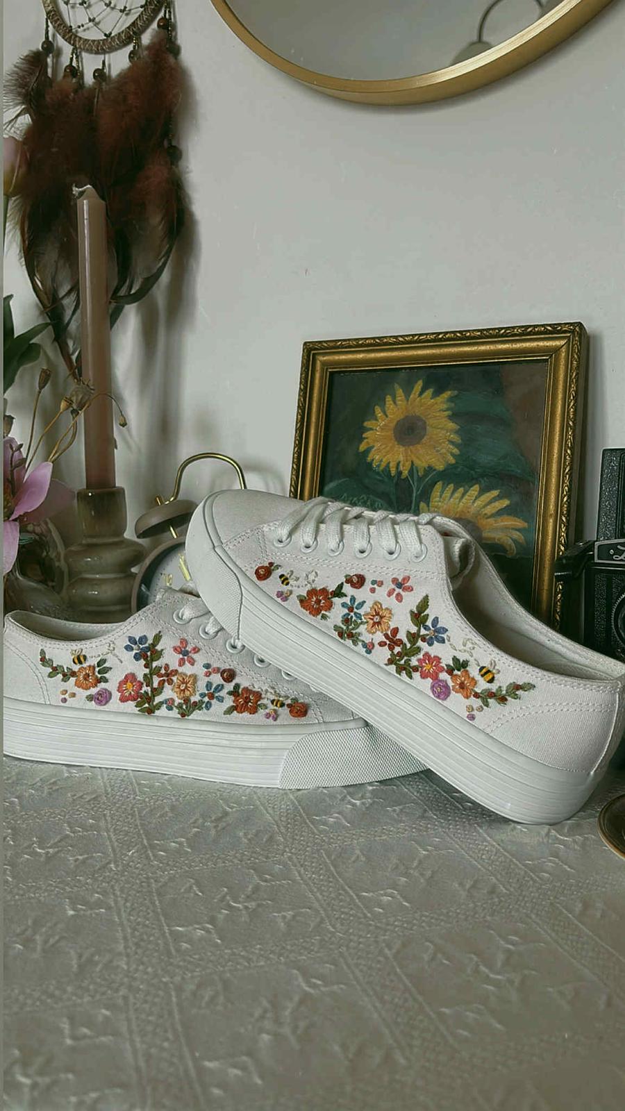 Plátené tenisky zdobené ručnou výšivkou.