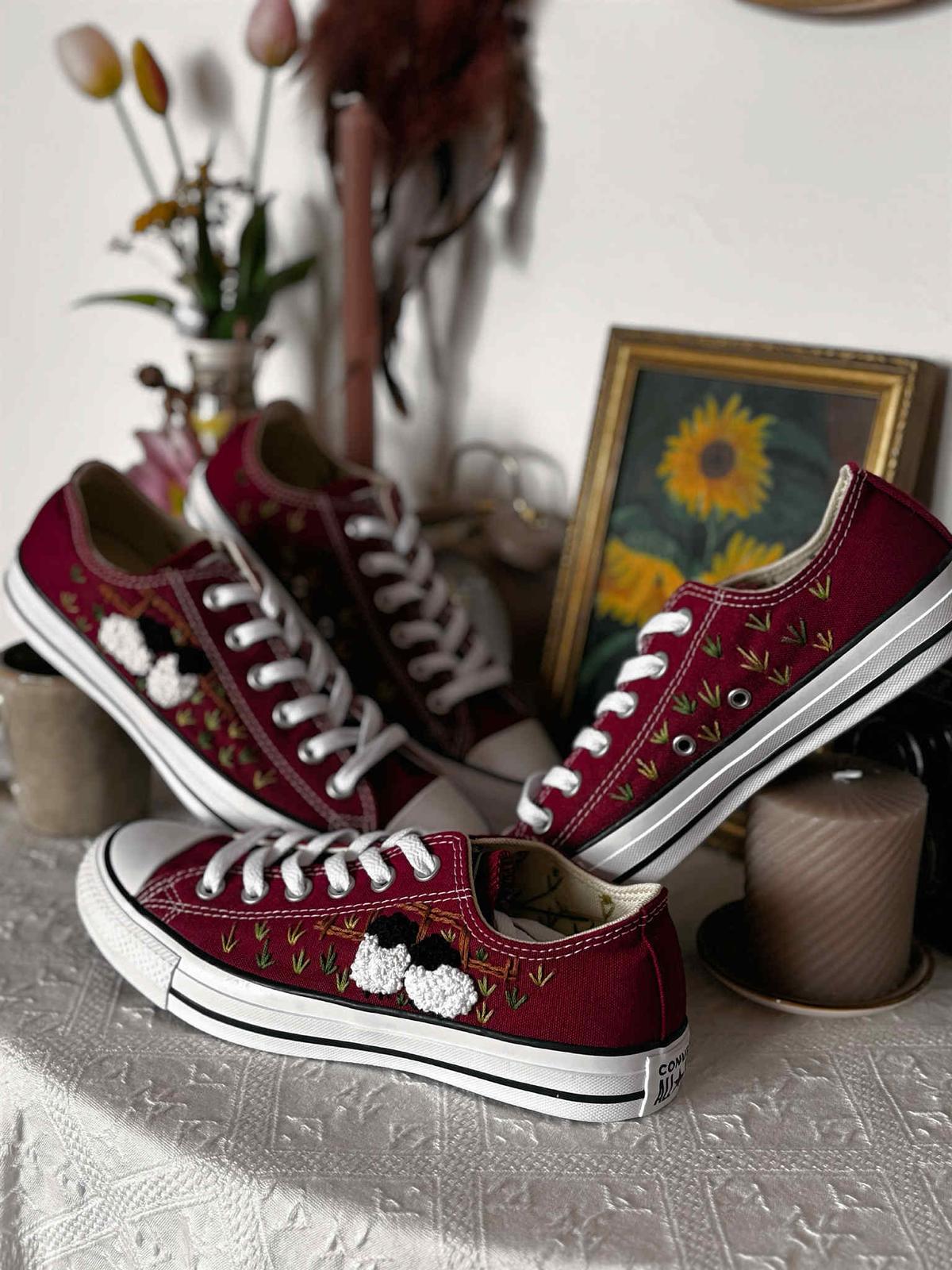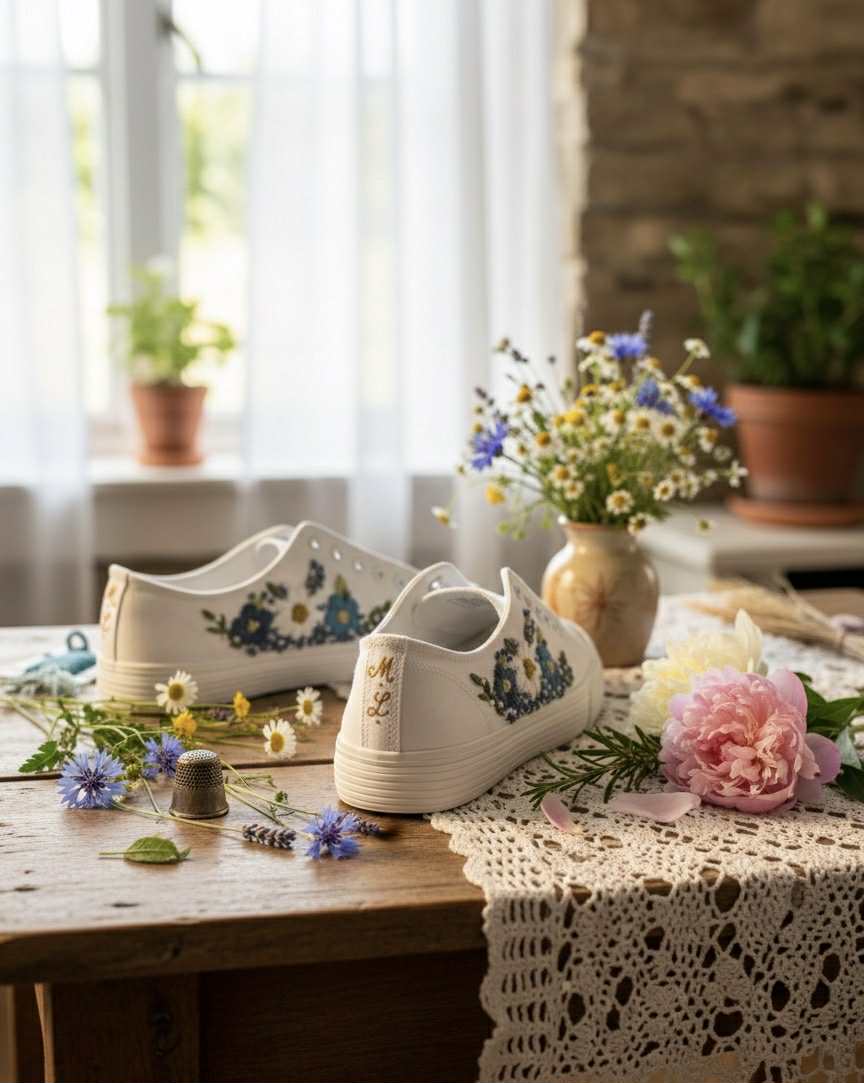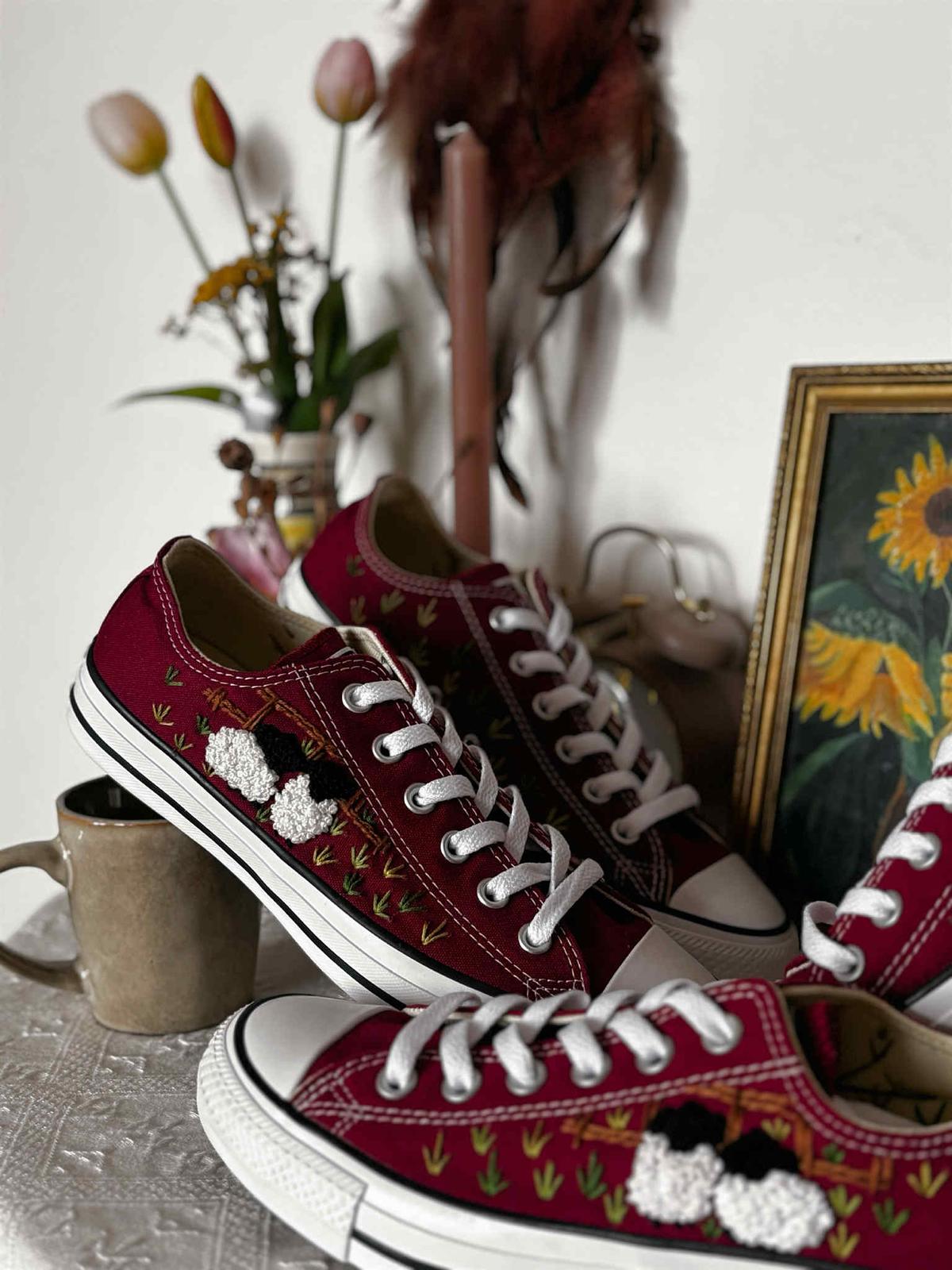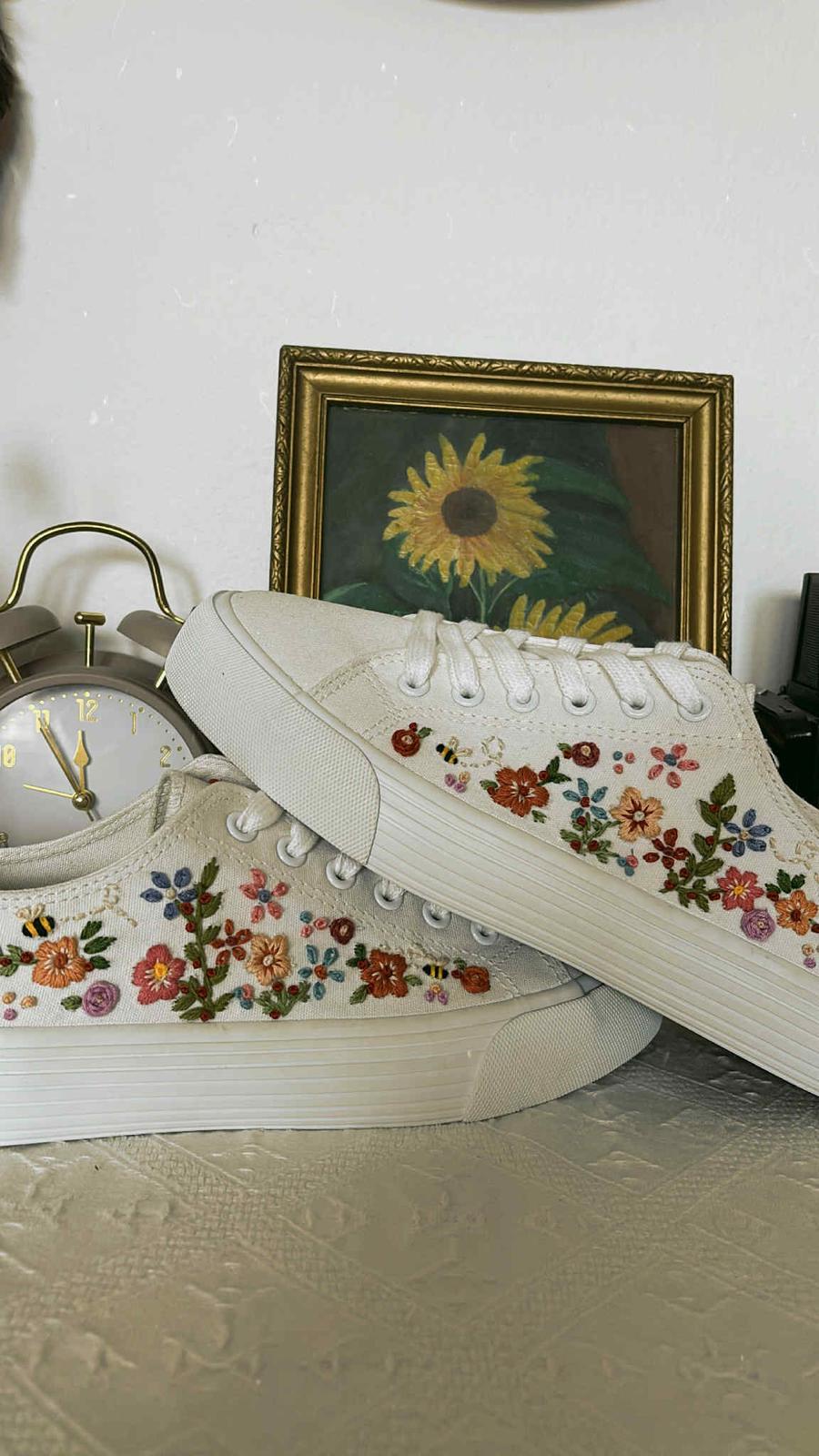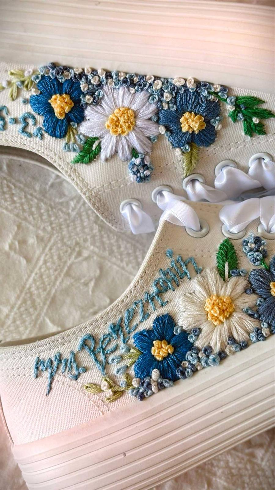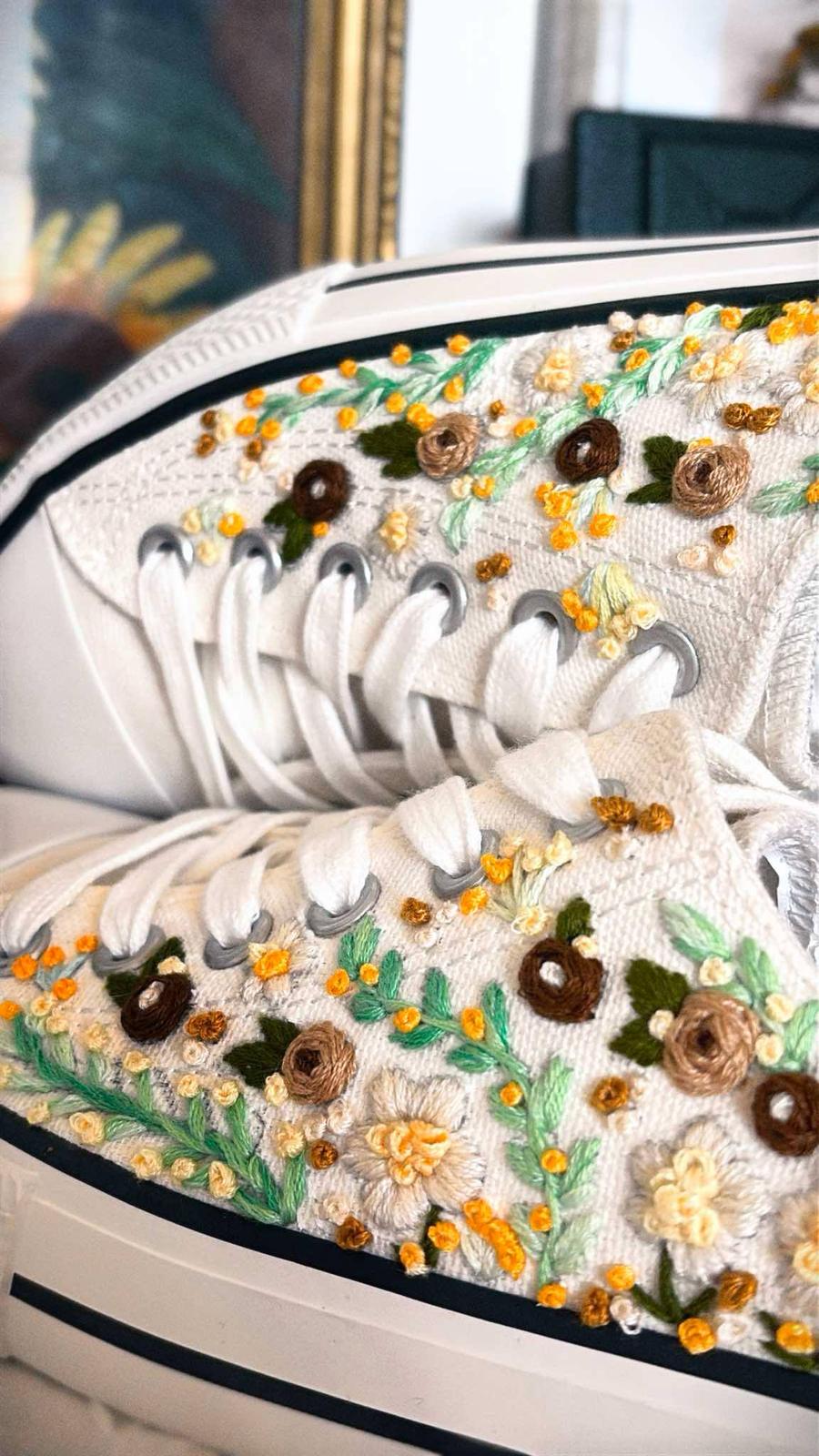 Plátené tenisky zdobené ručnou výšivkou.