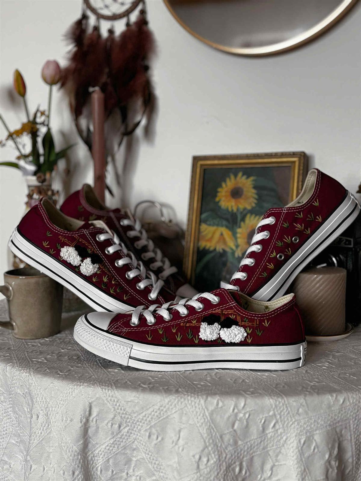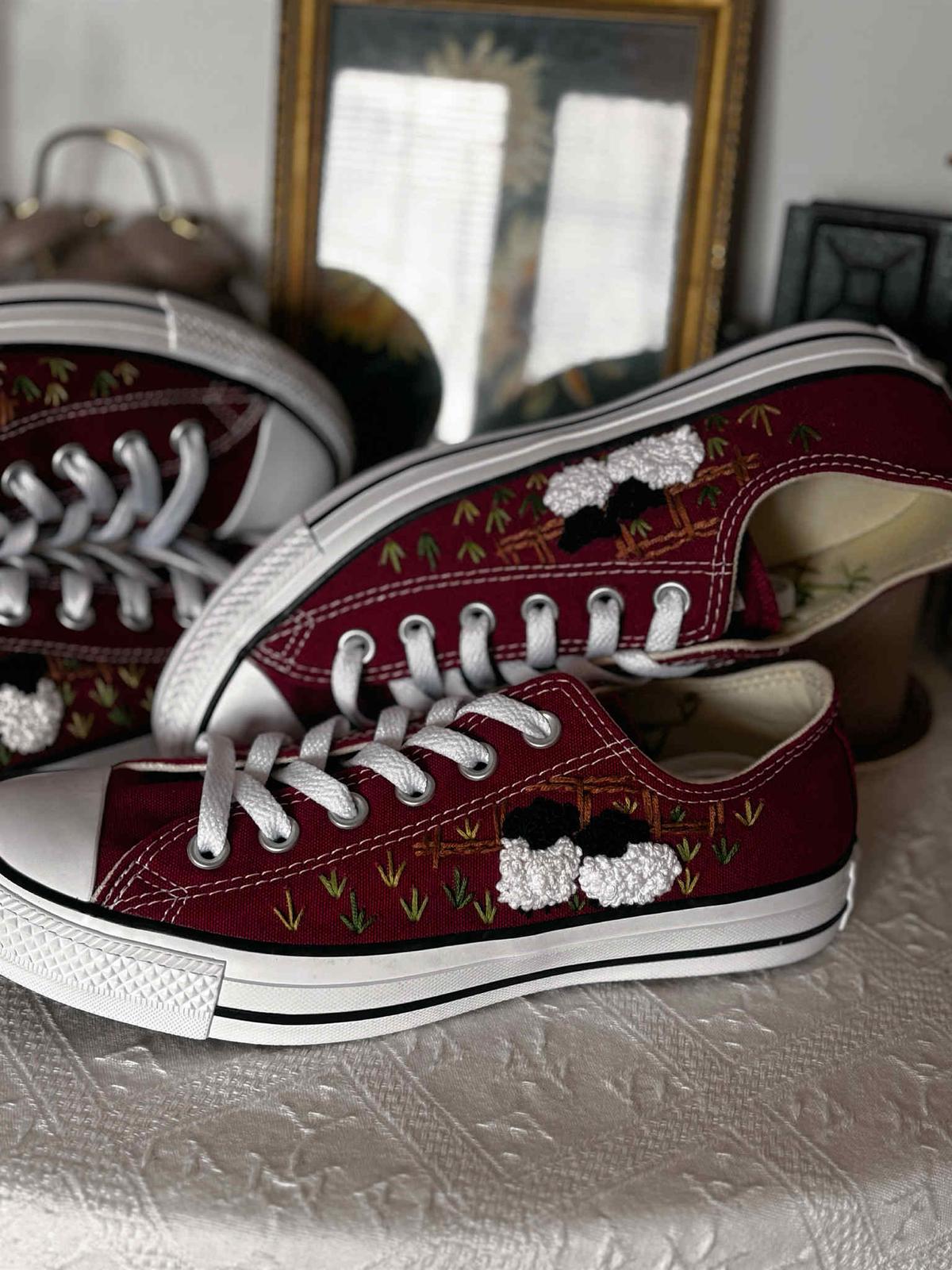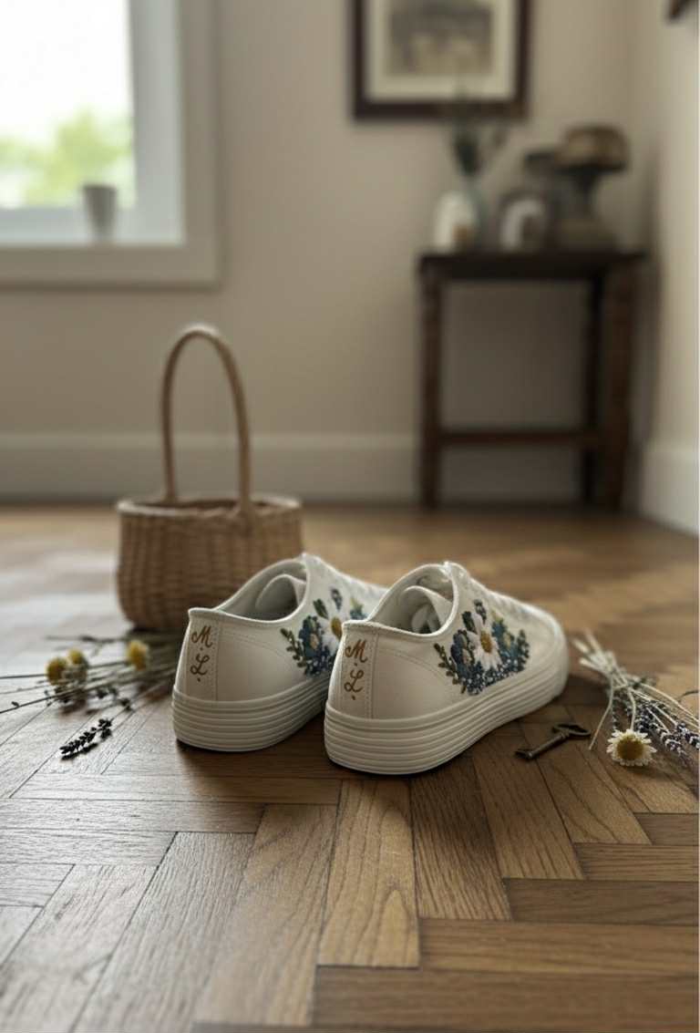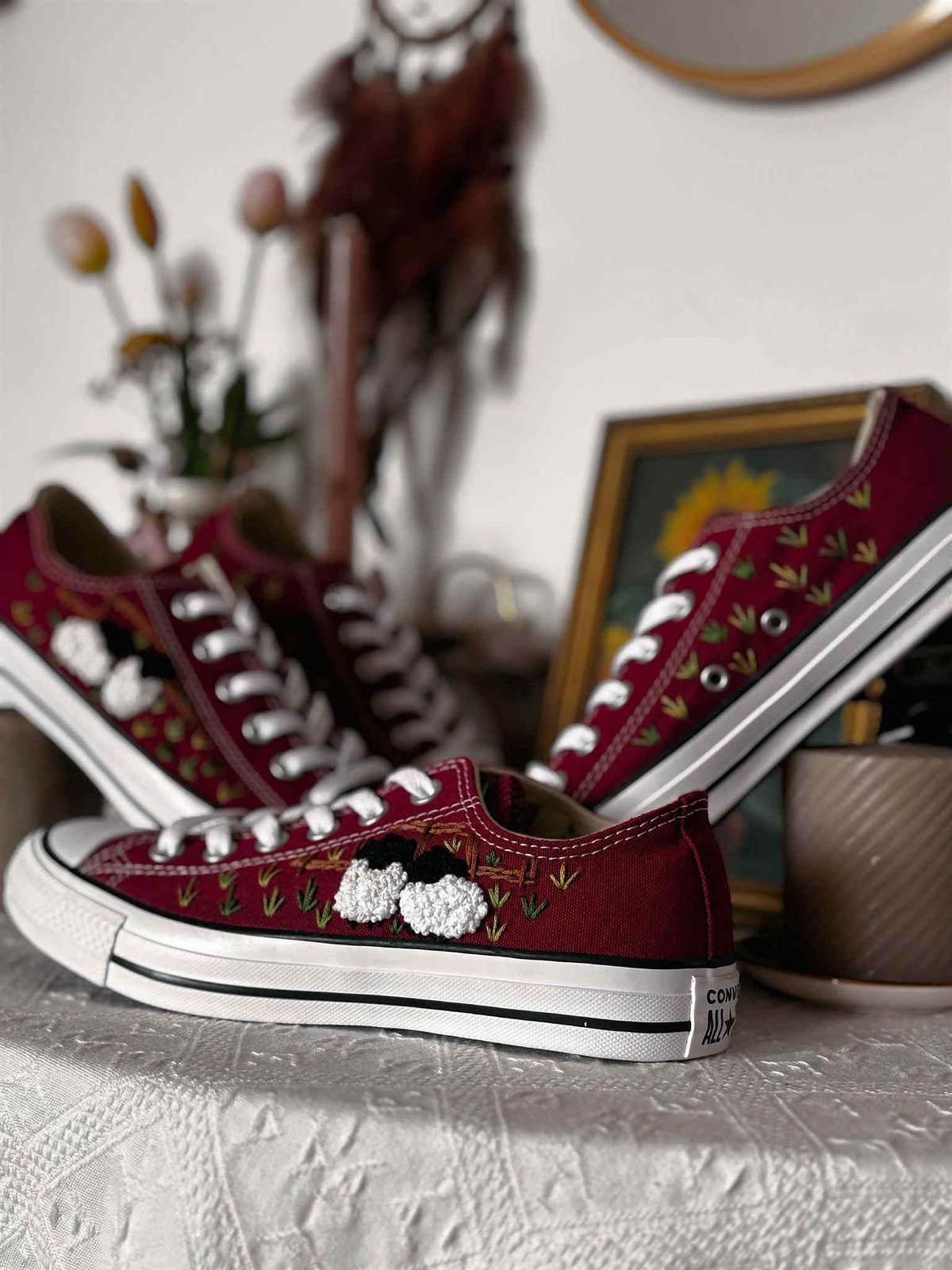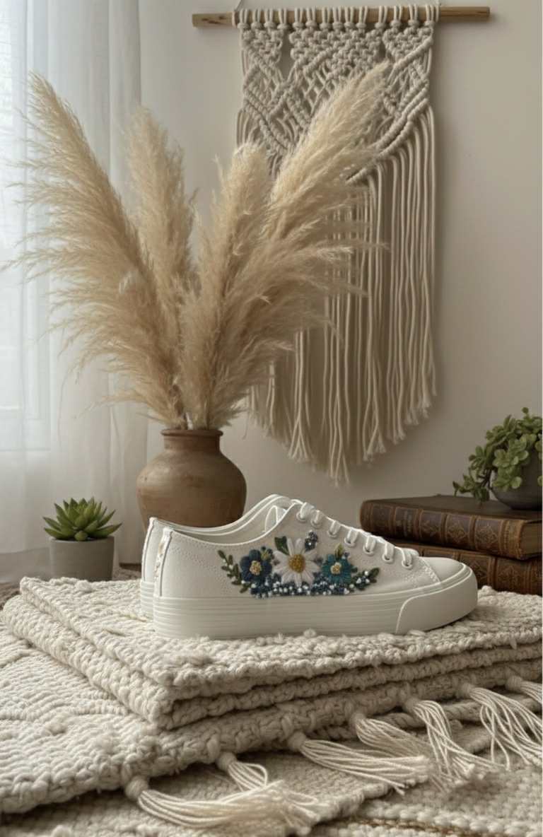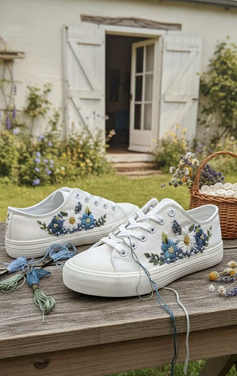 Plátené tenisky zdobené ručnou výšivkou.