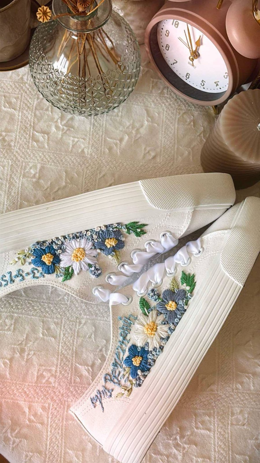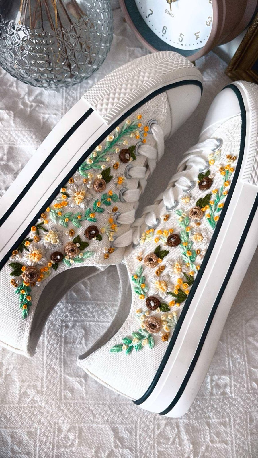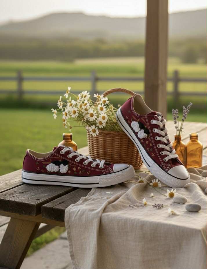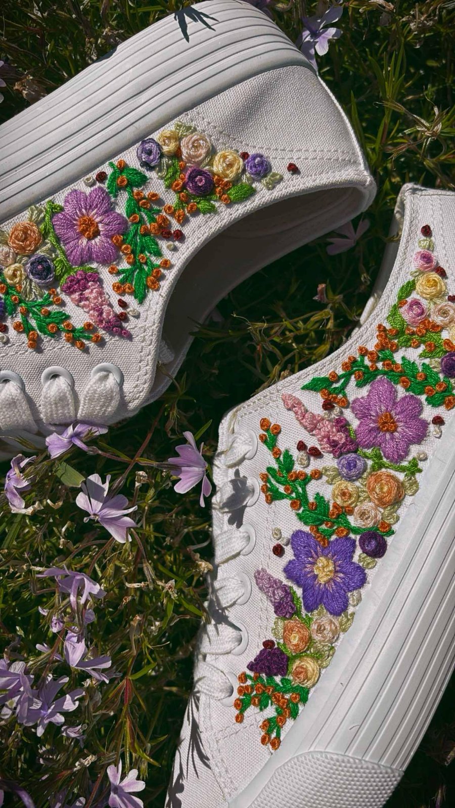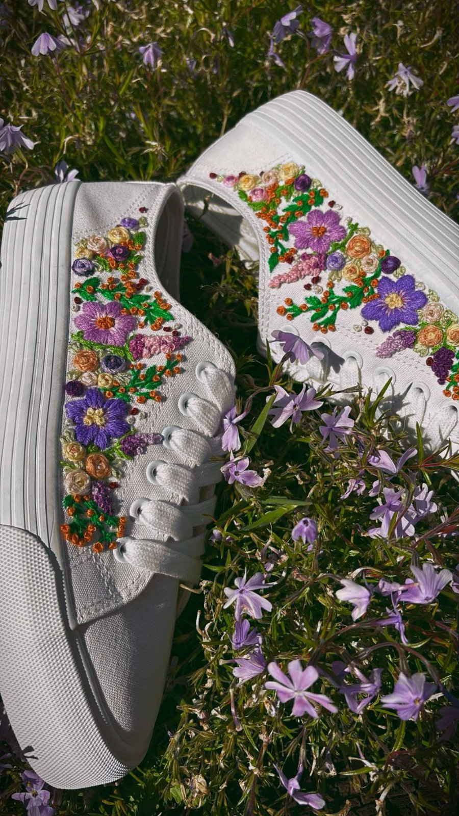 Plátené tenisky zdobené ručnou výšivkou.
