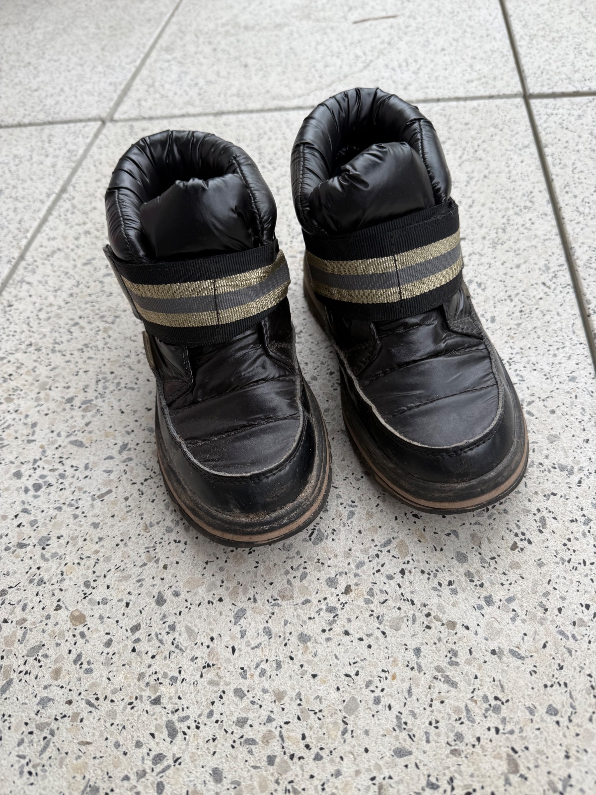 Farba čierna, teplá vnútorná podšívka, široký suchý zips pre jednoduché obúvanie.
