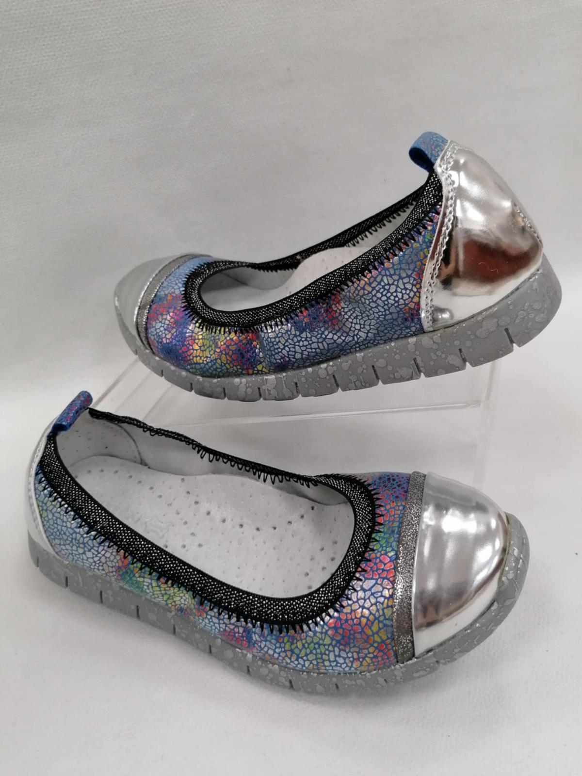 Dievčenské balerínky kvalitnej a obľúbenej značky Kornecki. Vnútro je kožené, čo dieťaťu zaručí prispôsobenie sa nohe a pohodlie pri nosení. Stielka je tvarovaná.