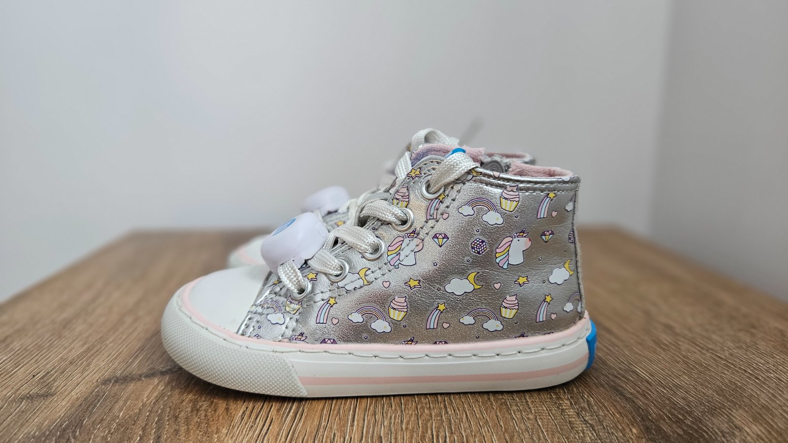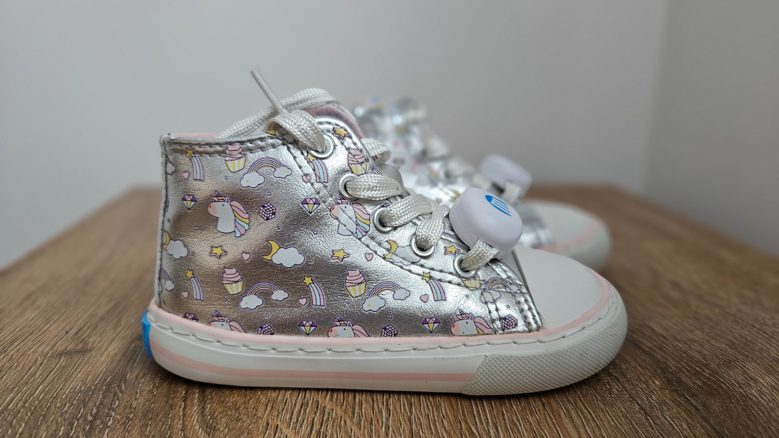 Barefoot členkové tenisky Mustang Free so svietiacimi šnúrkami. Máličko nosené, zima prišla skôr. Bez poškodení. Vyberateľna stielka. Veľkosť 24, 14.6cm/6.5cm.