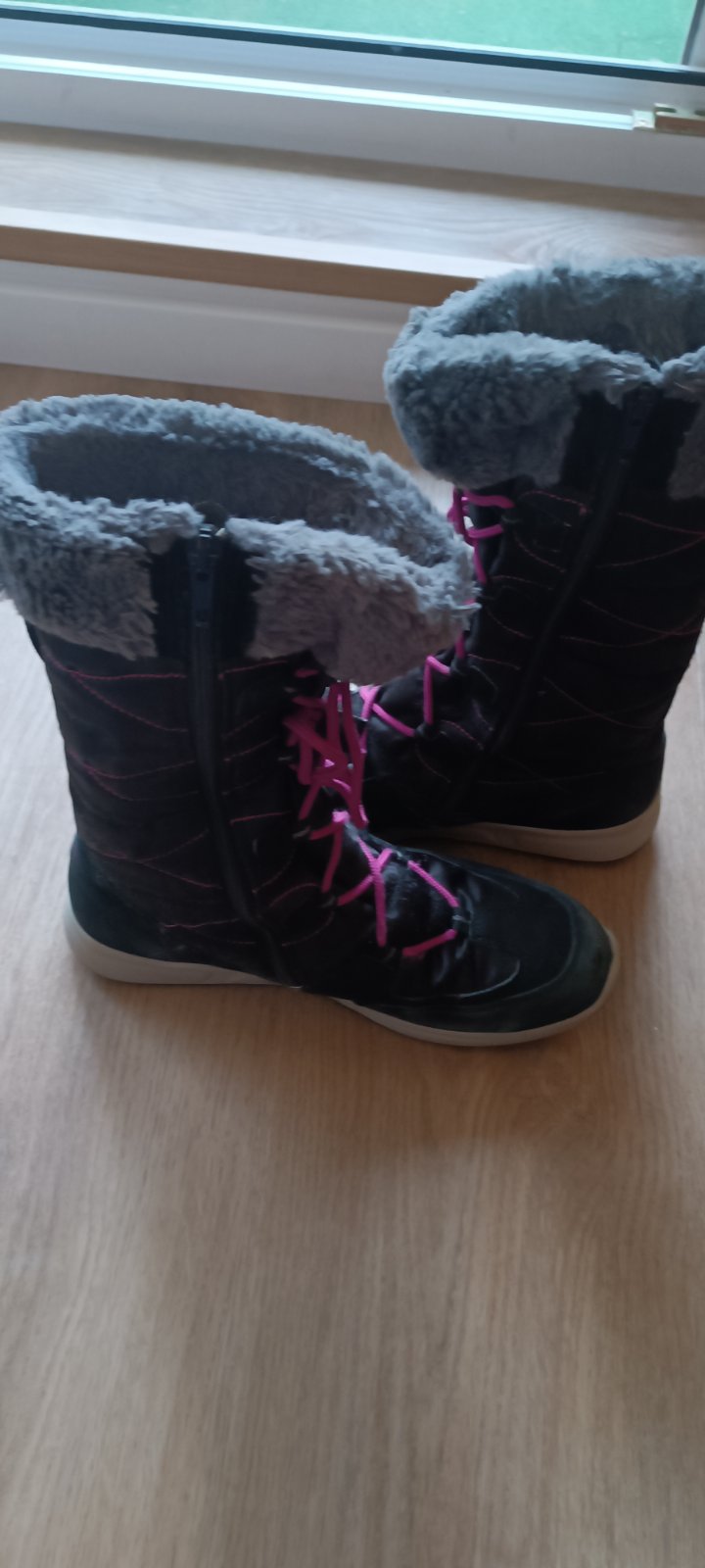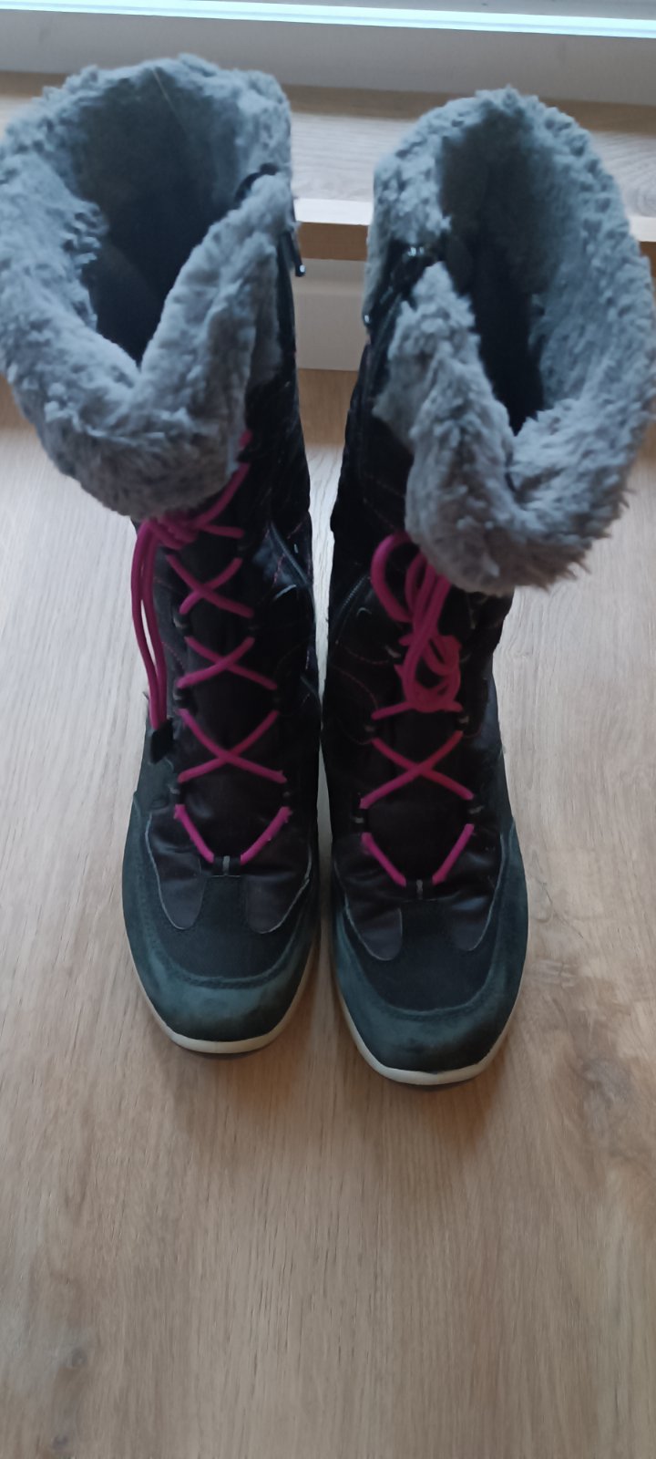 Kvalitné čierno-šedo-ružové zimné snehule SUPERFIT. Nosené, vo veľmi dobrom stave. Nepremokavé s goretexovou membránou. Zateplené kožušinkou. Dľžka vybratej vložky 26,2 cm. Suché zipsy držia. Kupov...