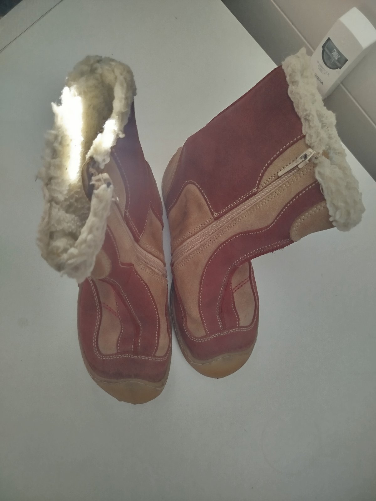 Zimné topánky v dobrom stave, majú už nejaké suchnutia, inak stále funkčné. Vnútri zateplené. Vnútorná dĺžka 20,5 cm