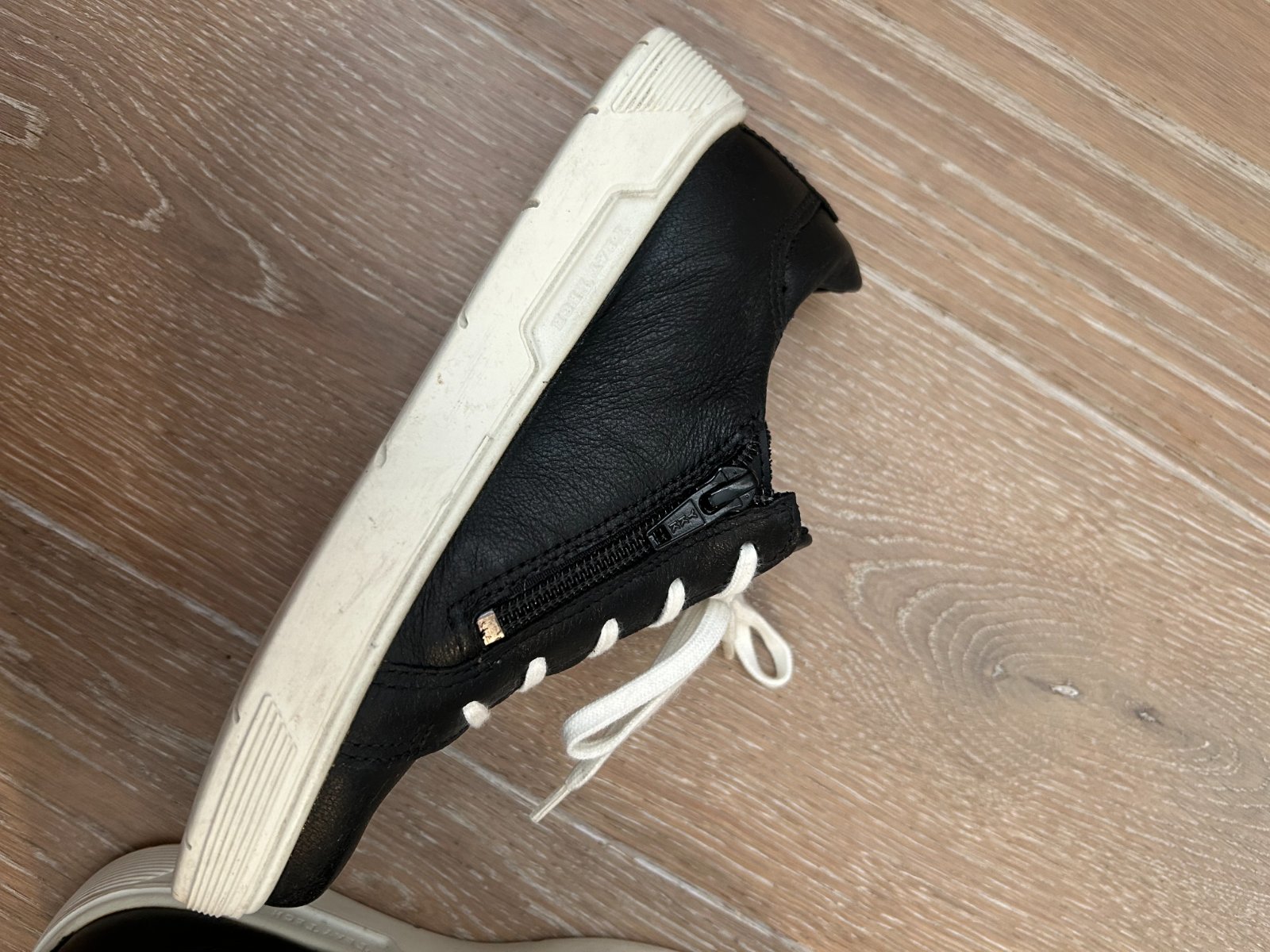 Predám poltopánky čierne o veľkosti 31 (210mm : veľkosť vnútornej vložky). Topánky sú športovo elegantné s bielou podrážkou a 3 suchými zipsami.