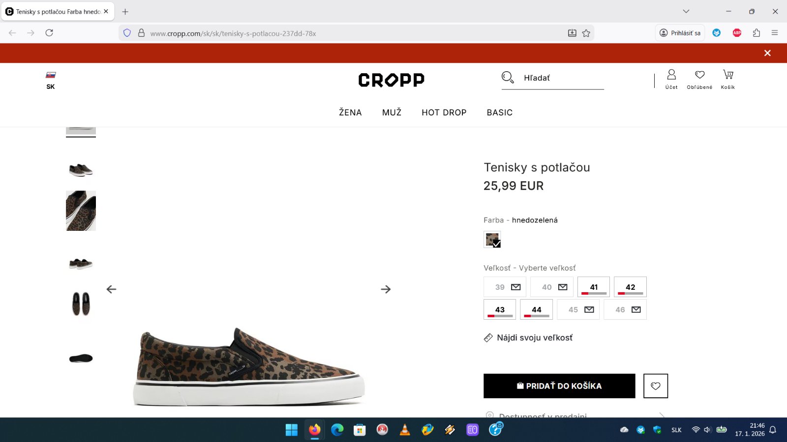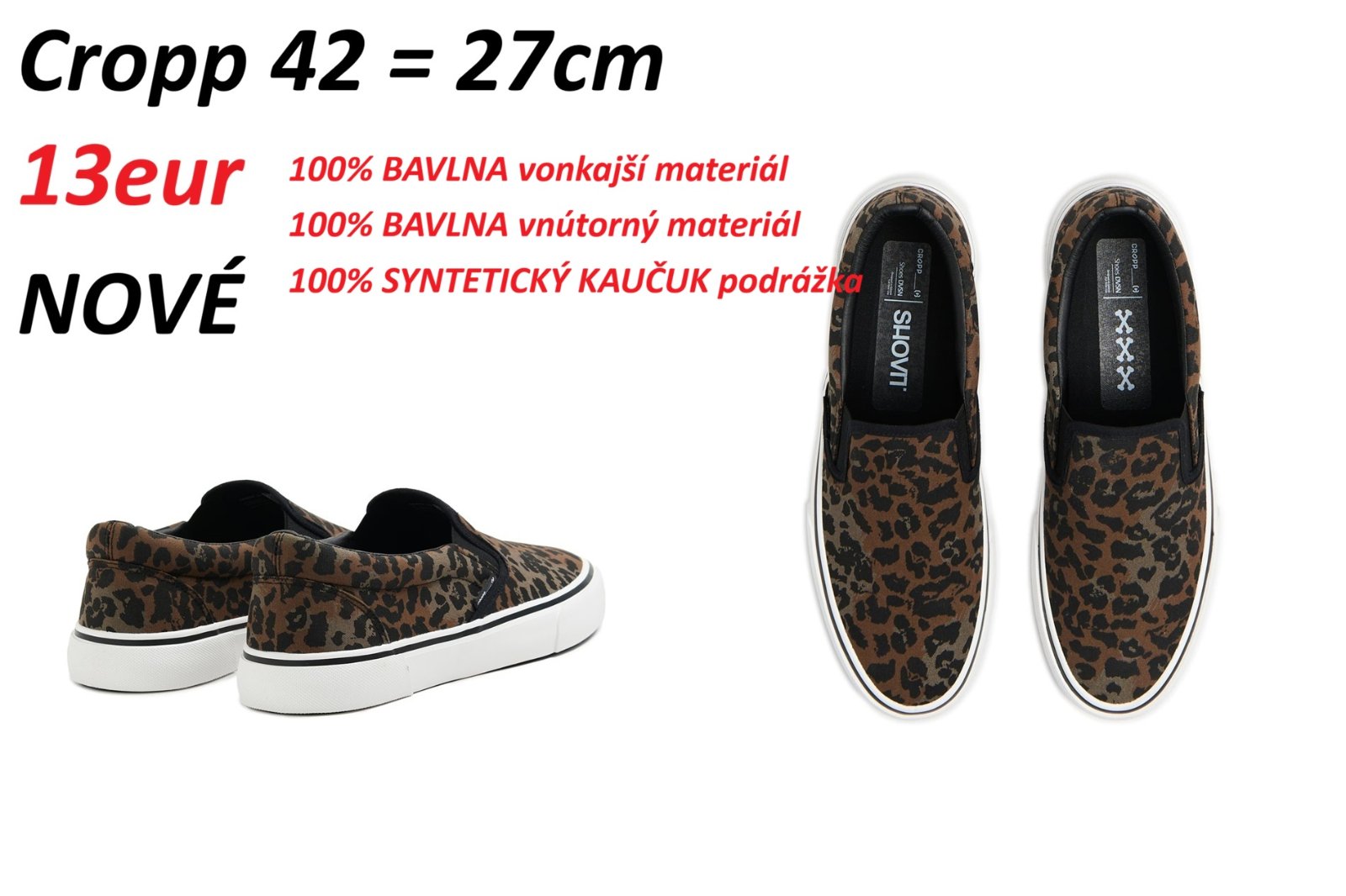 Ďalej predám pánske našuchovacie/slip-on tenisky Cropp s leopardím vzorom, veľkosť 42 = 27cm. Cena 13eur.