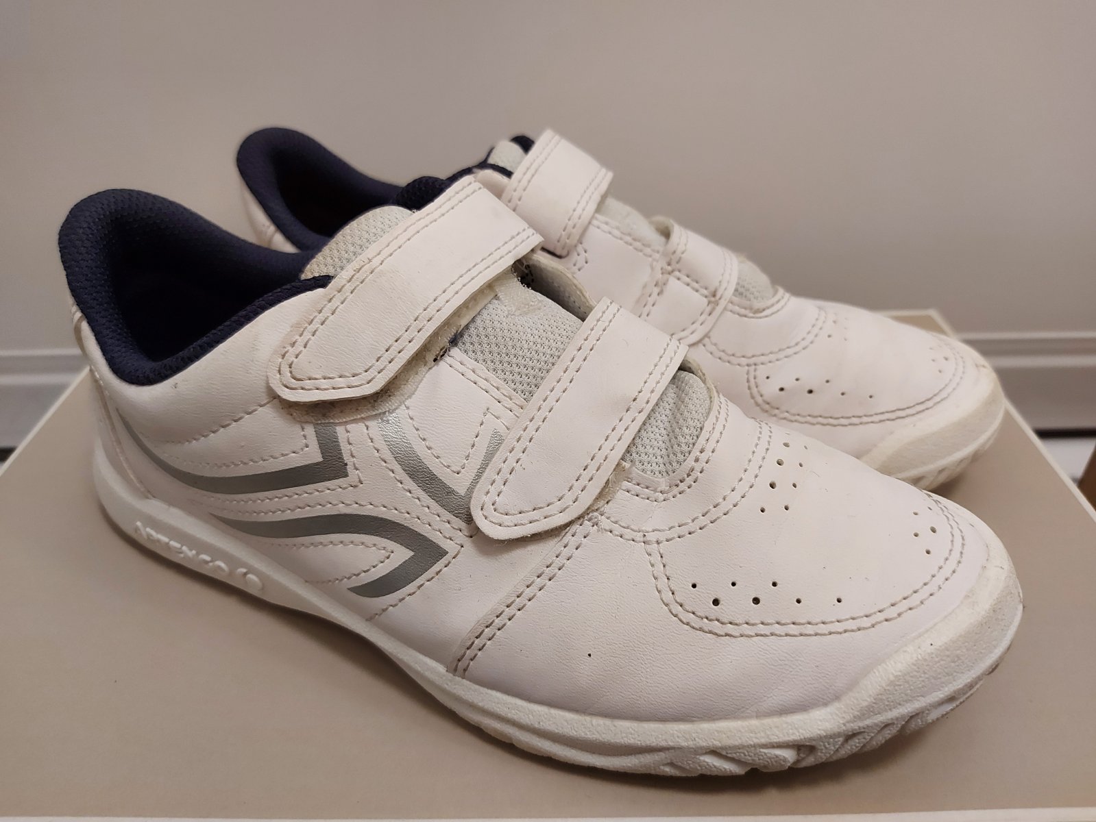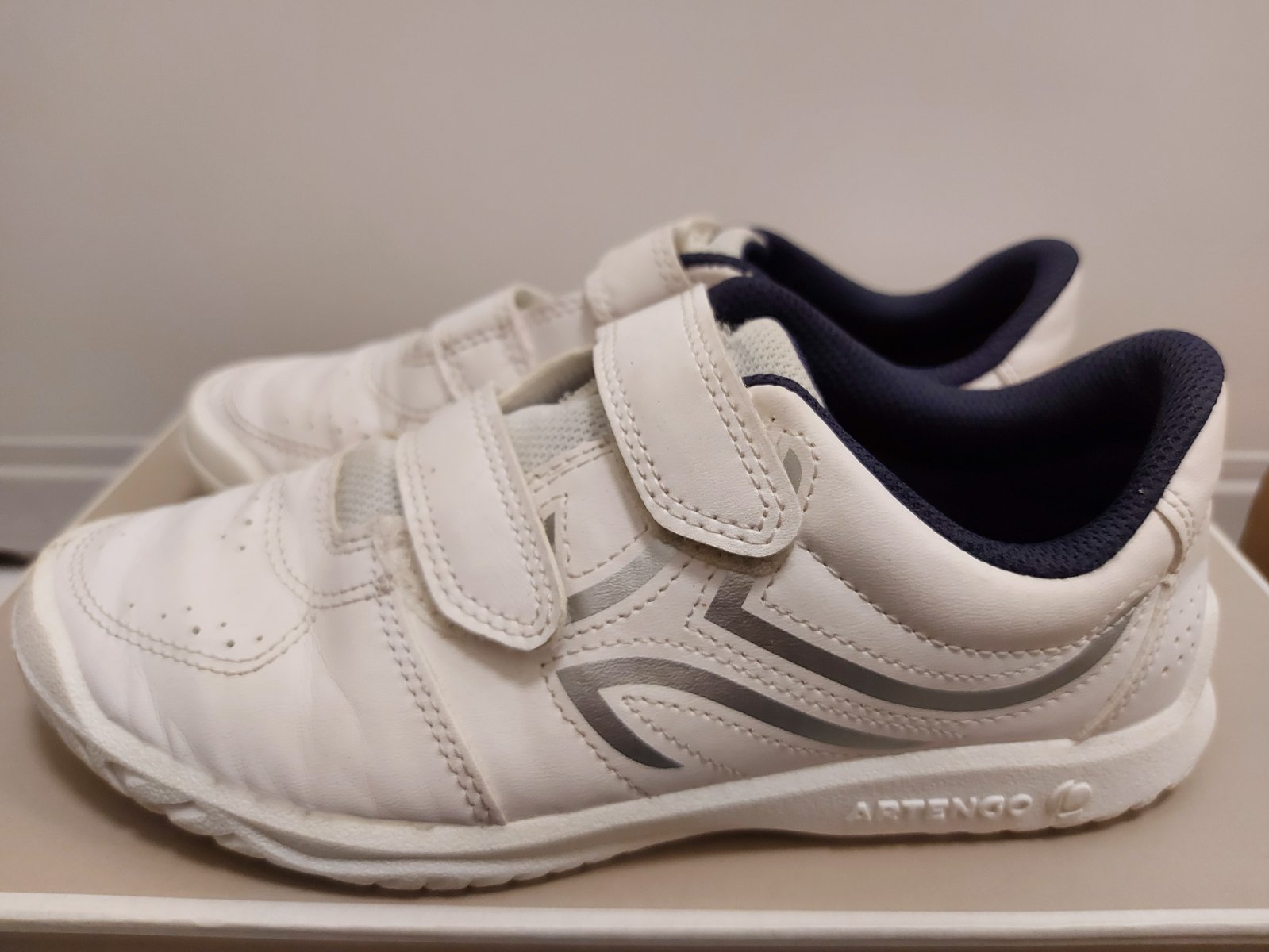 Tenisky značky Artengo, kupovane v Decathlon, nosené len v rámci hodín telesnej výchovy. Veľkosť 36 uvedená, zodpovedá však veľkosti 35. Zachovalé, bez poškodení, bežné známky používania.