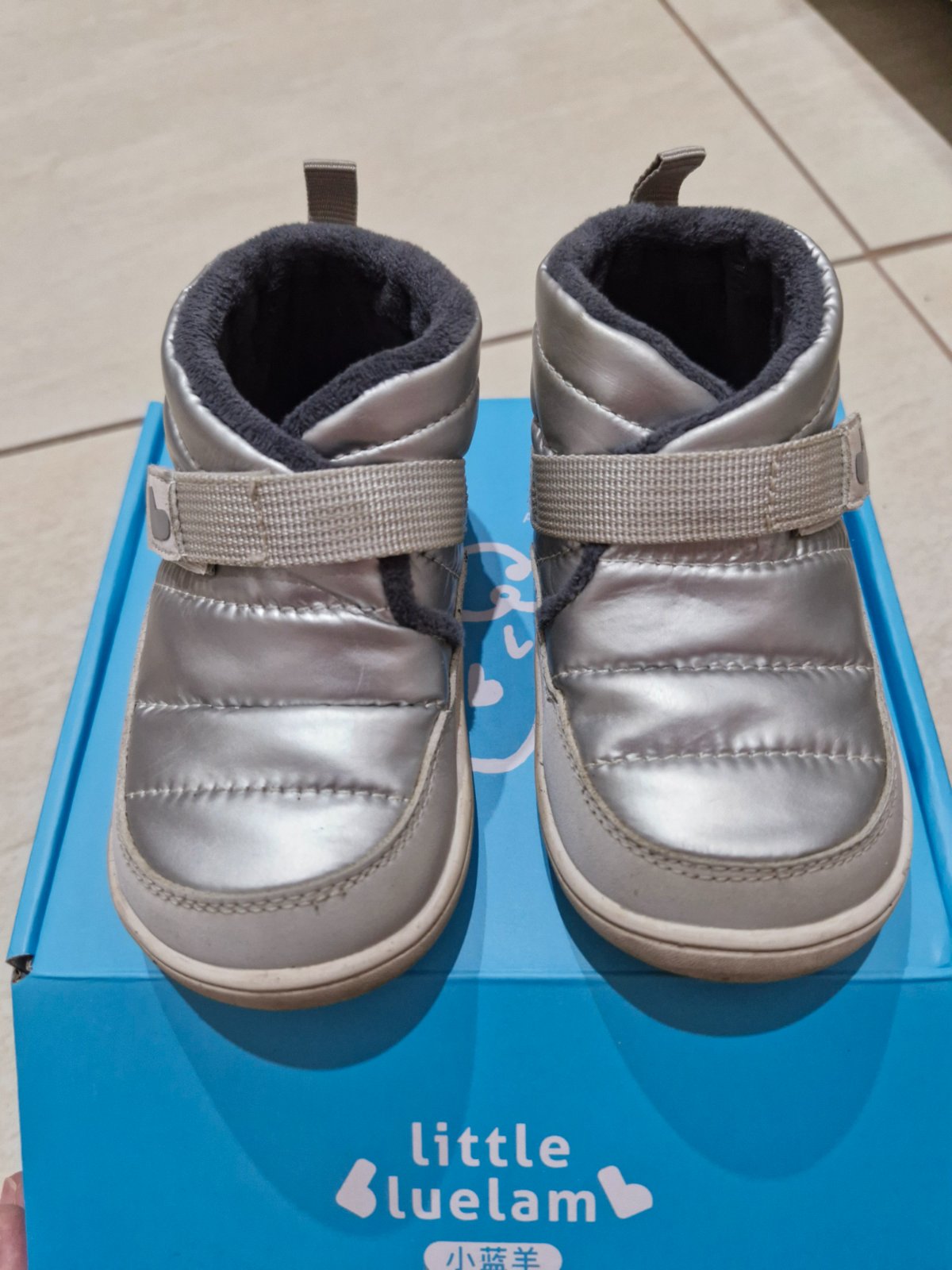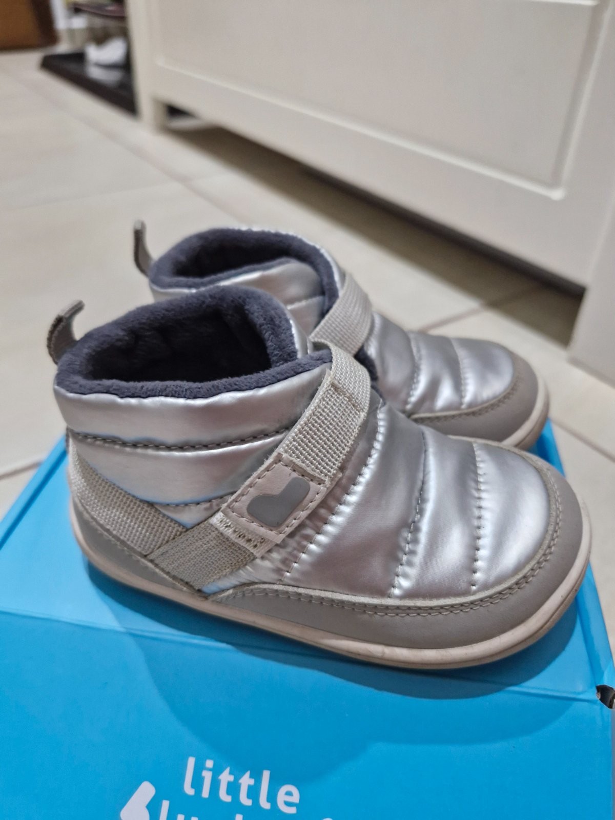 Topánočky príjemné na nosenie. Vhodné aj na zimu, skôr suchsiu bez snehu. Ľahko sa obuvaju a zapínaju. Suchý zips funguje. Potrebné je vyčistiť podrážku, ktorá je biela. Pôvodná cena bola 45.90€. VD 13.7 cm, VŠ 6,3 cm.