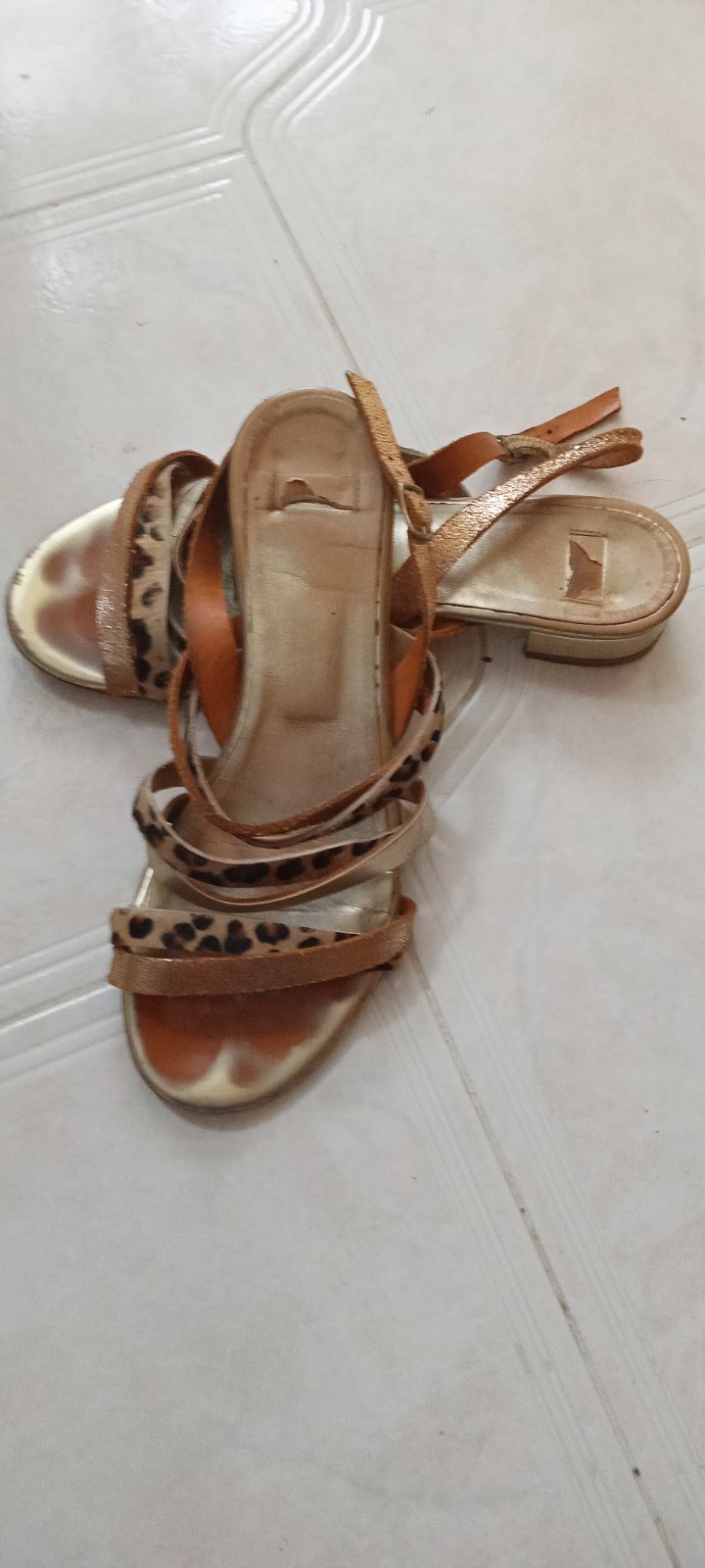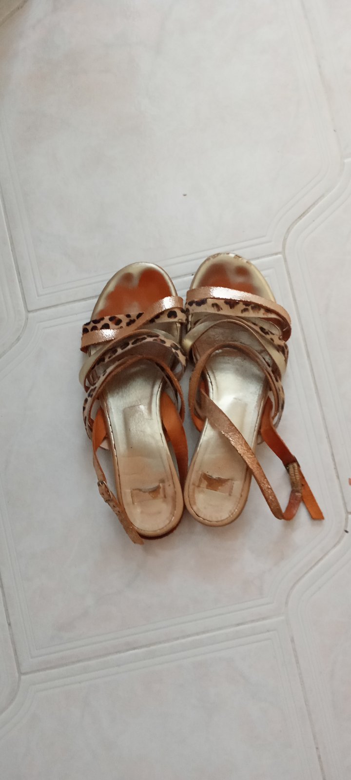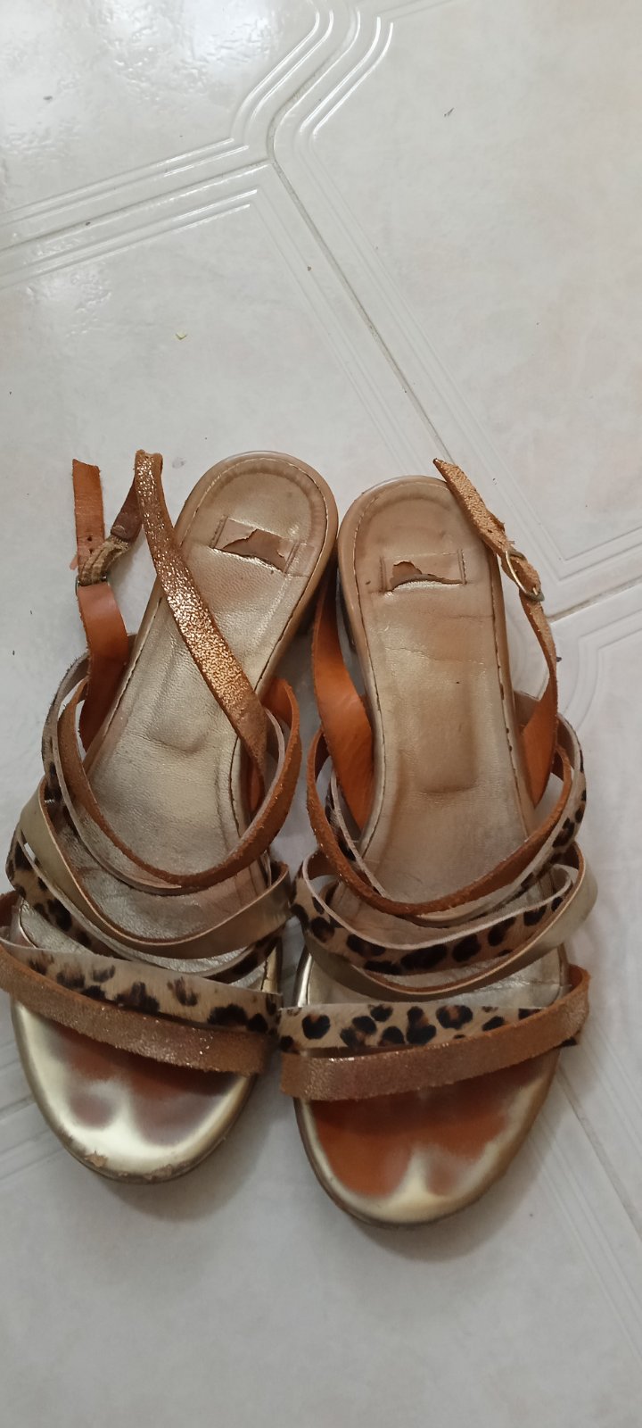 Pekne zachovalé sandálky.Malo nosené.Na jednej sandále je ten korok trošinku na niektorých miestach tmavší od druhej sandály.Nie je to pri nosení vidno iba pri dokladnejsom porovnavani,viď.foto