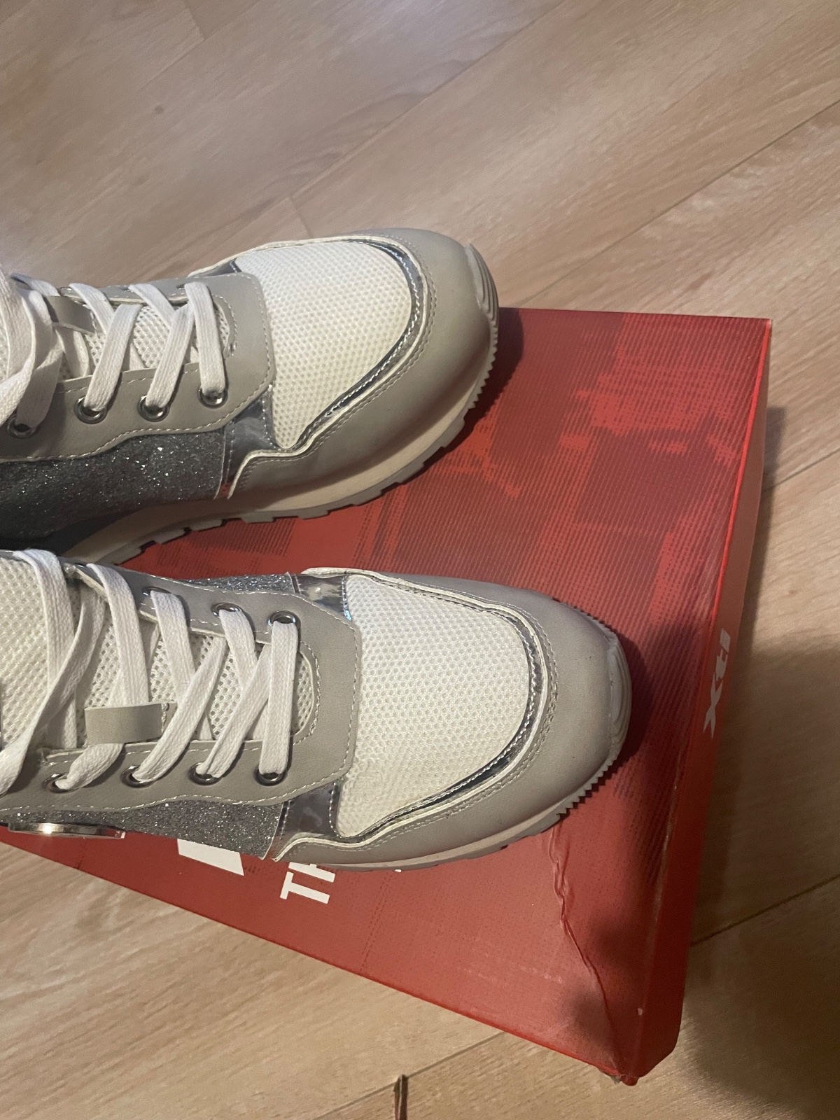 Predám krásne 2-3x nosené tenisky. Sú vi výbornom stave. Mala chybička vpredu, sieťka je deravá, ale nie je veľmi viditeľná (viď medzi fotkami). Mám aj v zlatej farbe, viď medzi inzerátmi, ináč zlate sú úplne nové! Kúpené na Zalando.sk za 48€, teraz predám za 30€ + Packeta/posta