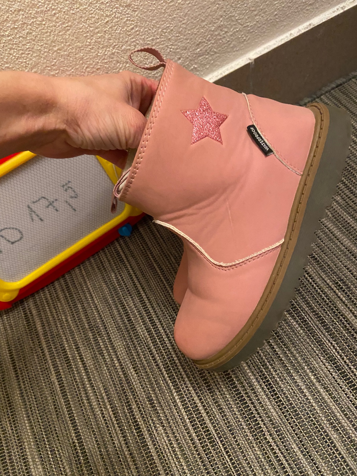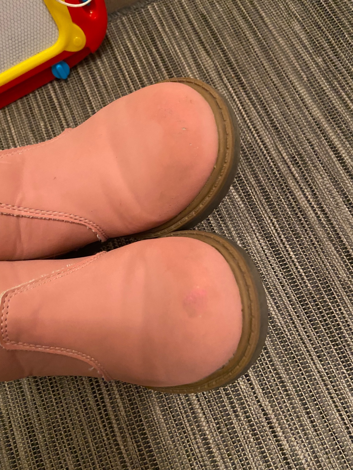 Kŕasne praktické topánky, nosene jednu sezónu, jemné zakopnutie voredu. Myslim, ze to velmi nevidno.