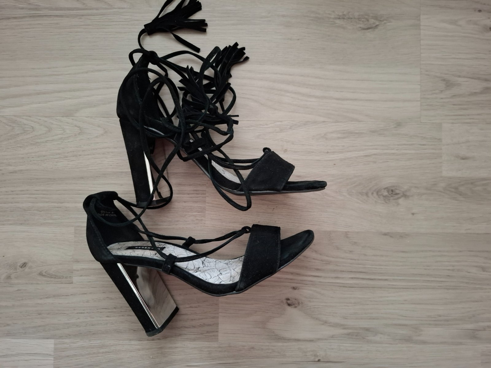 Šnurovacie sandálky s pekným slamenným detailom na opätku s uväzovaním na šnúrky, veľmi pekne vyzerajú obuté a obzvláštnia outfit.