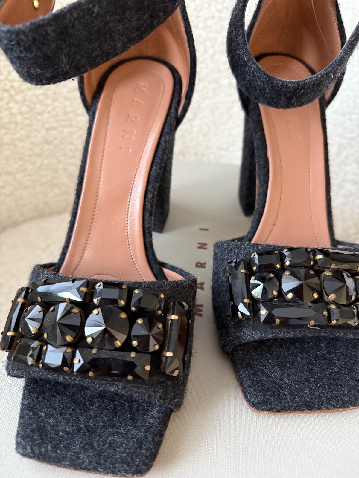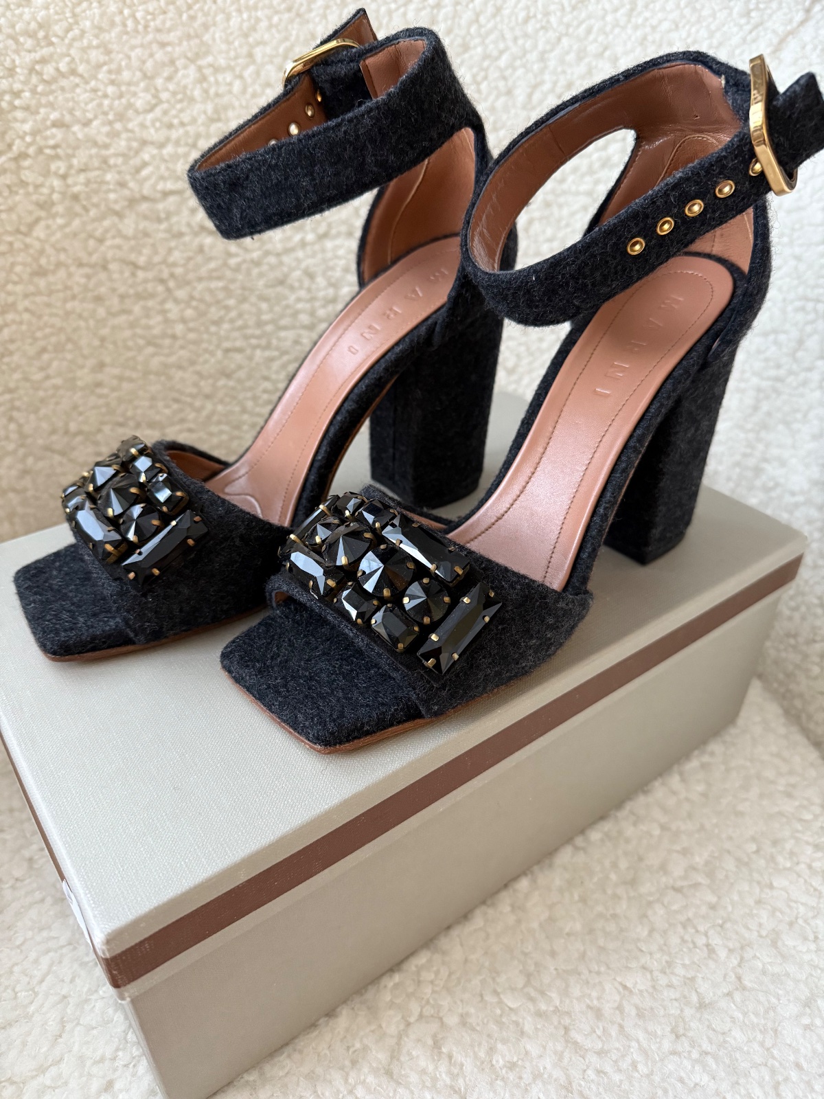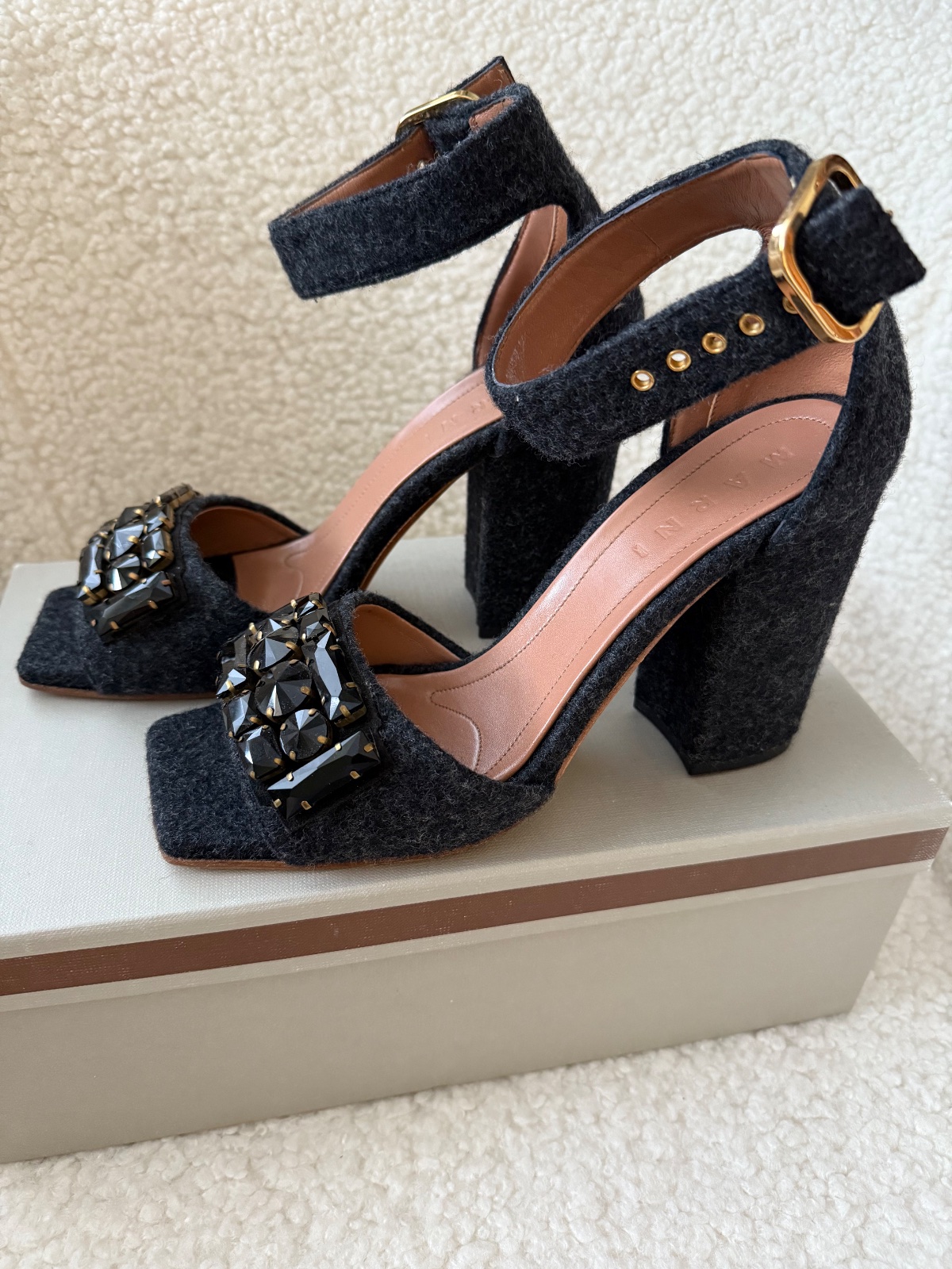 Pekné modré sandálky, veľmi pohodlné. Párkrát obuté, nepoškodené. Vnútorná dĺžka 25 cm, výška opätku 7 cm. Pri kúpe viac vecí ich pribalím zadarmo. Keďže už chvíľu stoja v skrini, neviem zaručiť, k...