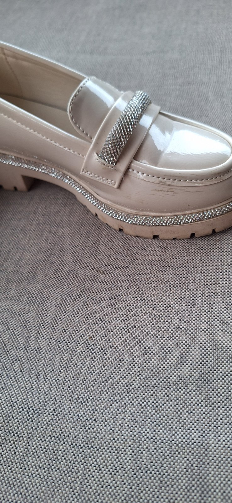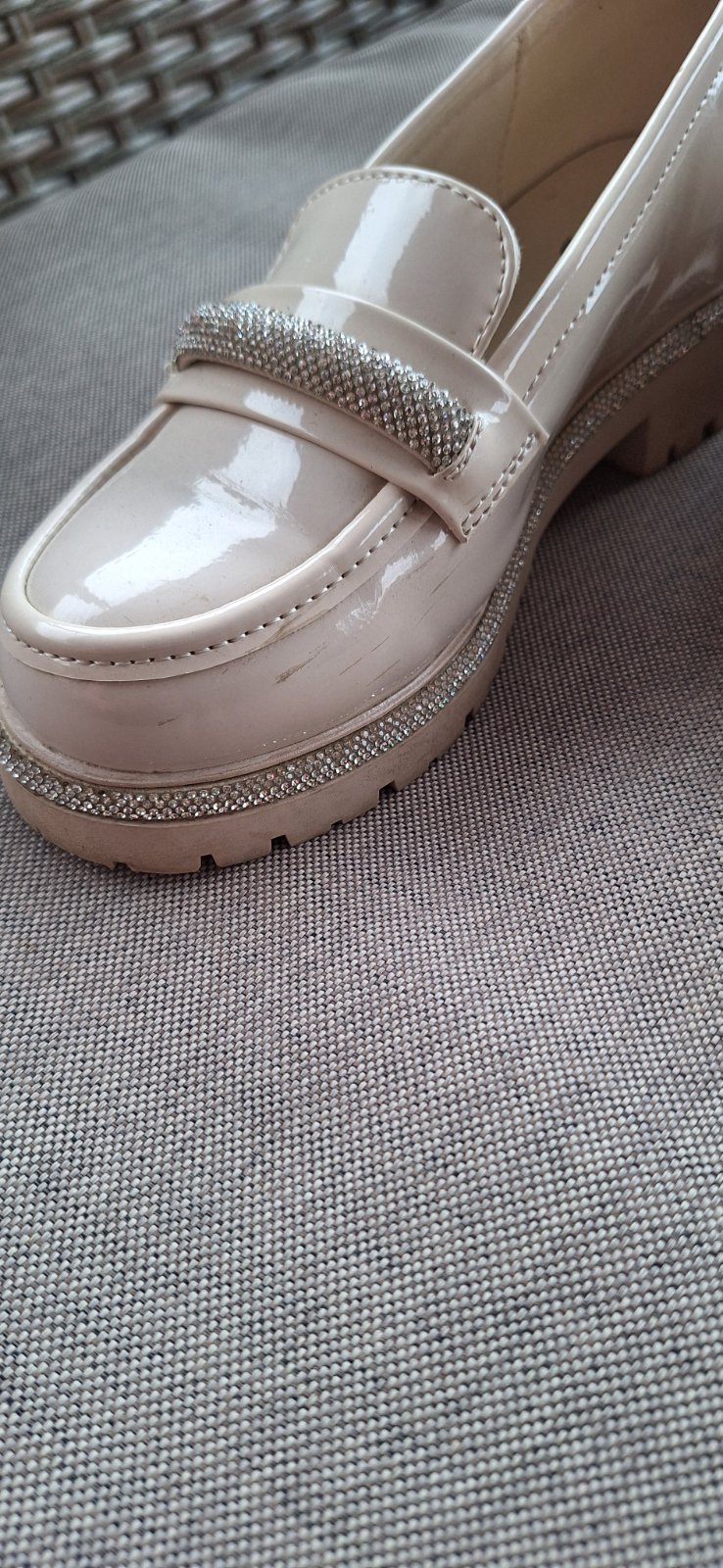 Lakované topanky,nosené len jednu sezónu. Trosku na biku suchnute,nič vážne. Špičky neokopané. Vnutr.dlzka 20,5cm cena 5e plus pošta.