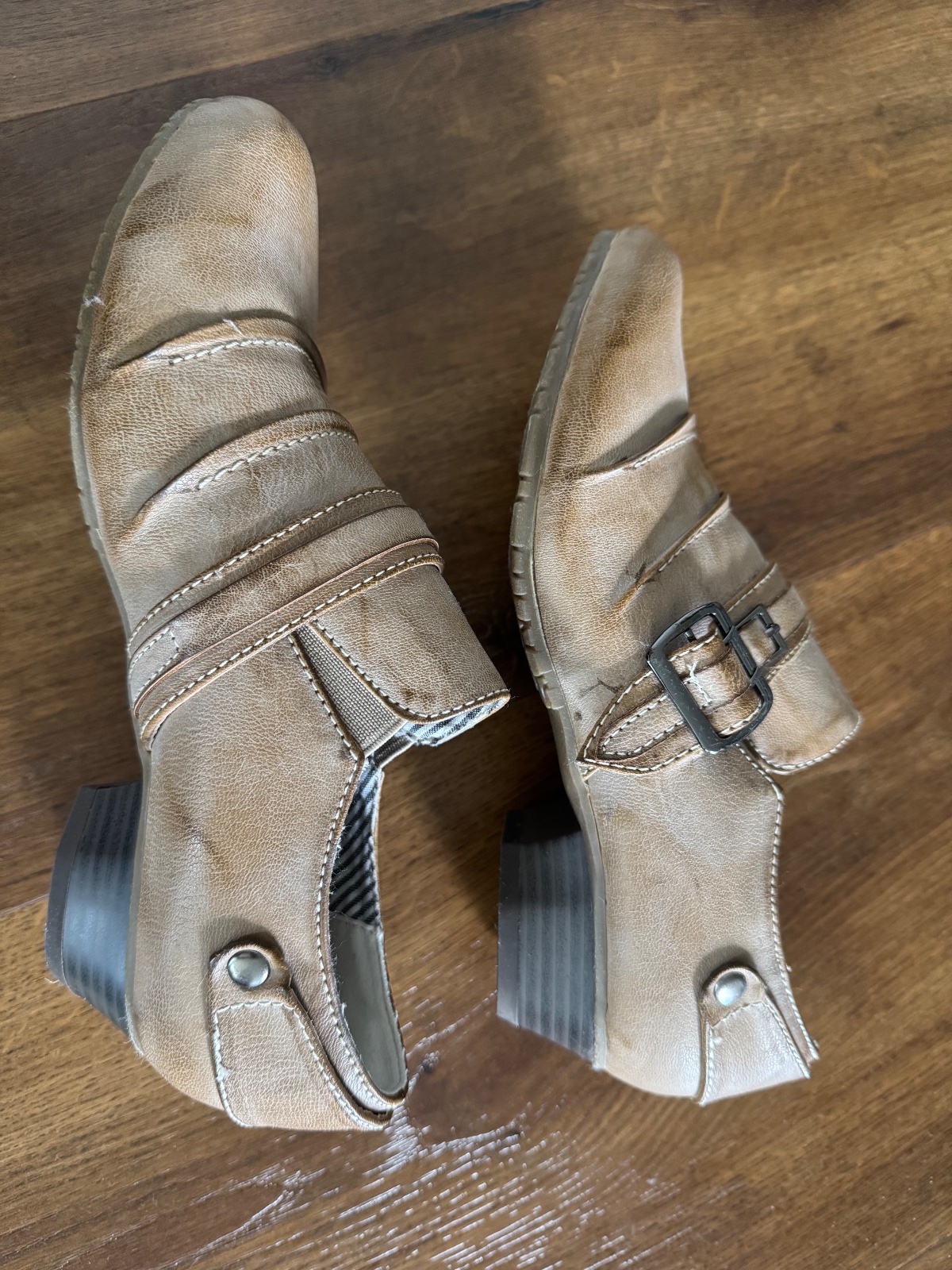 Poltopanky na opätku, pekné, elegantné. Farba svetlo hnedá, taká retro, tie flaky na fotkach robí foťák veľmi kontrastné, v skutočnosti sú jemné.