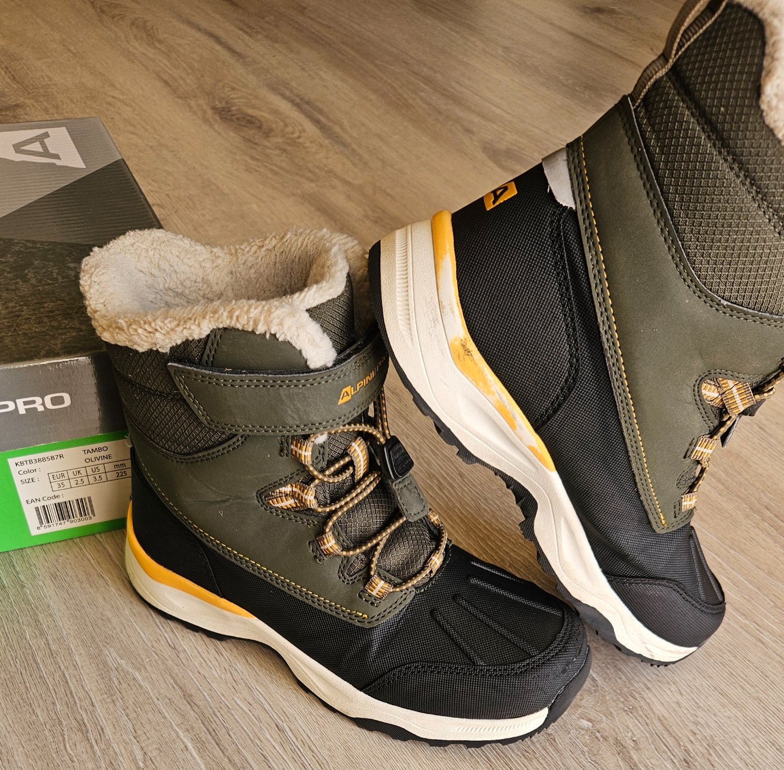 Predám nosené čižmy značky Alpine pro vo veľkosti 35 v peknom zachovalom stave,majú mierne známky nosenia-vid foto, kupované v novembri 2024 v sportissime za vyše 30€,s krabicou a dokladom o kúpe