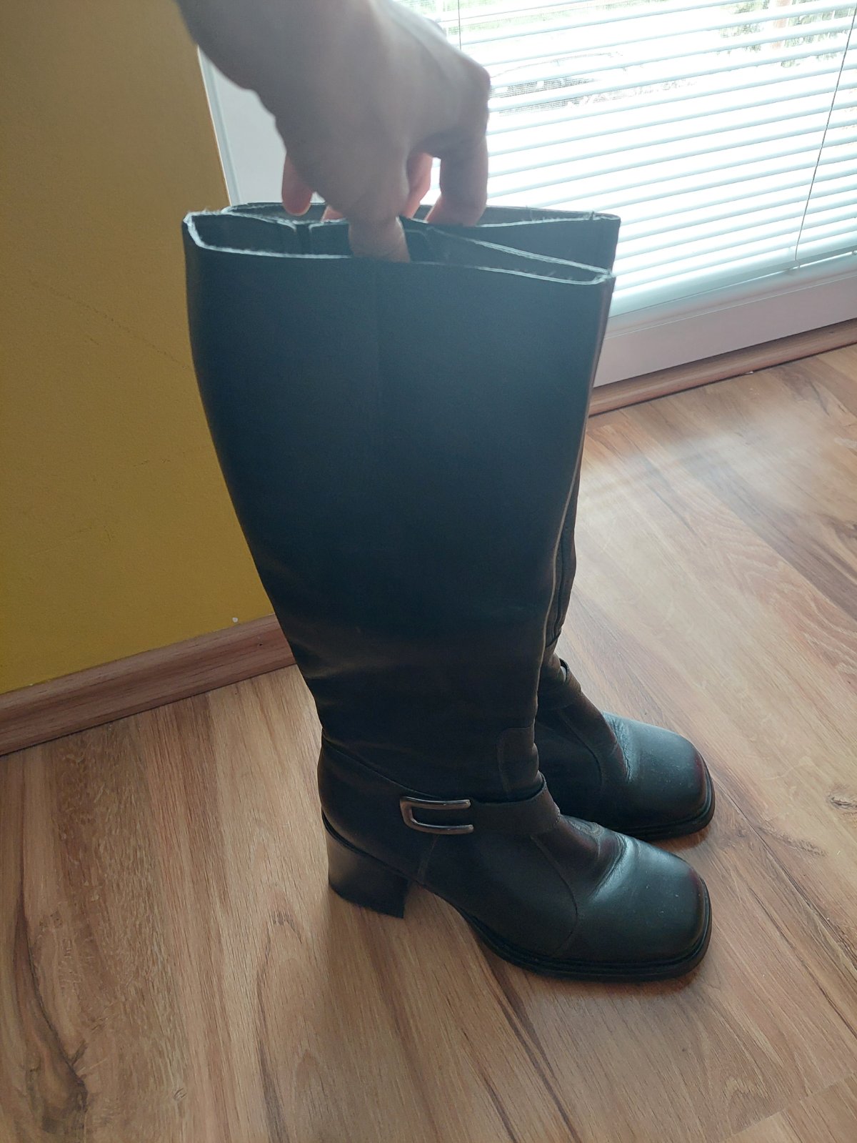 Velmi zachovale, pohodlne, kozene cizmy na podpatku.