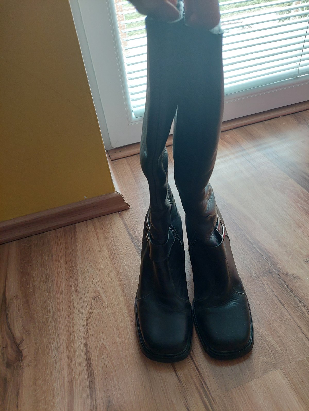 POnúkam krásne čierne čižmy na vysokom opätku. Opätok je vysoký 10 cm, farba krásna sýta čierna. Napriek vysokému opätku sú veľmi pohodlné. Sú takmer nenosené, obuté možno dvakrát do kostola.