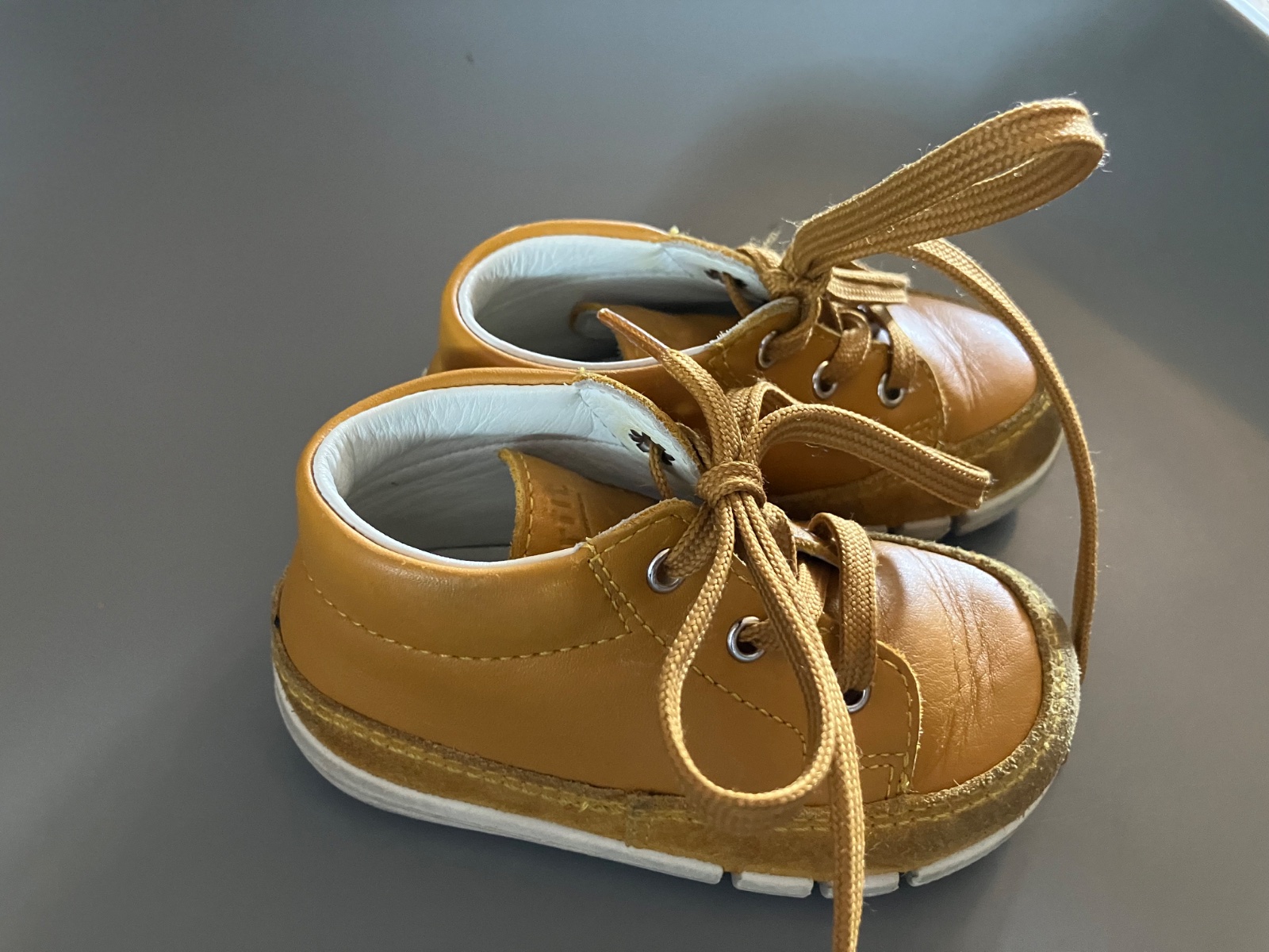 Topánočky na prvé kroky,super ohybné,nosené,ale malý ešte aj štvornožkoval,takže spičky sú špinavé,neskúšala som to čistiť,šírka M IV,na jednej stielke trošku popísané perom