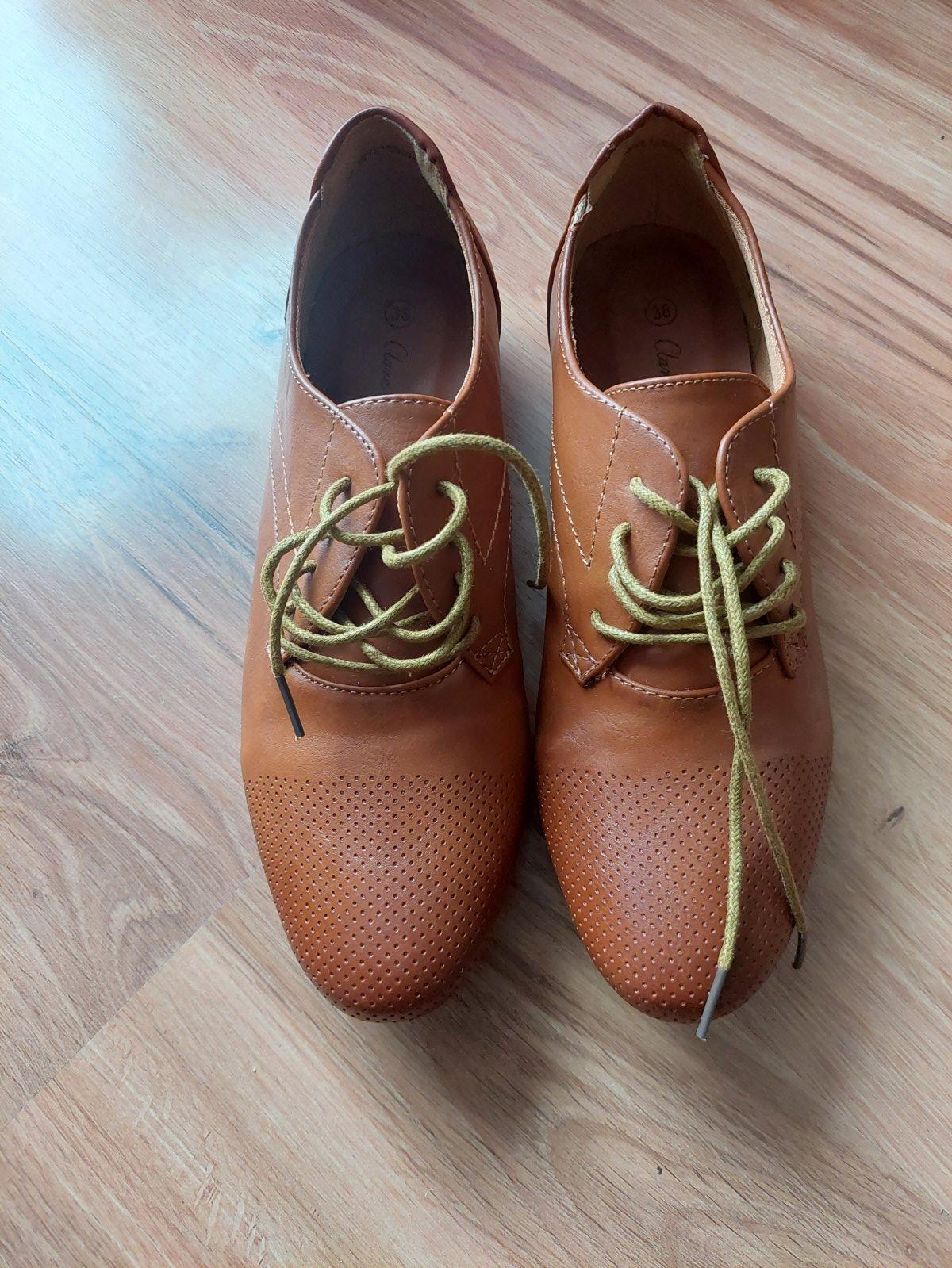 Nove mokasinky, hnede, nenosene. Sice neboli nosene, ale trosku sa supu pri clenku. Pocitovo je to skor velkost 37. Su uzucke.