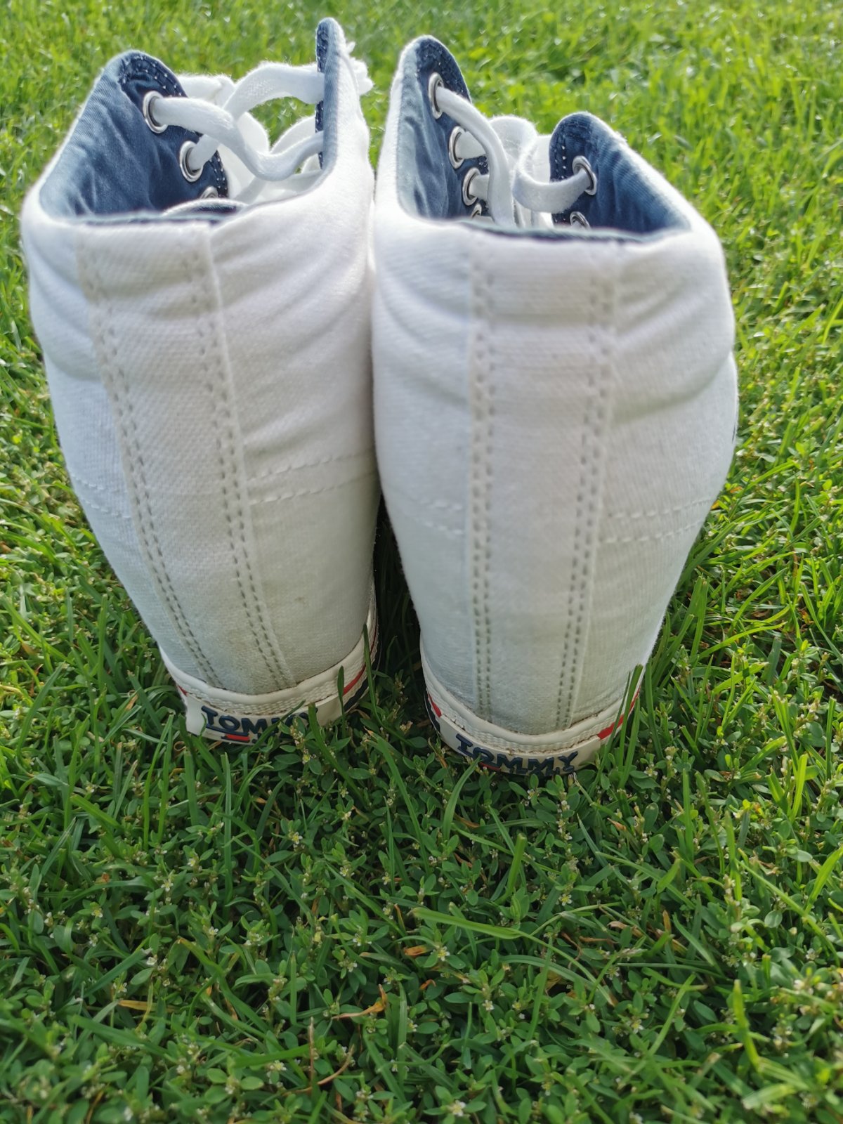 Biele plátené tenisky, nosené, na pate je guma trosku schodena, vid foto, ostatné super