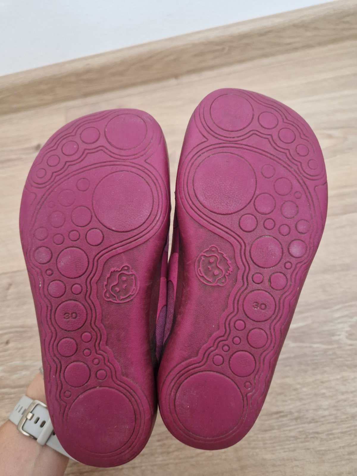 Krásne jemne trblietavé tenisky. Pre dievčatko, kupovali smev septembri do školy. Nosili sme krátko lebo prišla jeseň a dážď... :) Vôbec nie sú zodrate ani ošúchané. Vn.dl.:19.5 cm PC : 28Eur