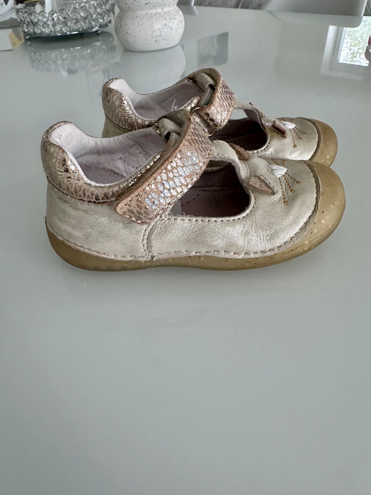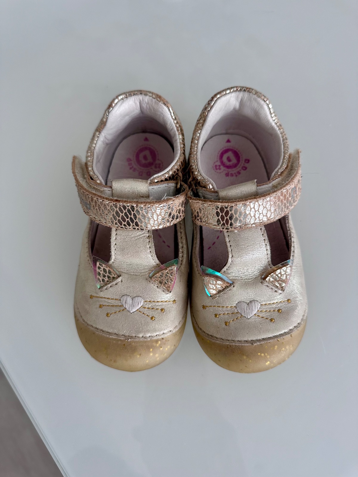 Nosene, ale poslúžia ešte. Jedine poškodenie je zošúchana farba na ľavej topánke, ale nie sú nijako vysmatlane, tvar držia stále pekný, aj vložky.