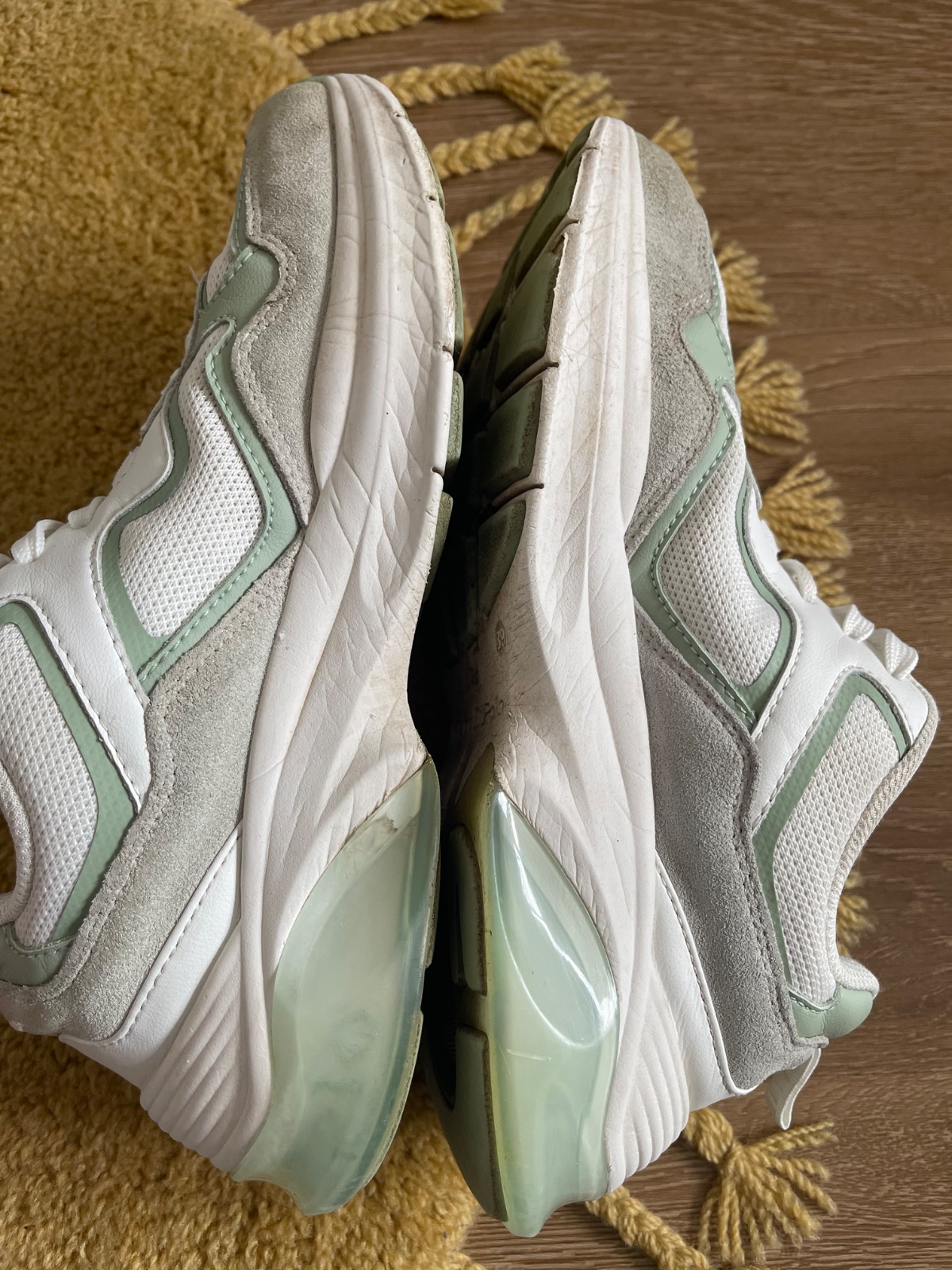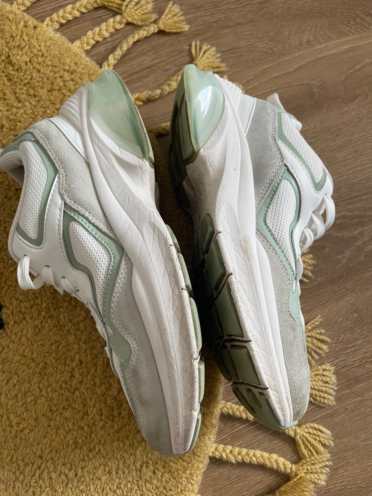 Tenisky sú po funkčnej stránke v top stave. Majú iba estetické chyby - semišová časť zašednutejšia. Biele časti sú stale pekne biele.