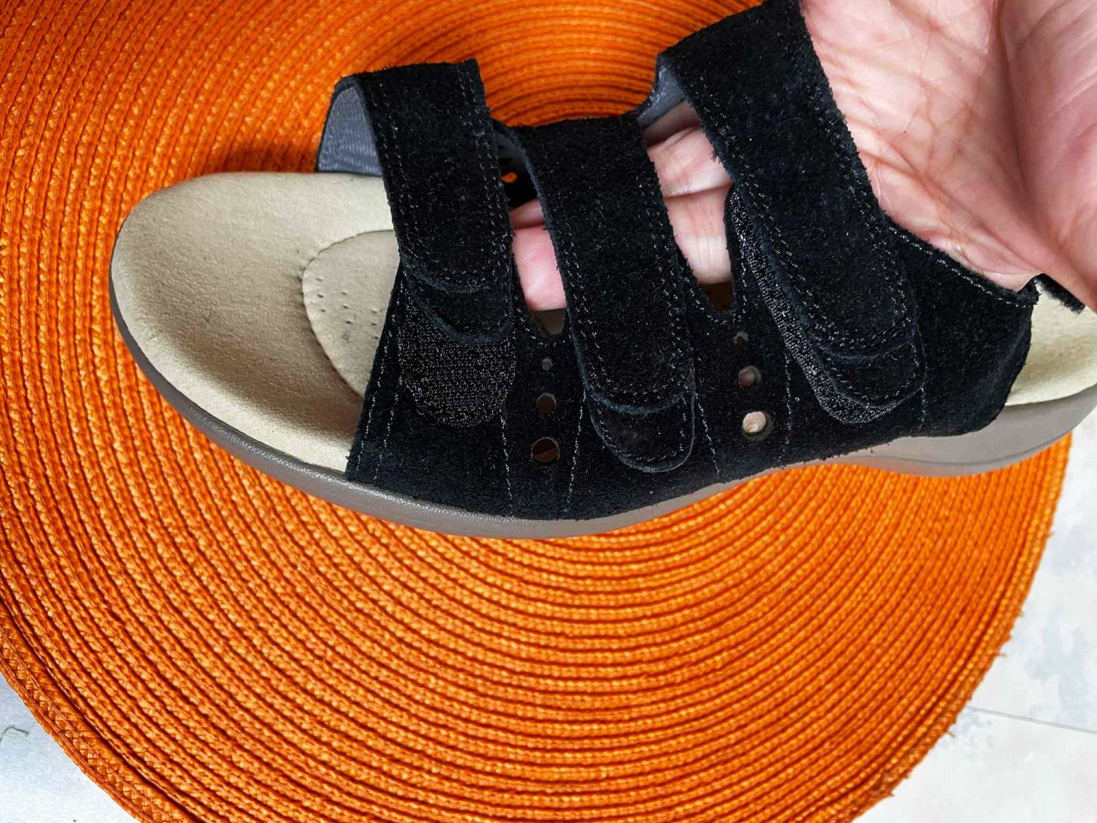 1 x obuté komfortné a značkové sandálky- značka Clarks, vysokokvalitné,veľmi ľahúčke a mäkké,ortopedická stielka,vn. dlžka = 25 - 25,3 cm,komfortné obúvanie,vhodné aj ako zdravotná obuv alebo ako domáca obuv,krásne sedia na nohe ( vpredu utiahnutie podľa potreby nartu na suché zipsy,vzadu päta = upínanie na suché zipsy),vhodné aj na širšiu nohu...veľkosť vyfotená,jemne vyvýšený podpätok