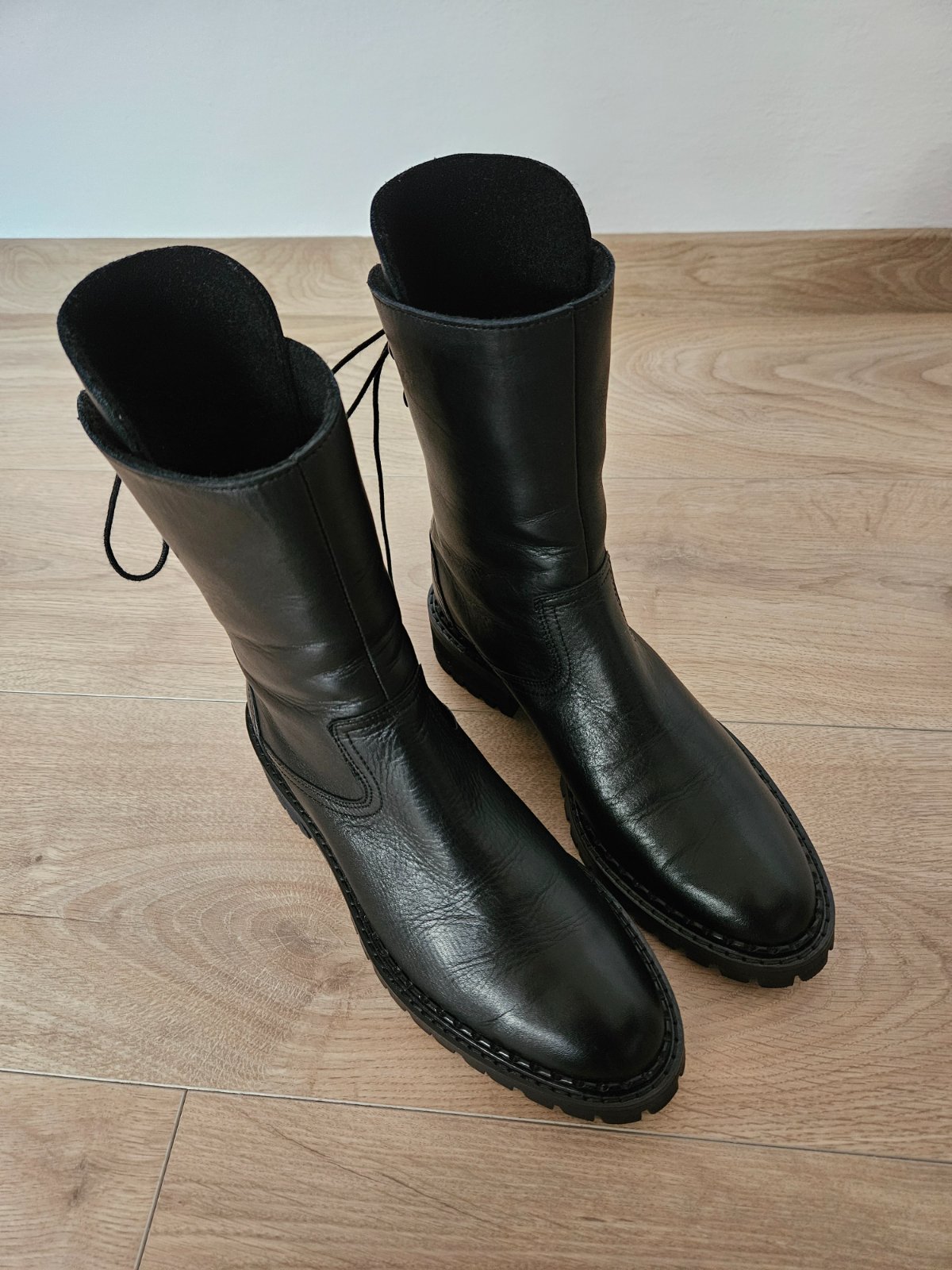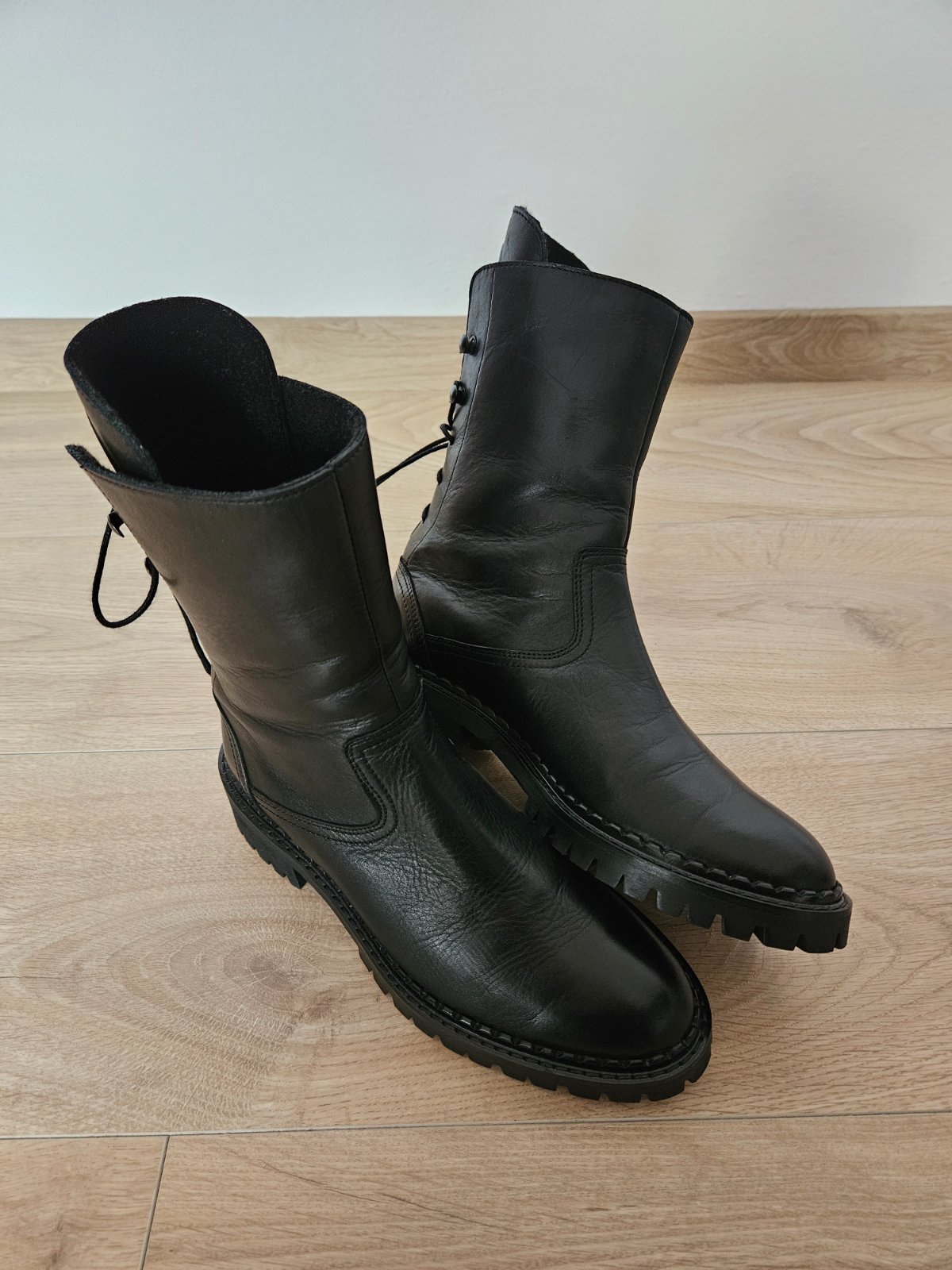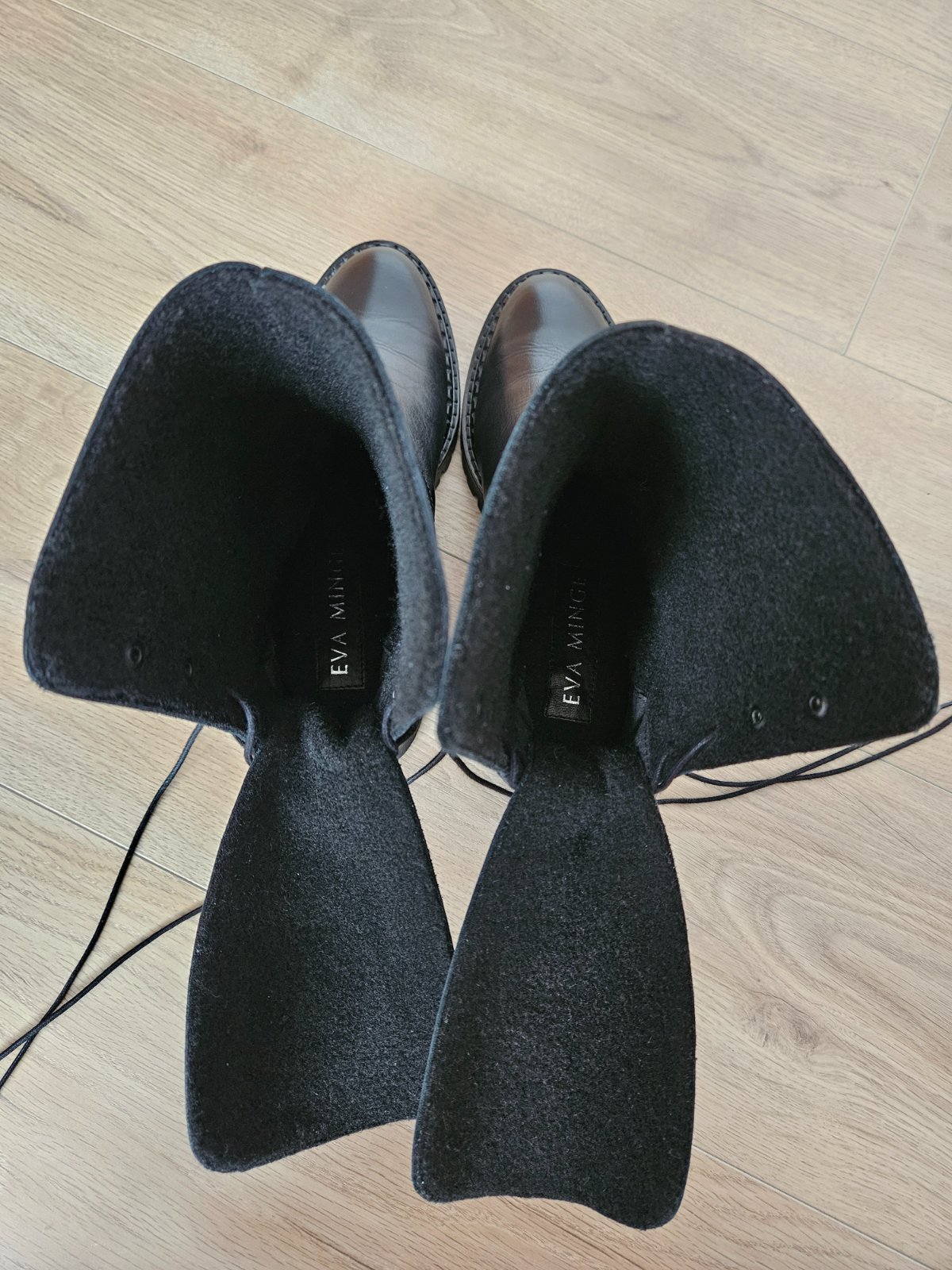 Úplne nové, nikdy nenosené, ešte voňavé kožené čižmy značky Eva Minge.