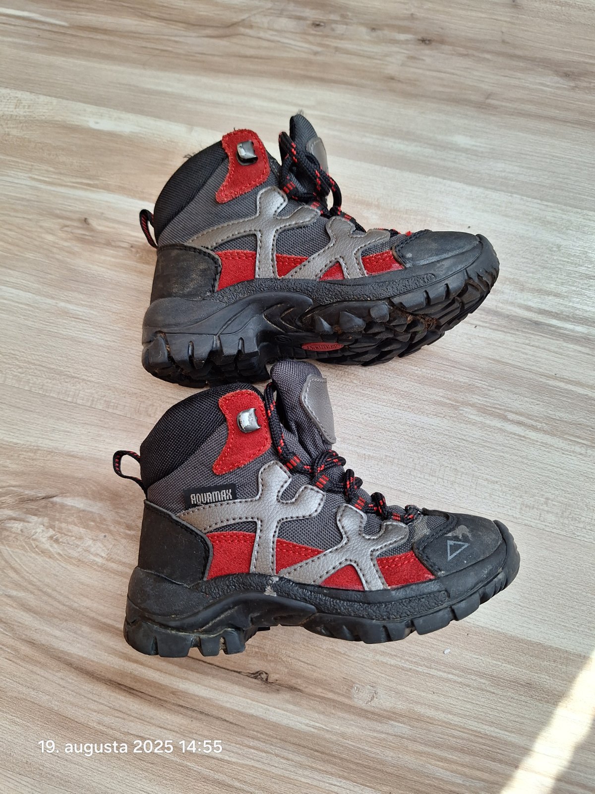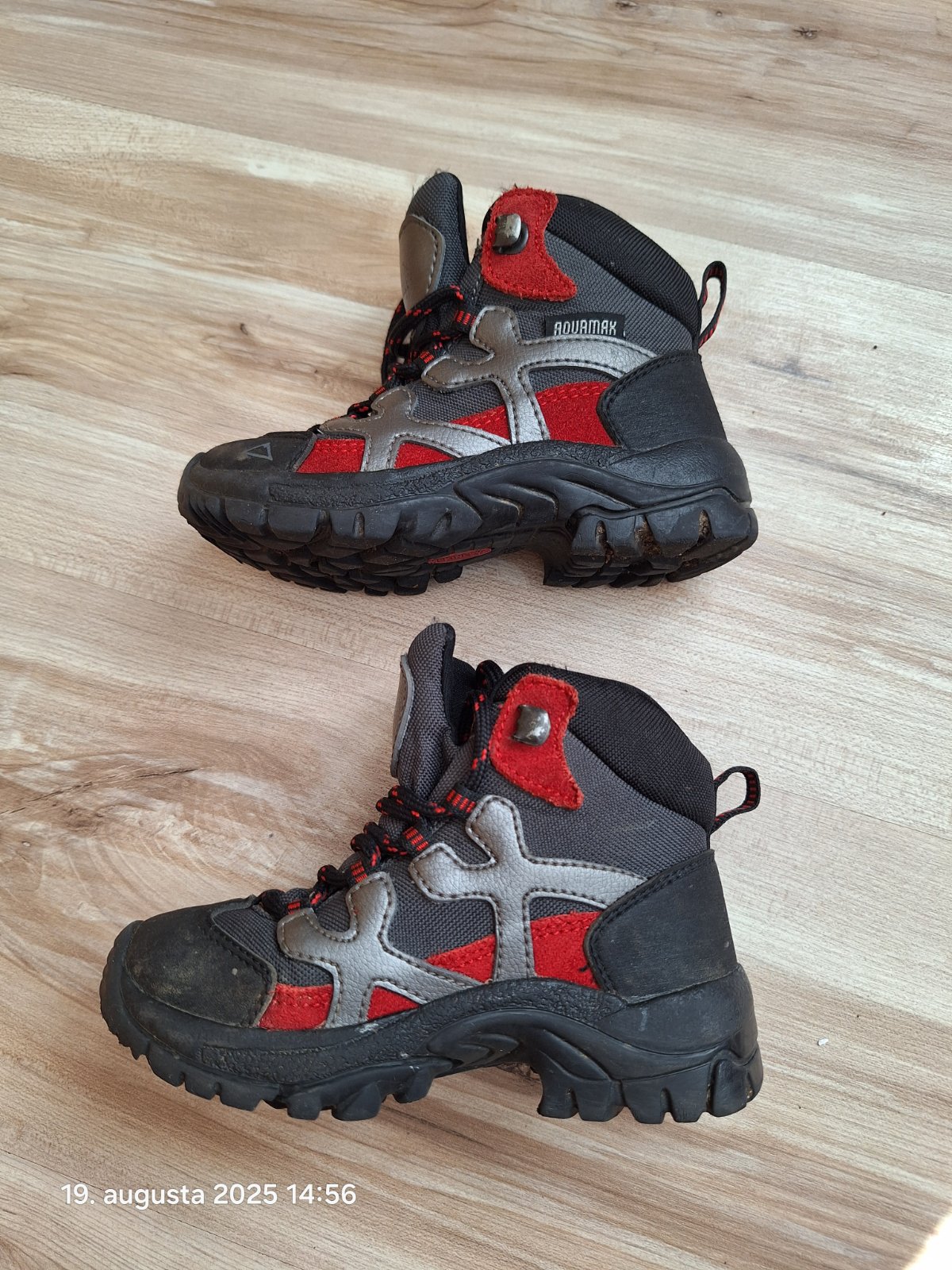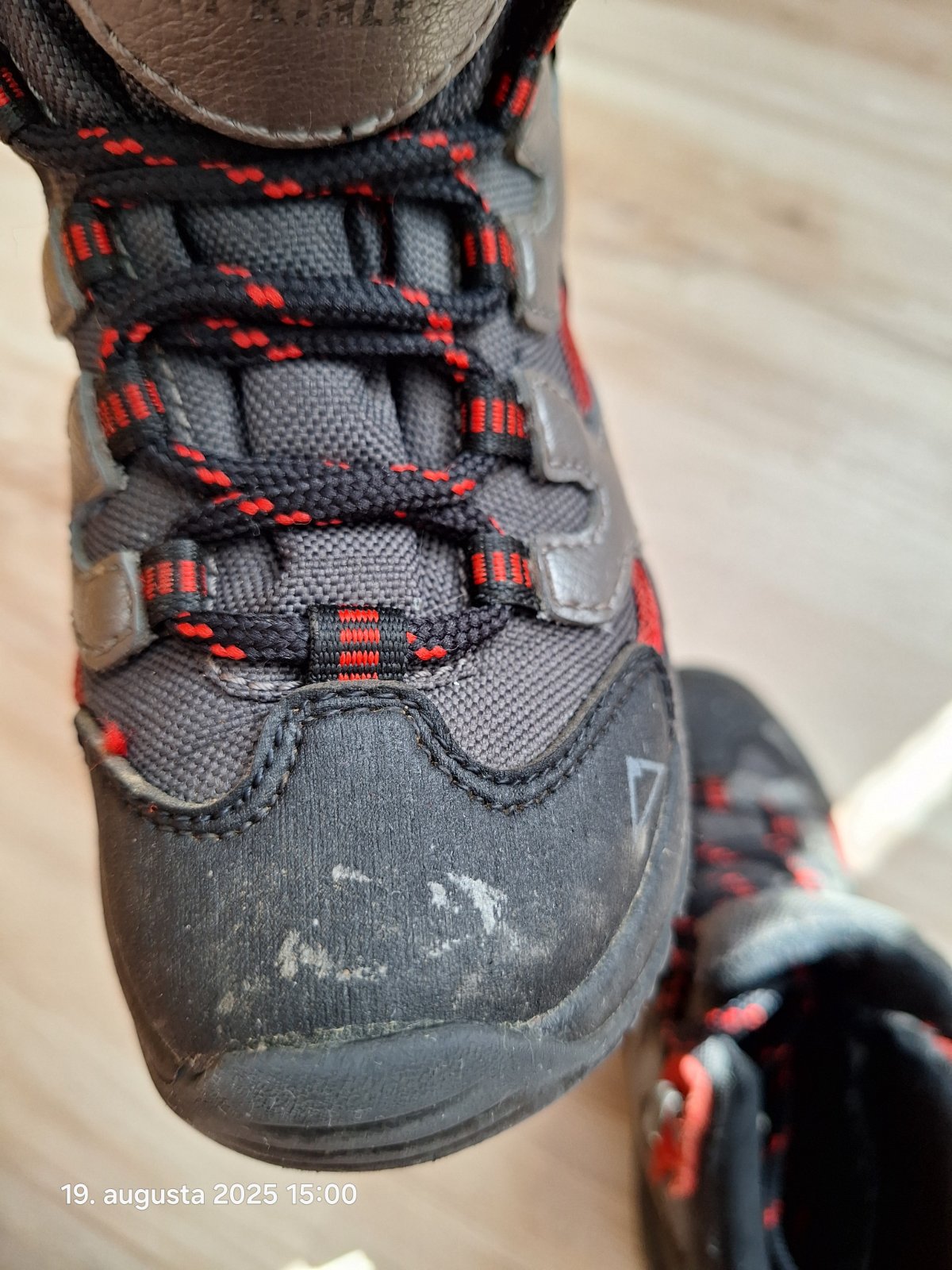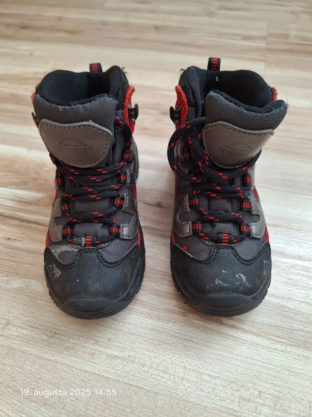 Predám turistické topánky značky McKinley vo veľkosti 27. Topánky boli nosené na turistiku a prechádzky v lese, čomu svedčia estetické vady viditeľné na foto. Po impregnácii nikdy nezatiekli. VD 160mm