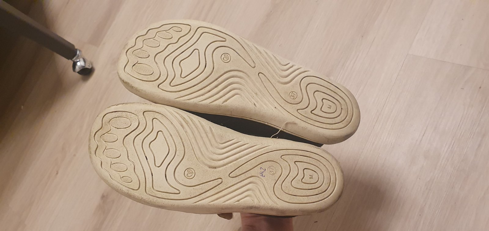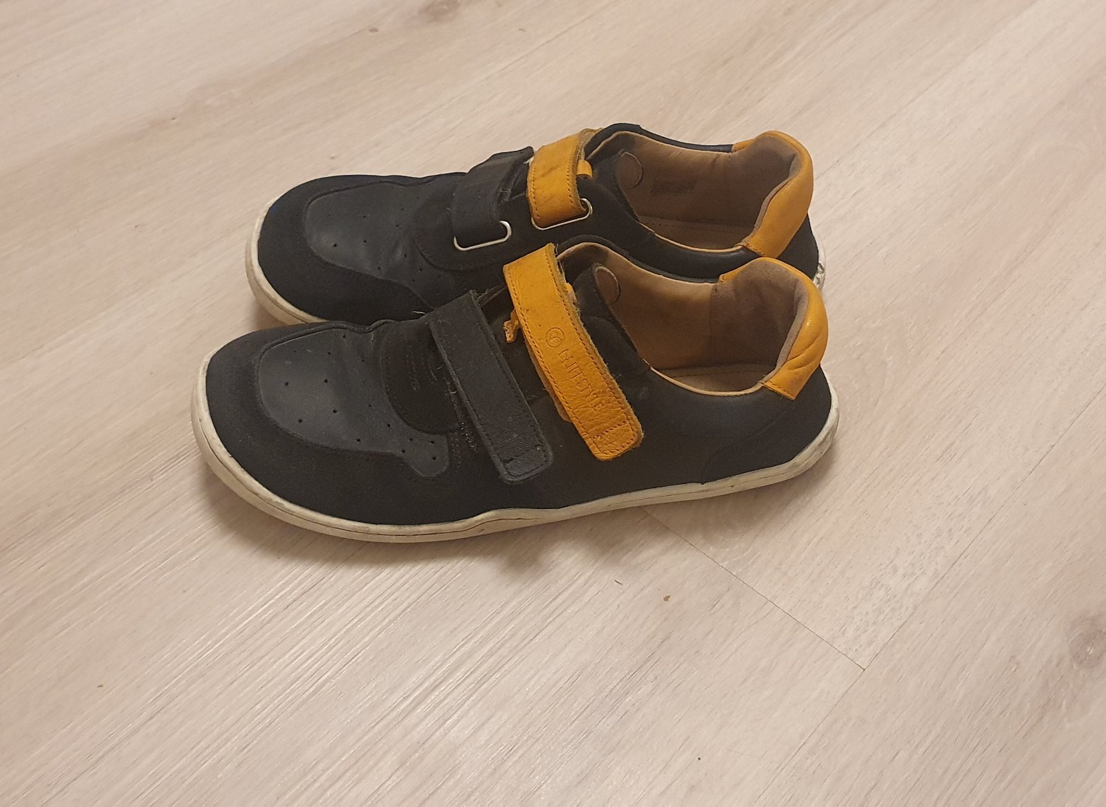 Úžasné mäkké kvalitné tenisky, veľmi pohodlné, keďže su naše obľúbené, viac nosené...ale stále funkčné, syn má zlozvyk vyzuvat sa tak, ze nohou zatlaci vzadu nad podrazku, je tam poškodenie gumy, ale funkčne sú v poriadku..detailne som nafotila, zohľadňujem v cene, iste ešte posluzia, celokožené, VD 24,7