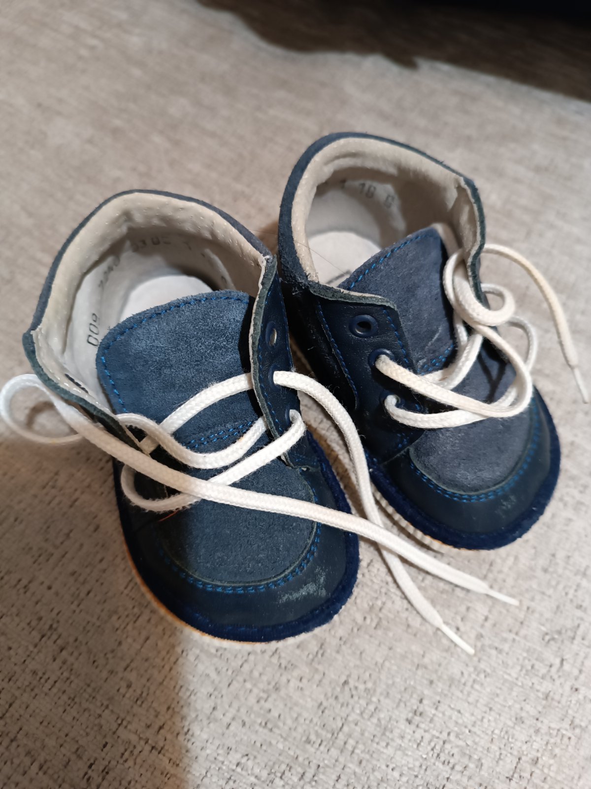 Vyborne celokozene topanocky na prve kroky. Ohybna podrazka. Nosene asi 1 mesiac. Su trochu suchnute v predu, ale len minimalne. Nove stali 28€.