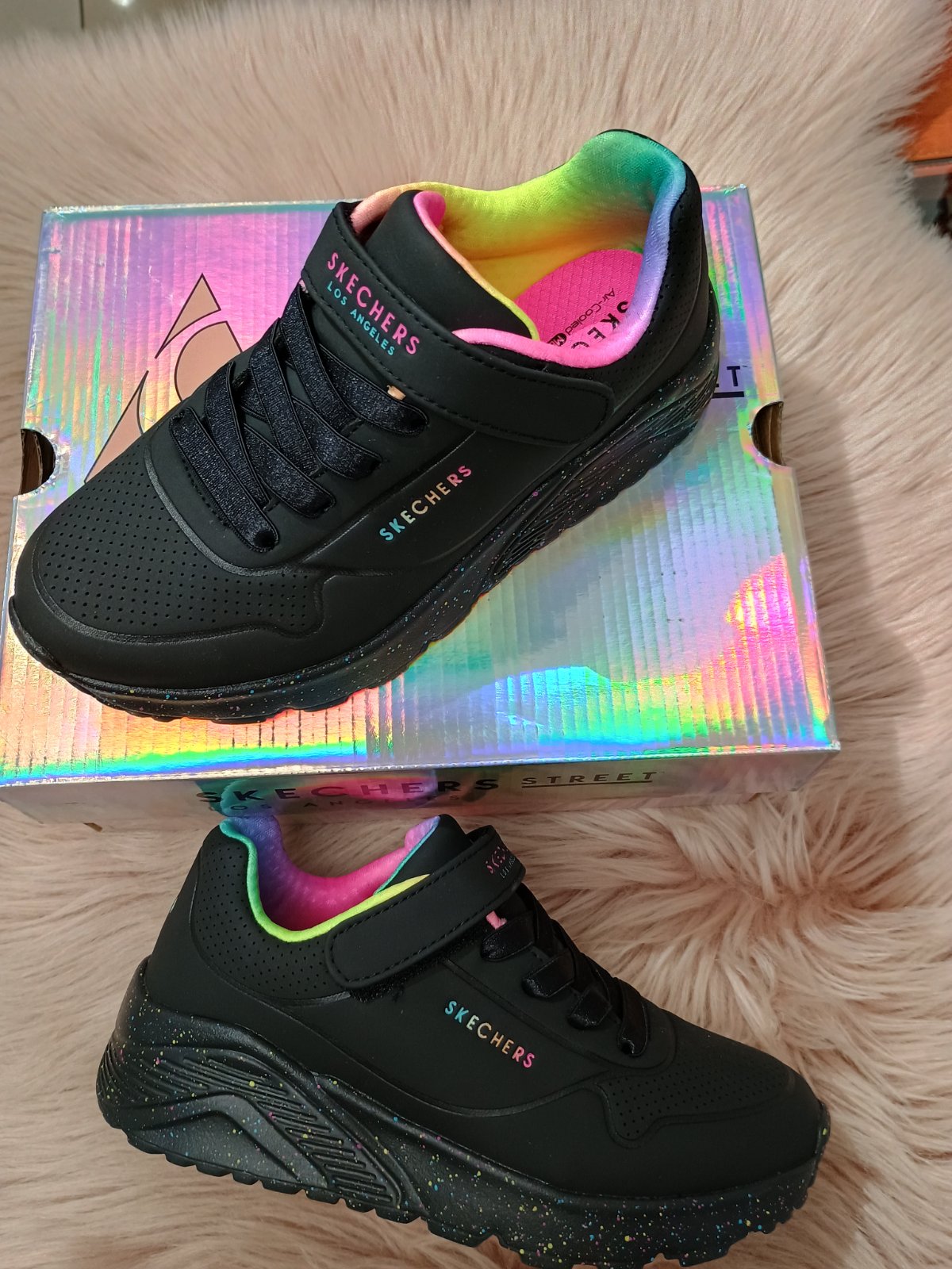 Tenisky s wow efektom sú nepostrádateľným modelom efektivity a štýlu! Klasický štýl sa stretáva s odpruženým komfortom v Skechers Street™ Uno Lite - Vendox. Táto módna nazúvacia teniska má syntetický durabuck zvršok so stielkou Skechers Air-Cooled Memory Foam® a platformovou klinovou medzipodrážkou. Model je odolný proti opotrebeniu, doplnený ľahkou a odolnou podrážkou. Tieto detské tenisky vrelo odporúčame ako perfektnú obuv do školy