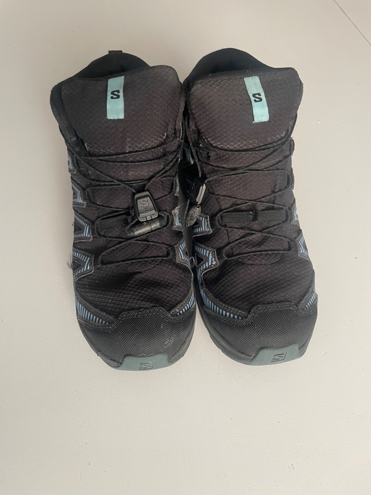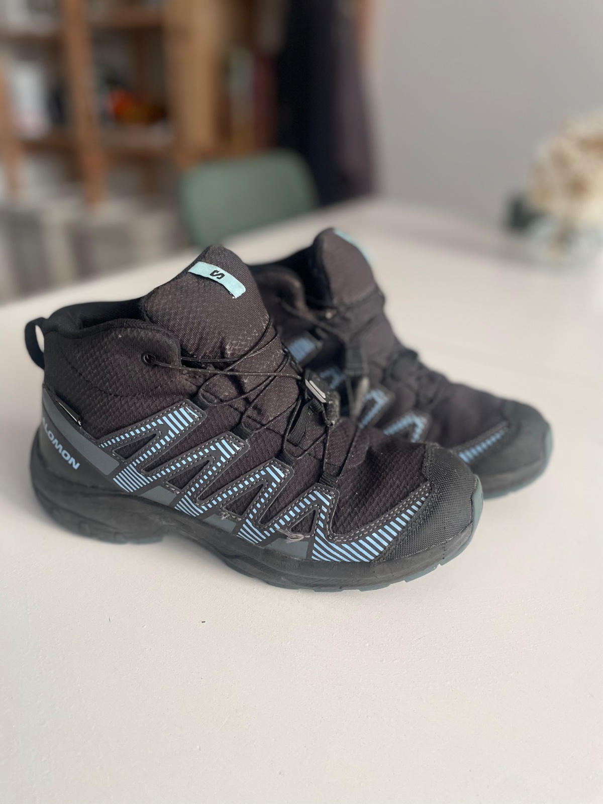 Perfektné nepremokavé (s membránou Goretex) členkové tenisky. Praktické zaväzovanie. Vo veľmi dobrom stave, bez nejakých poškodení, len na špičke pravej nohy menšie šuchnutie- viď foto.. Super na turistiku aj bežné nosenie v chladnom a vlhkom počasí. VD 23cm.