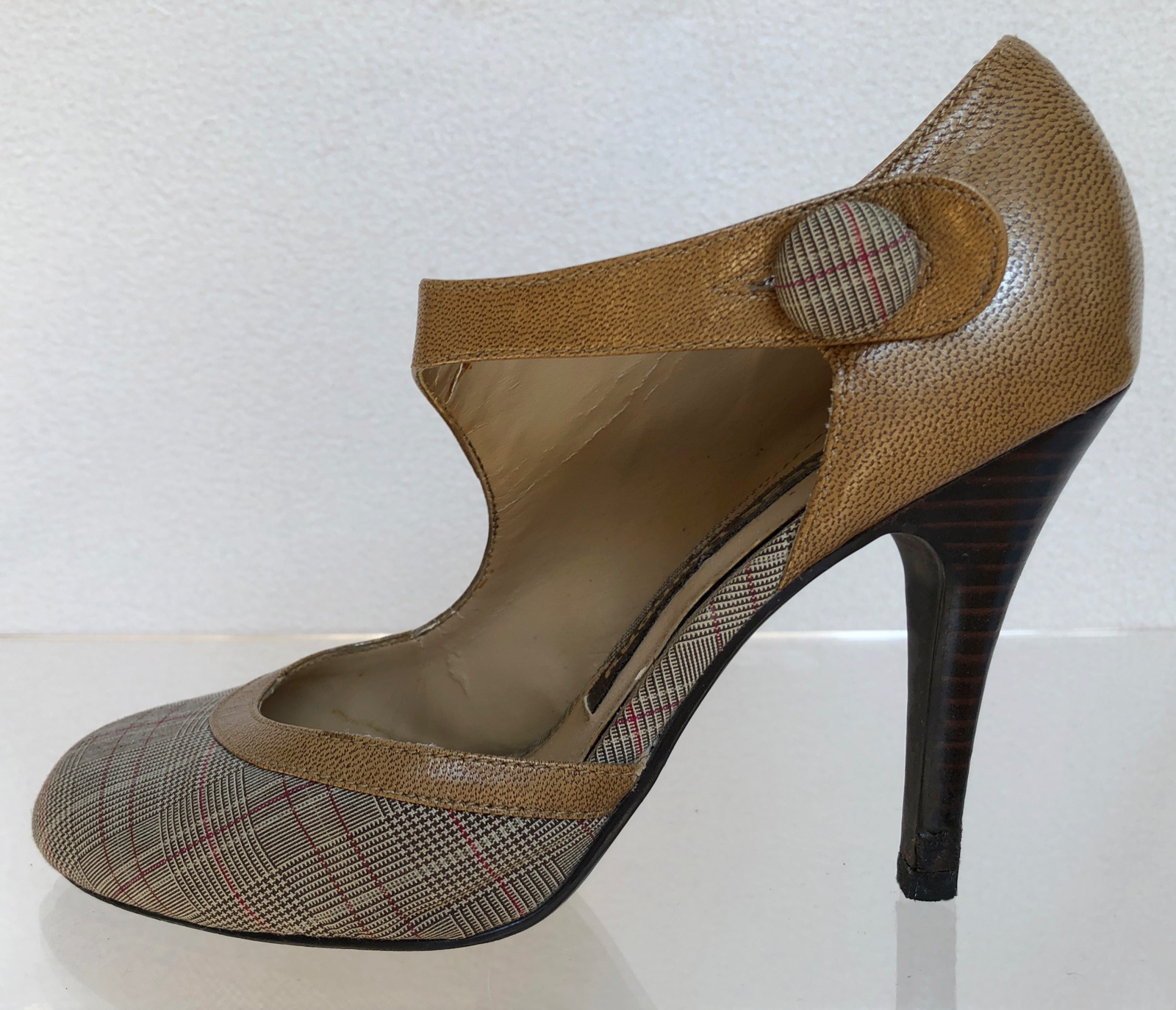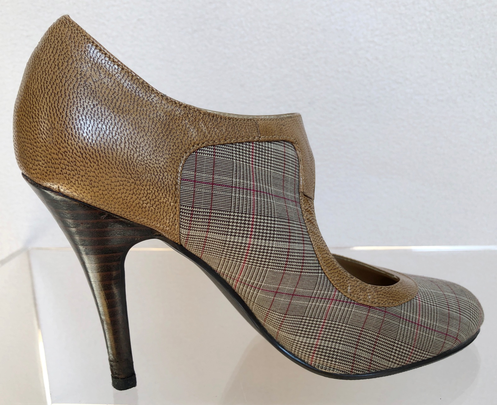 Štýlové topánky vo veľmi dobrom stave, s minimálnym použitím. Výška opätku 10 cm. Uvedená veľkosť topánky 35,5, sedia aj na veľkosť 36. VD 23,5 cm