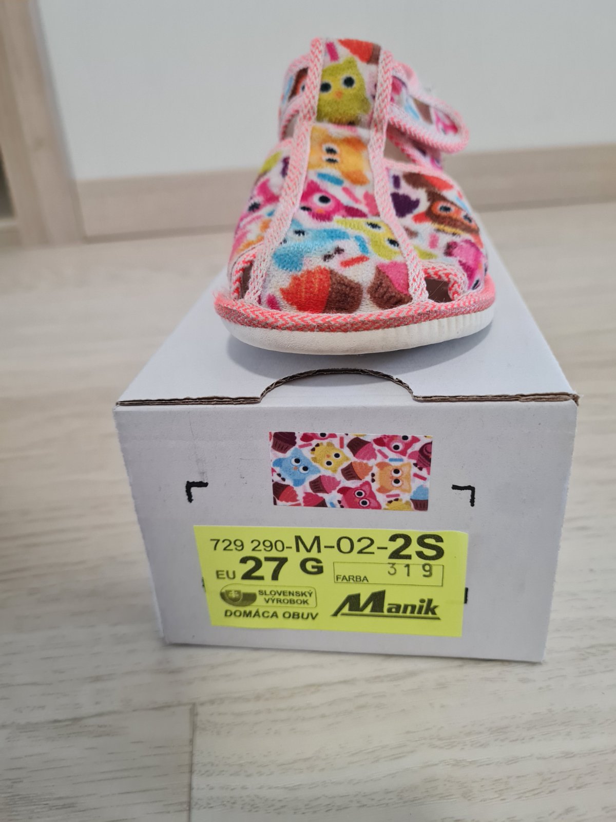 Papučky značky Manik vo veľkosti 27, jedny nosené v školke a druhé na doma.V dobrom nosenom stave. Cena 6€ za kus.
