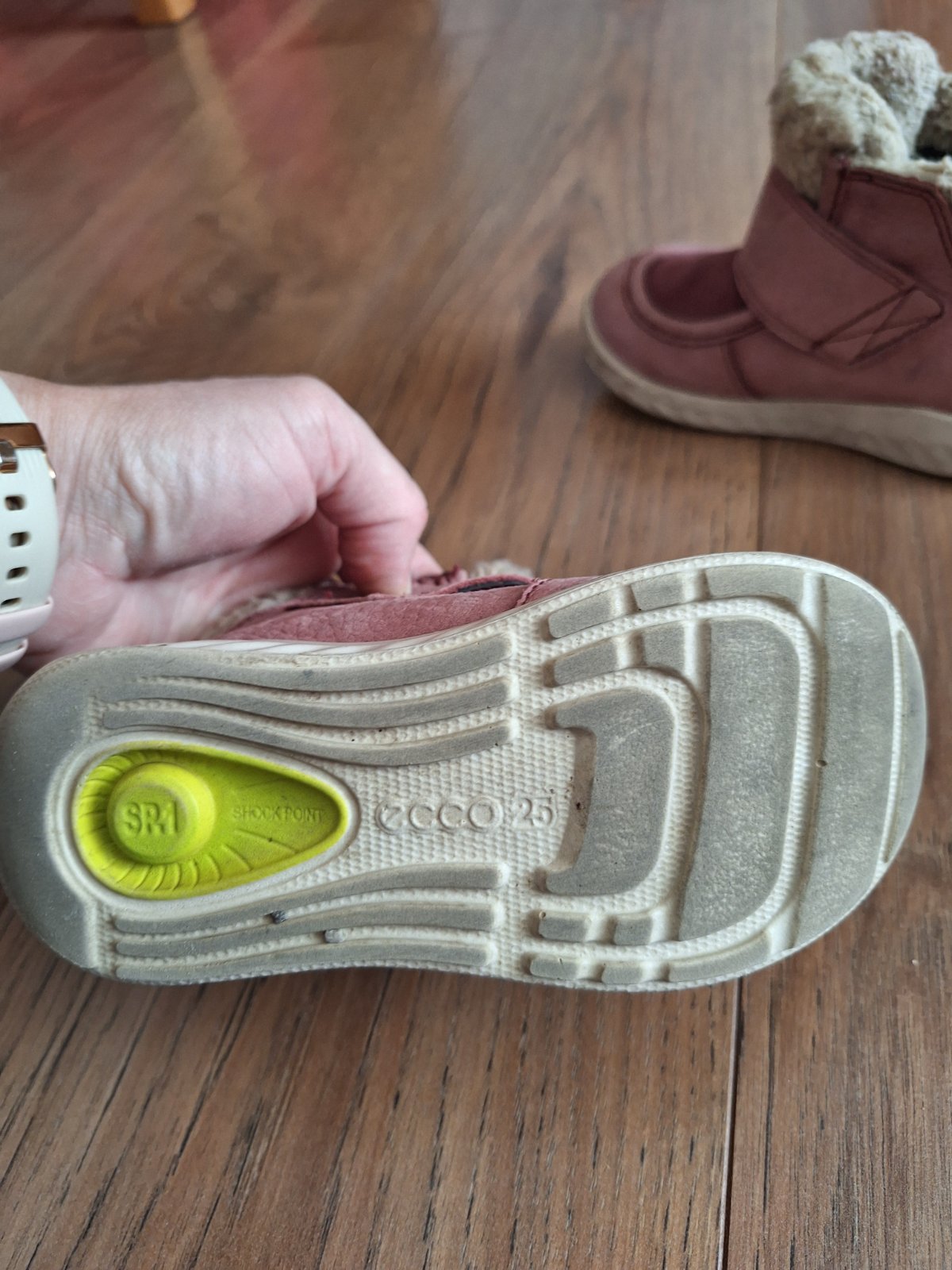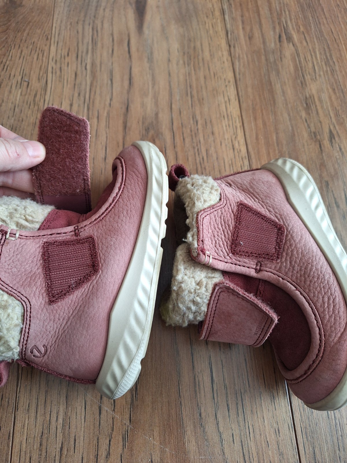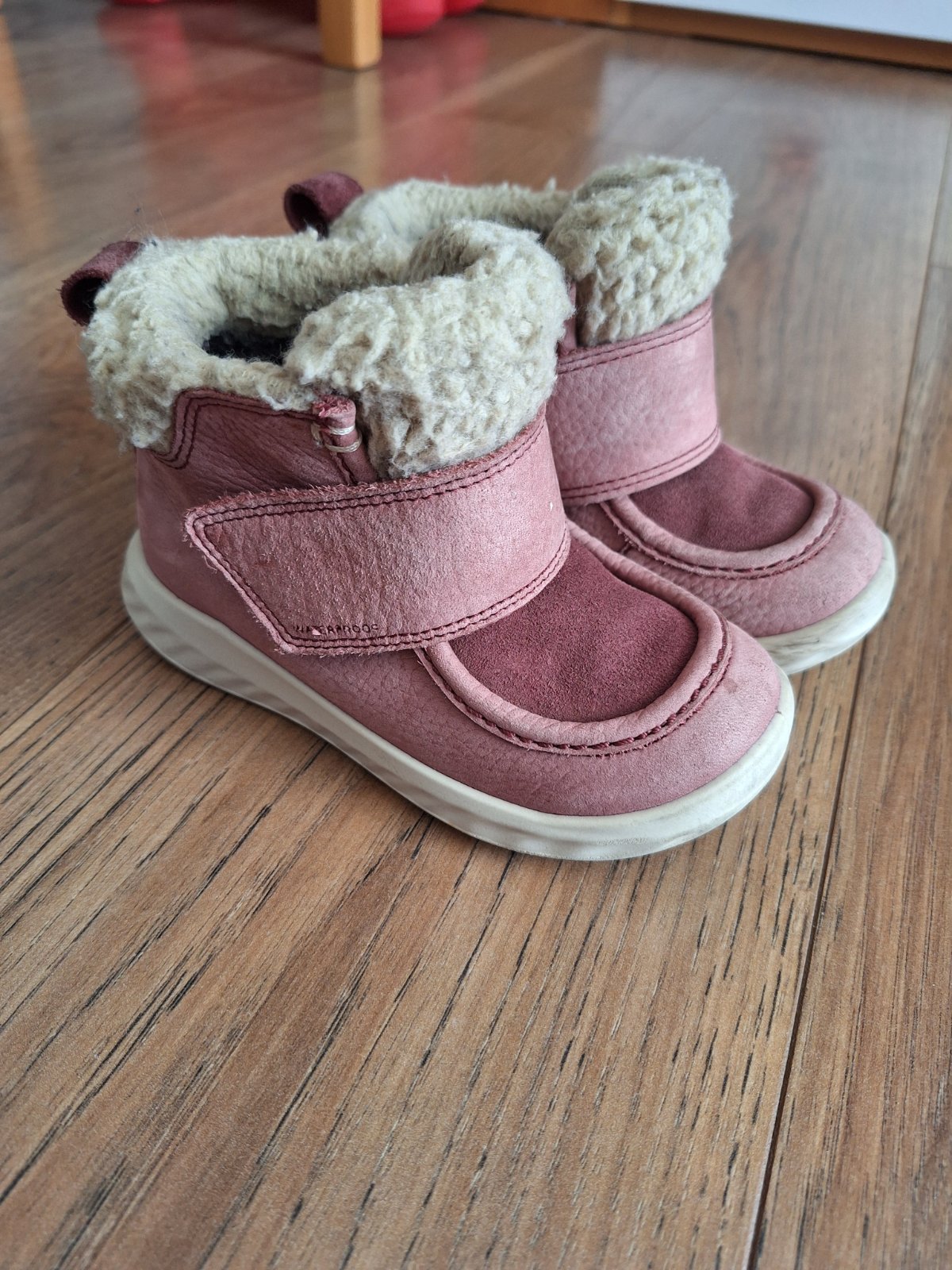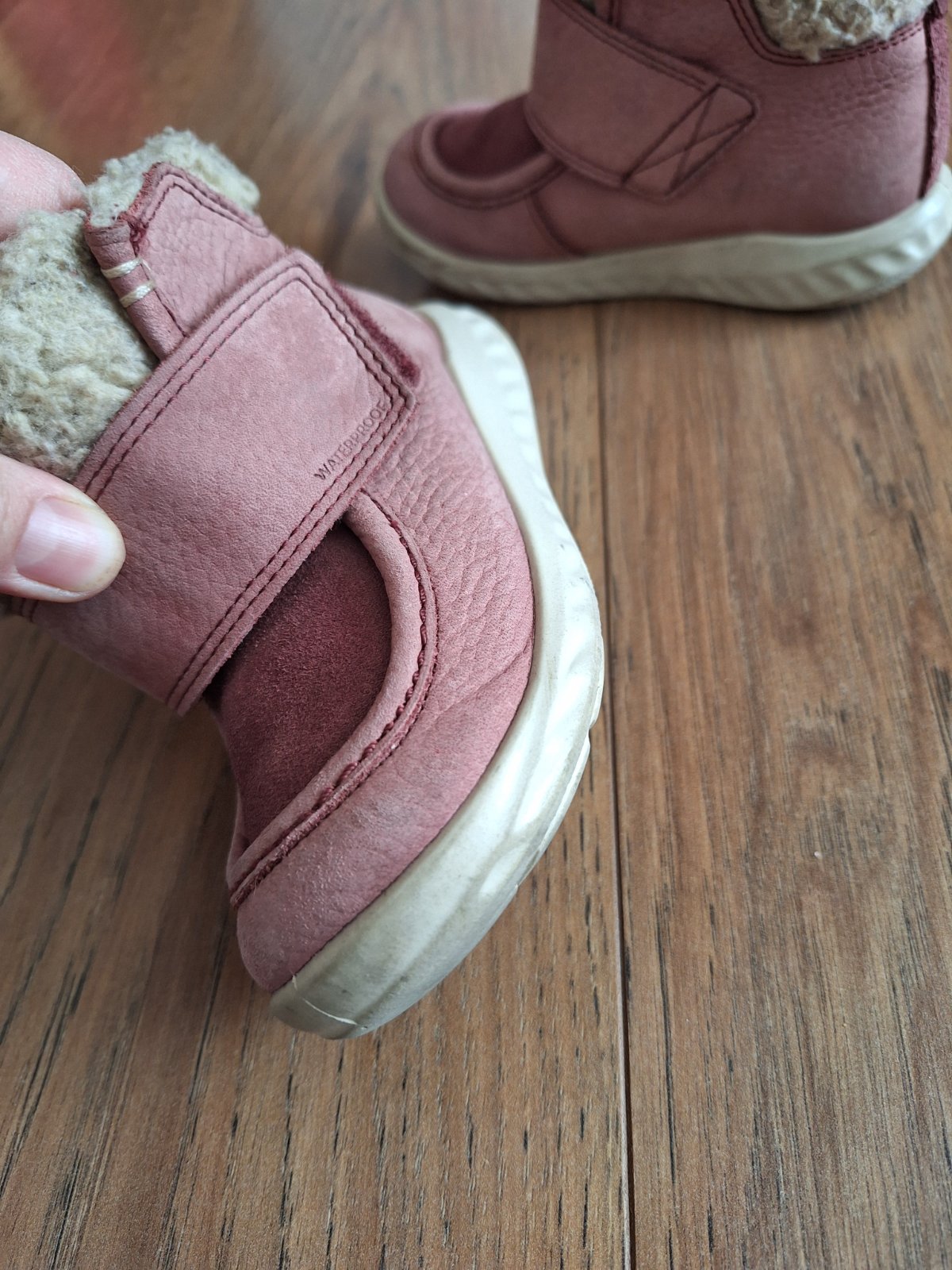 Krasne zimne topanocky,farba skor staroruzova,podrazka jemne osuchana,inak su bez poskodenia. Nosene jednu sezonu,kupovane nove. Zapinanie na suchy zips,ten je bez poskodenia,zapinanie velmi dobre drzi. Su nepremokave. Vnutorna dlzka cca 15,5 cm,vid.foto.