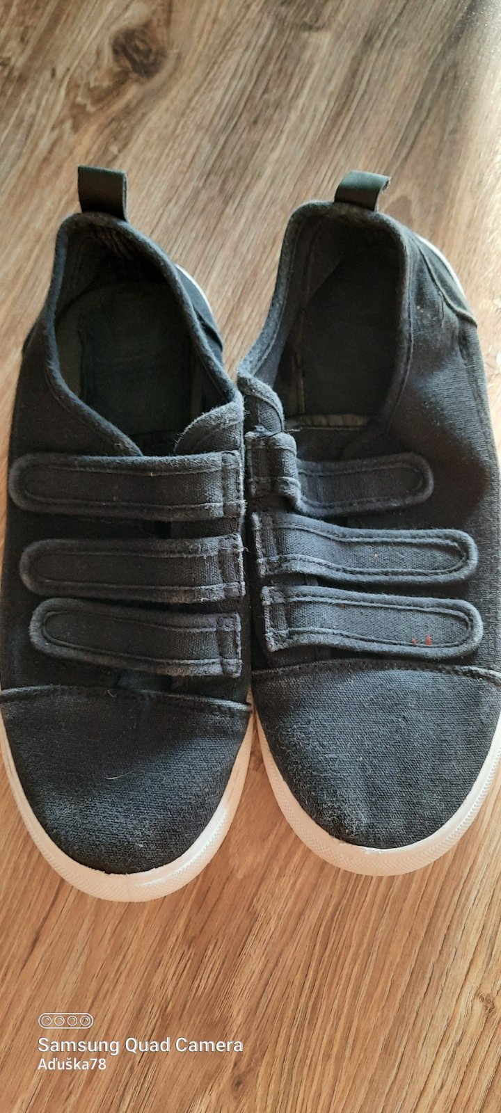 Predám chlapčenské plátenky čiernej farby s gumenou podrážkou, veľkosť 38. Vnútorná dĺžka 23 cm. Obúvajú sa na suchý zips. Plátenky sú bez akéhokoľvek poškodenia. Možný osobný odber v BA a blízkom okolí, prípadne zasielam poštou podľa vlastného výberu. Poštovné následne pripočítavam k cene.